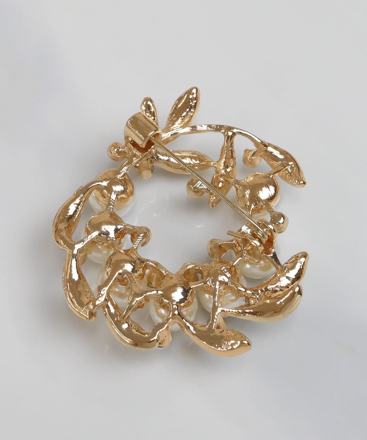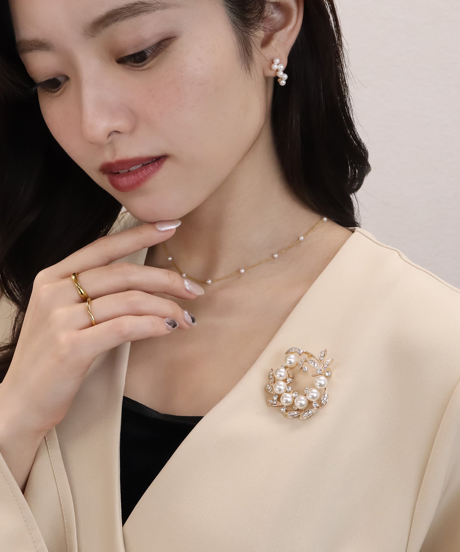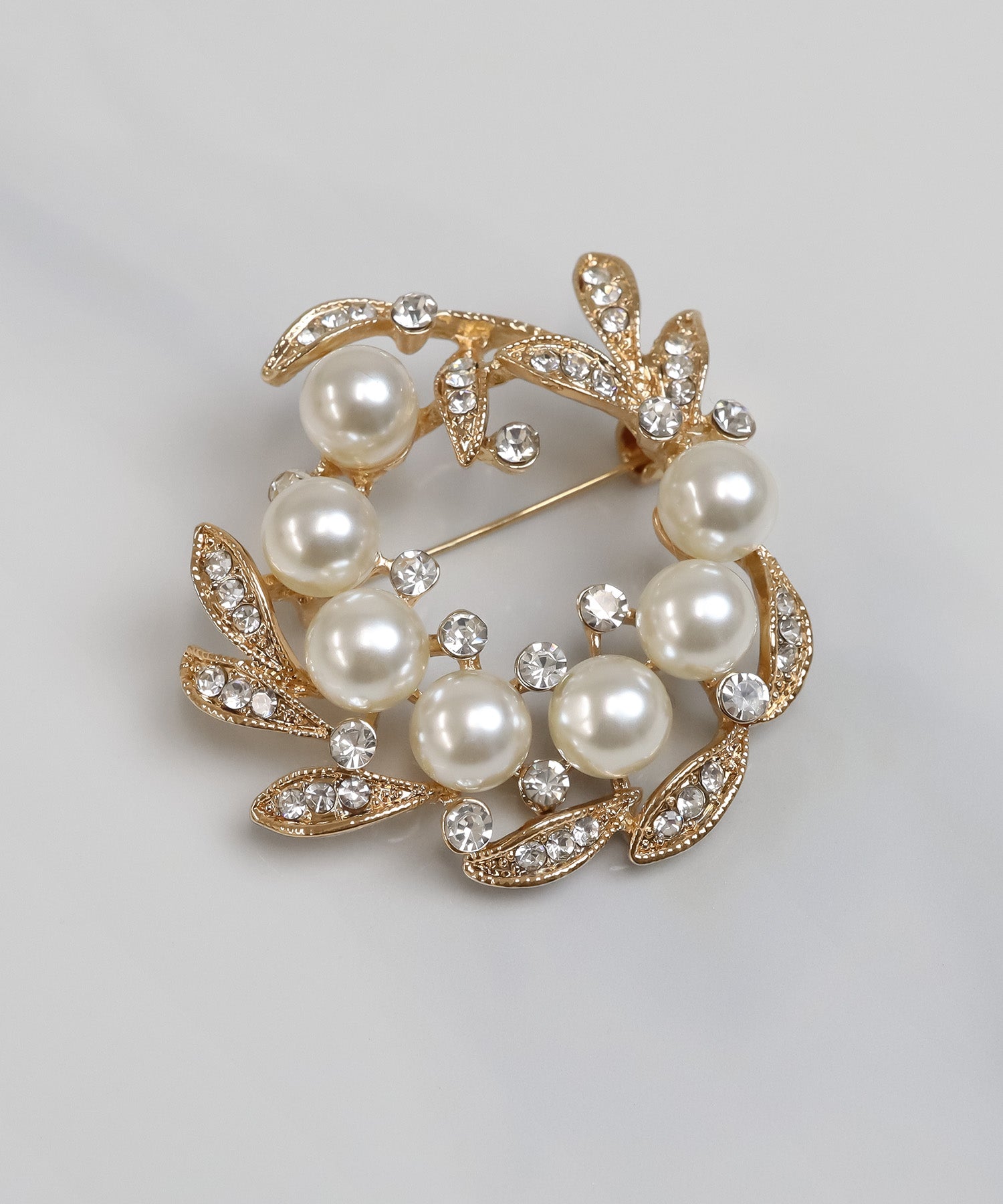 リーフが連なったサークルモチーフにパールとビジューが散りばめられているエレガントなデザインです。