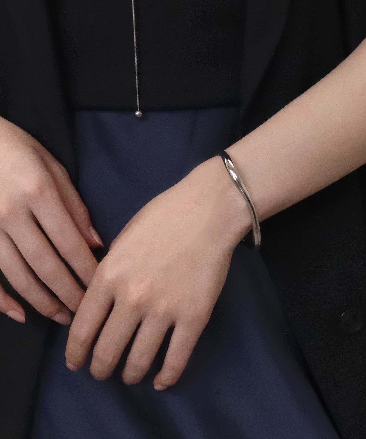 シンプルなデザインで、どんなスタイルにも相性抜群なニュアンスバングル。