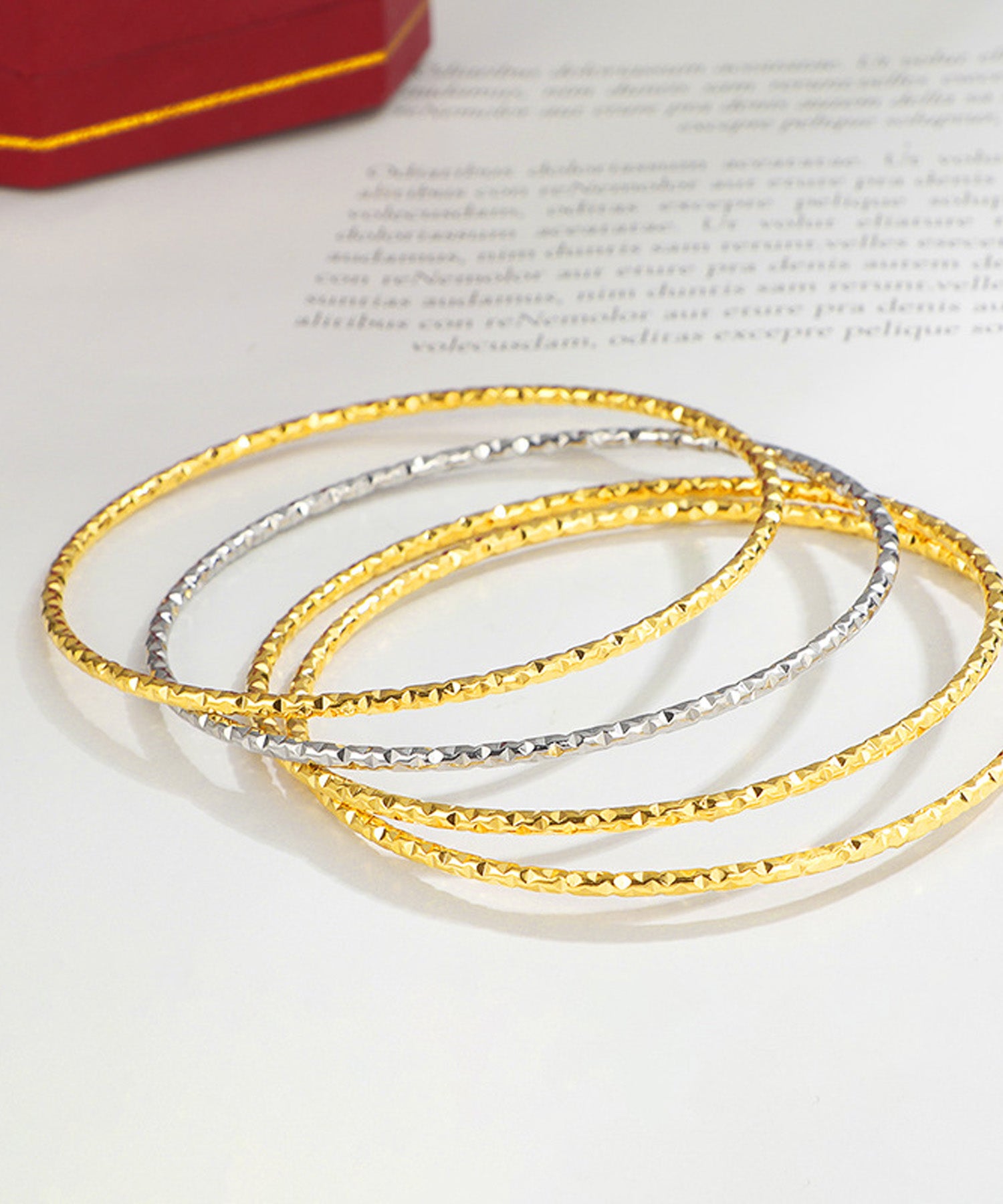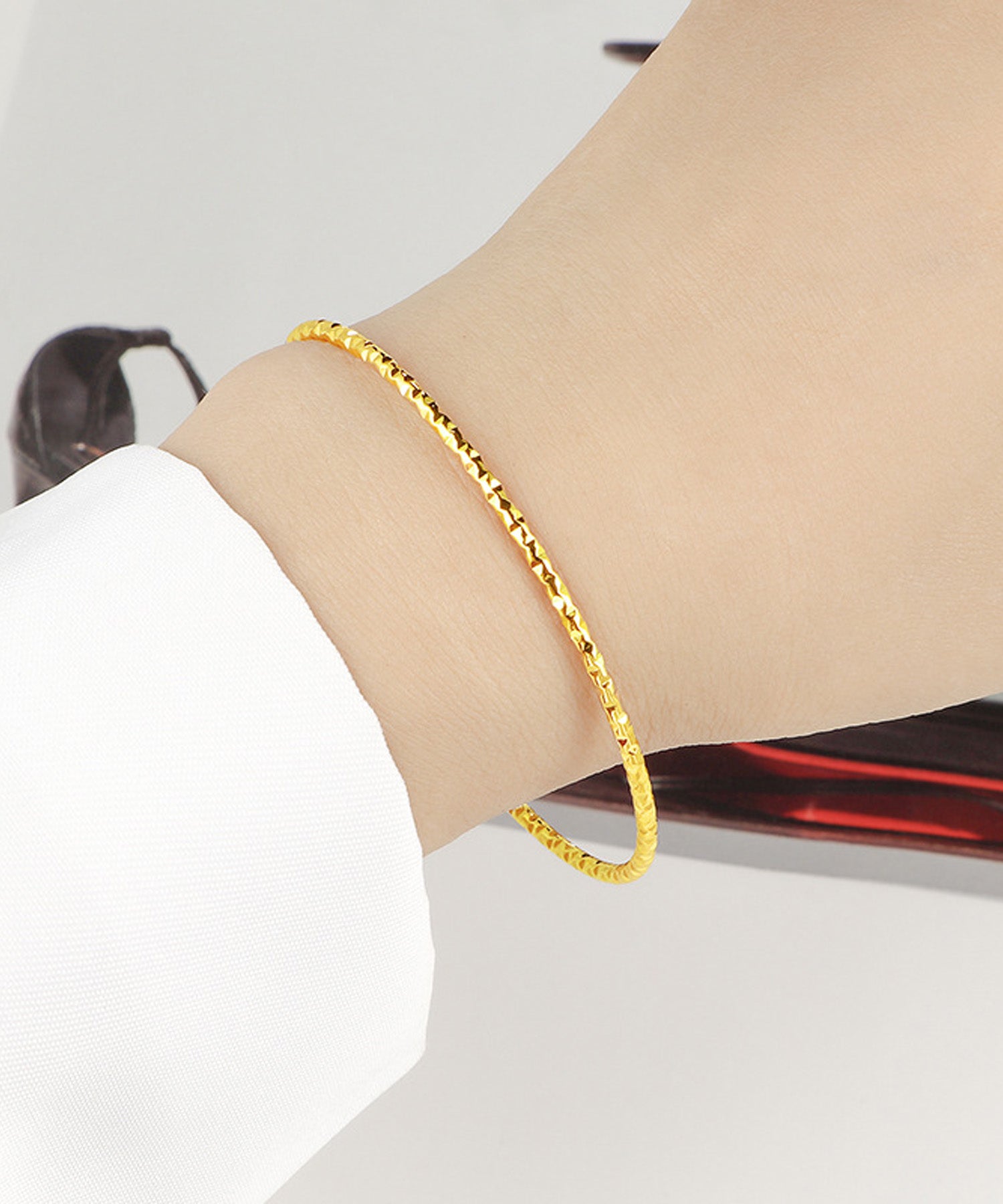 表面全体に細かく多面的なカットが施されており、光を反射してキラキラと輝くのが特徴のブレスレット。