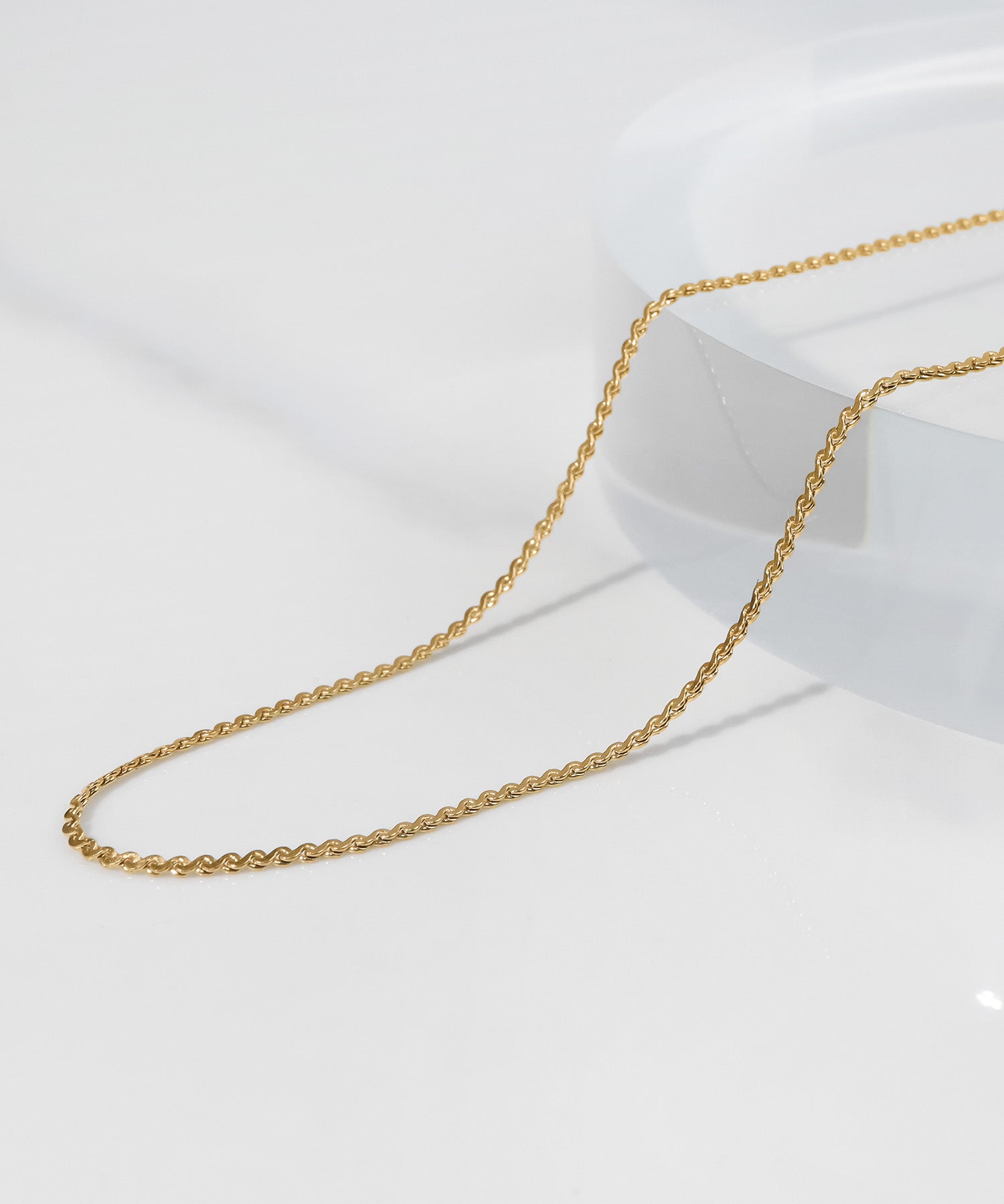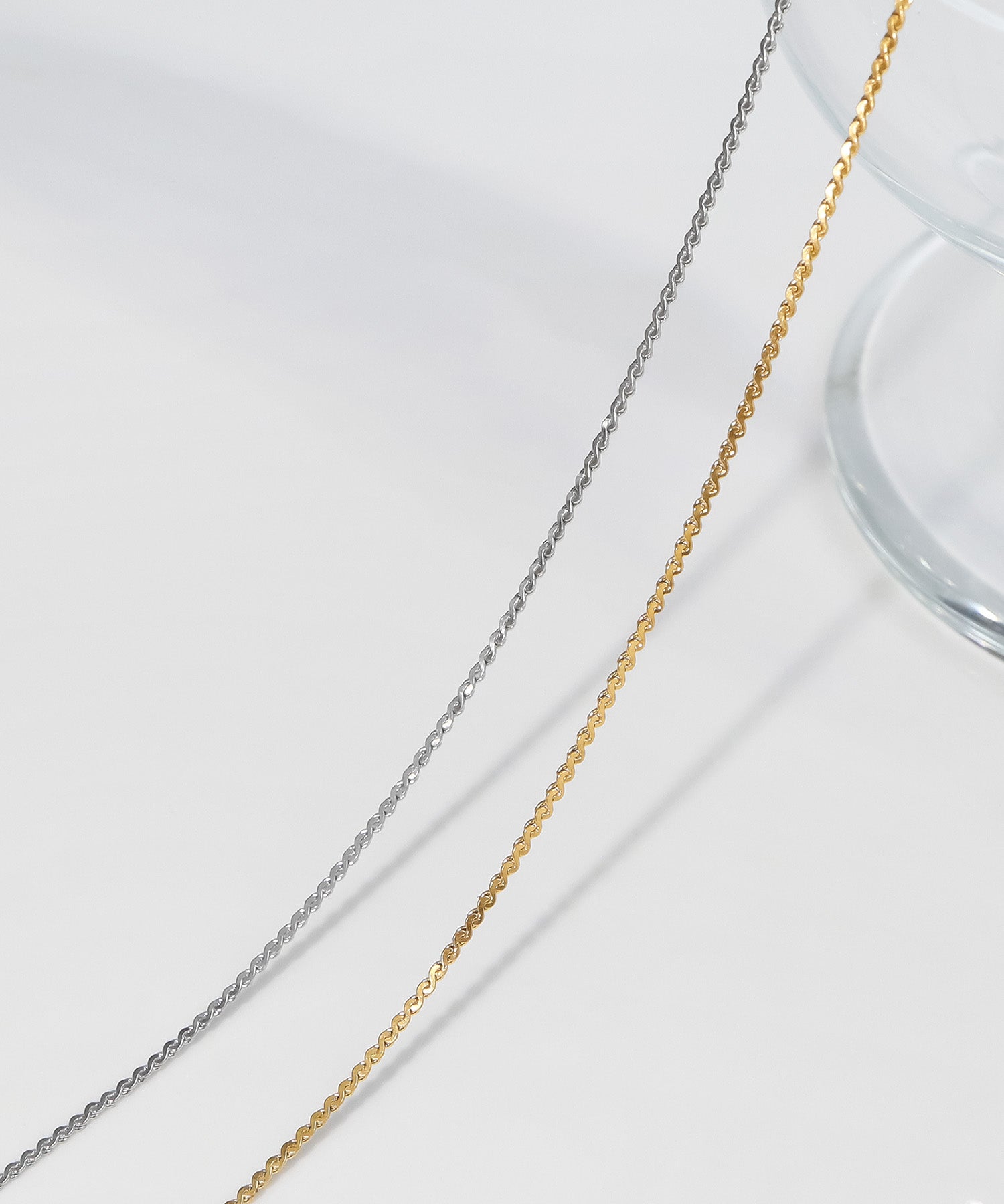 上品なS曲線パーツが印象的で華やかに輝く、華奢チェーンネックレス。