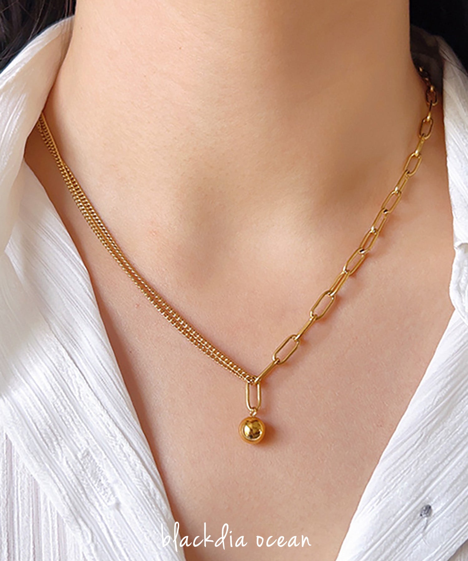 blackdia ocean ミックスチェーンボールチャームネックレス