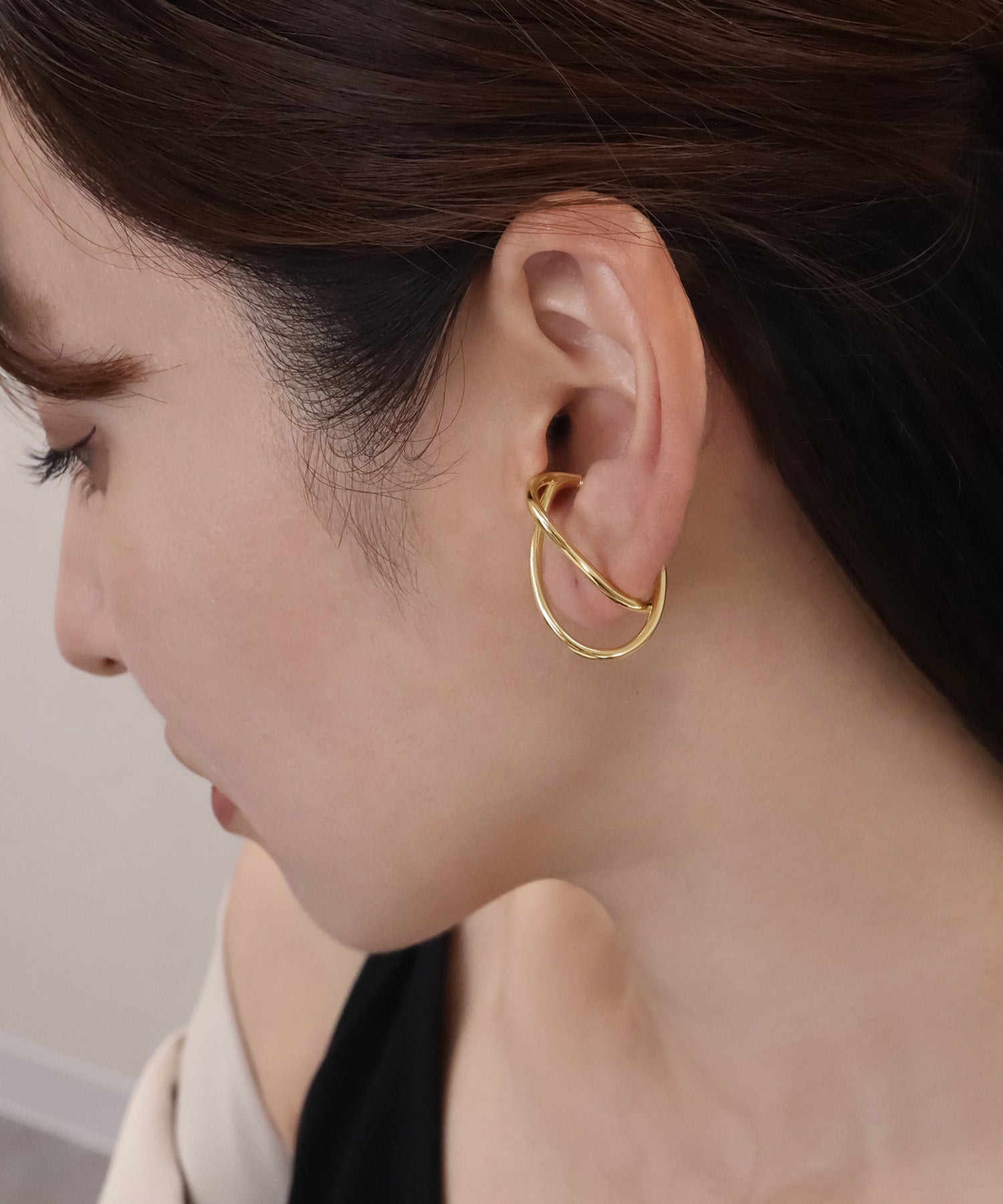 柔らかなフォルムと立体的なデザインが抜け感のあるイヤーカフ。
