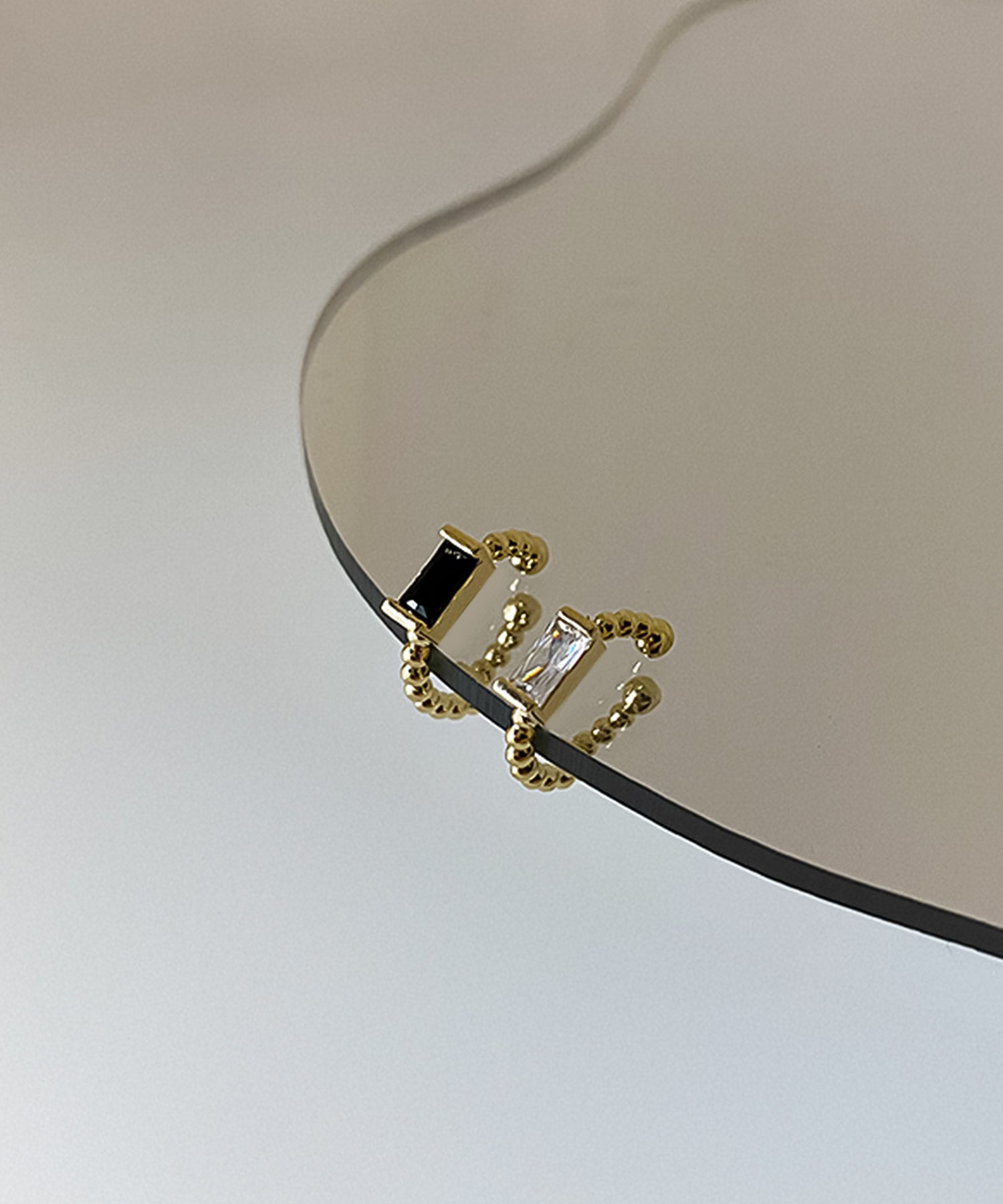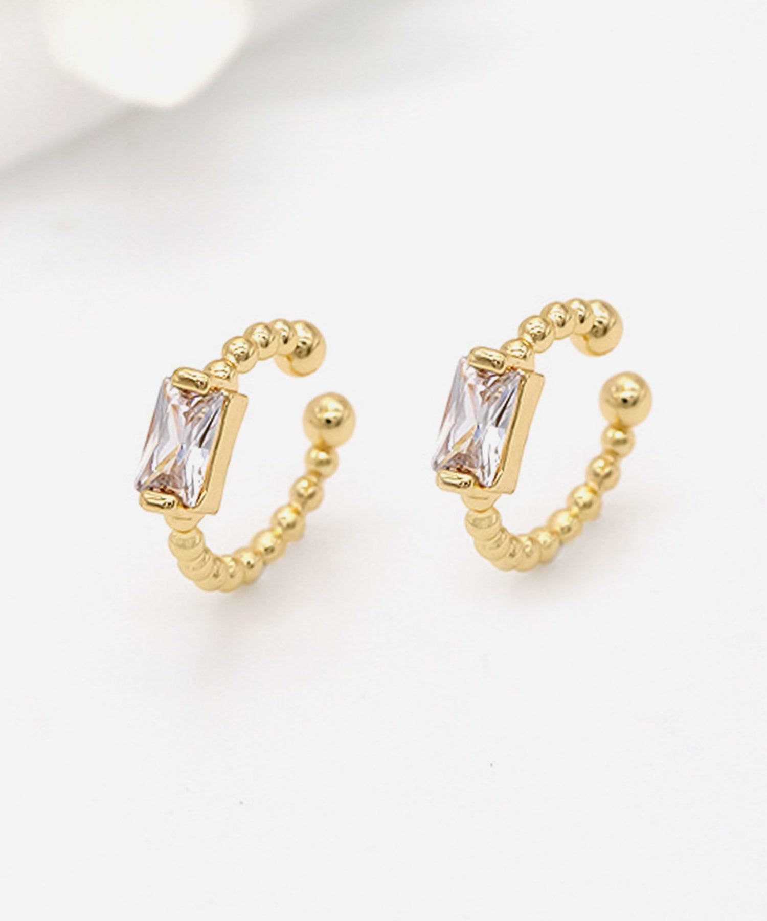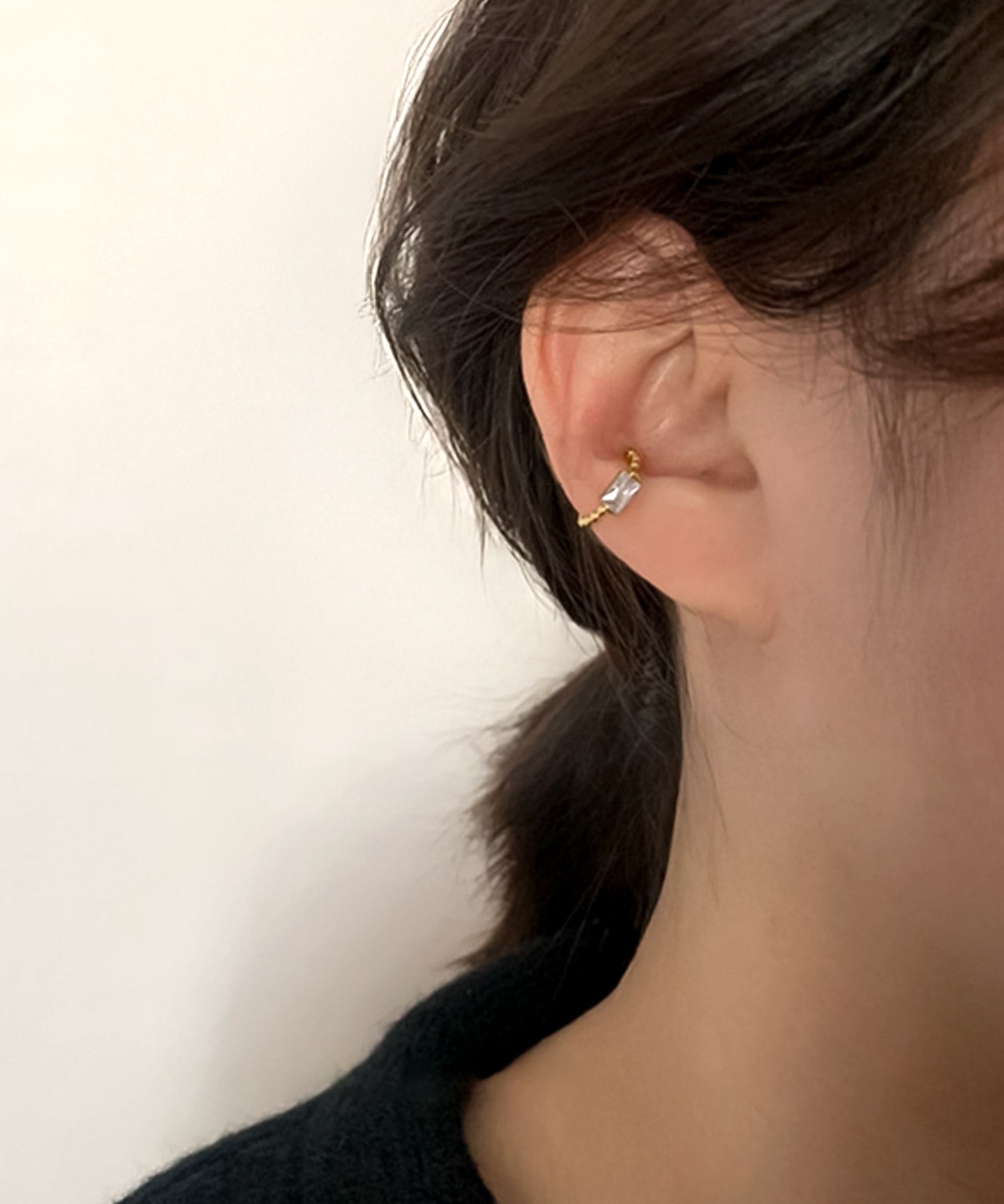 スクエア型のストーンが耳元のアクセントになるイヤーカフ。