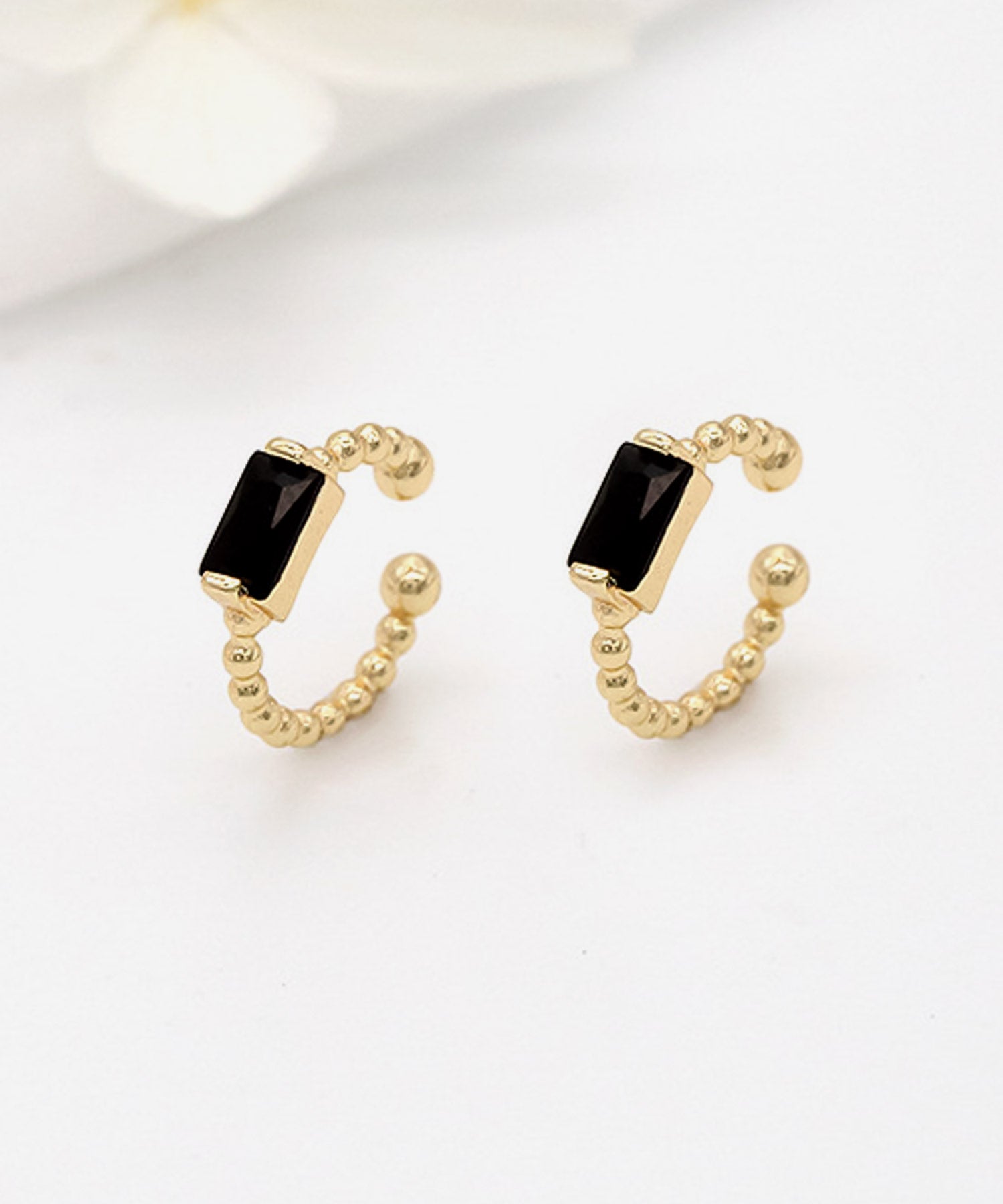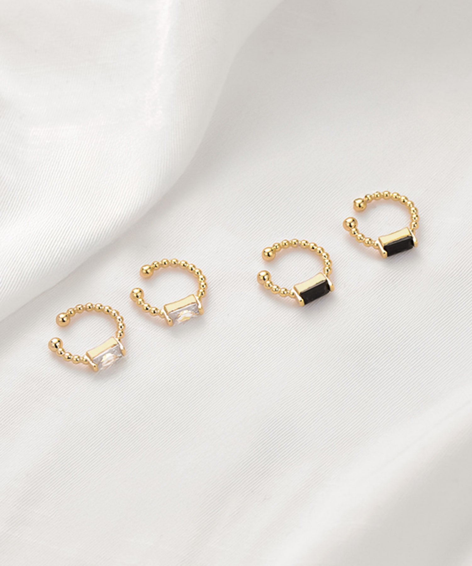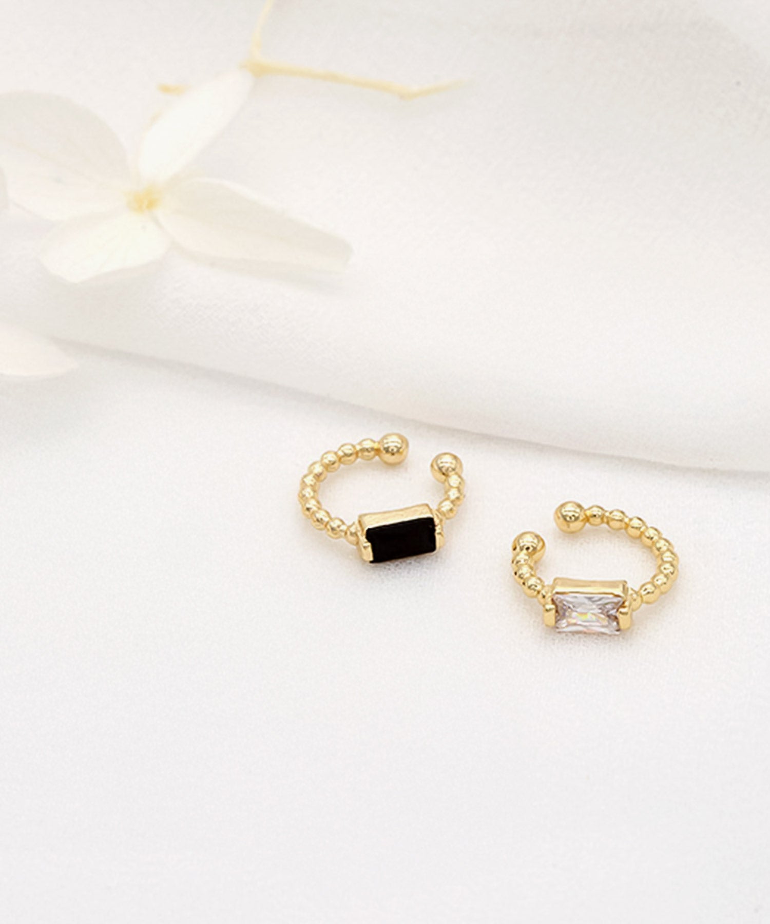 スクエア型のストーンが耳元のアクセントになるイヤーカフ。
