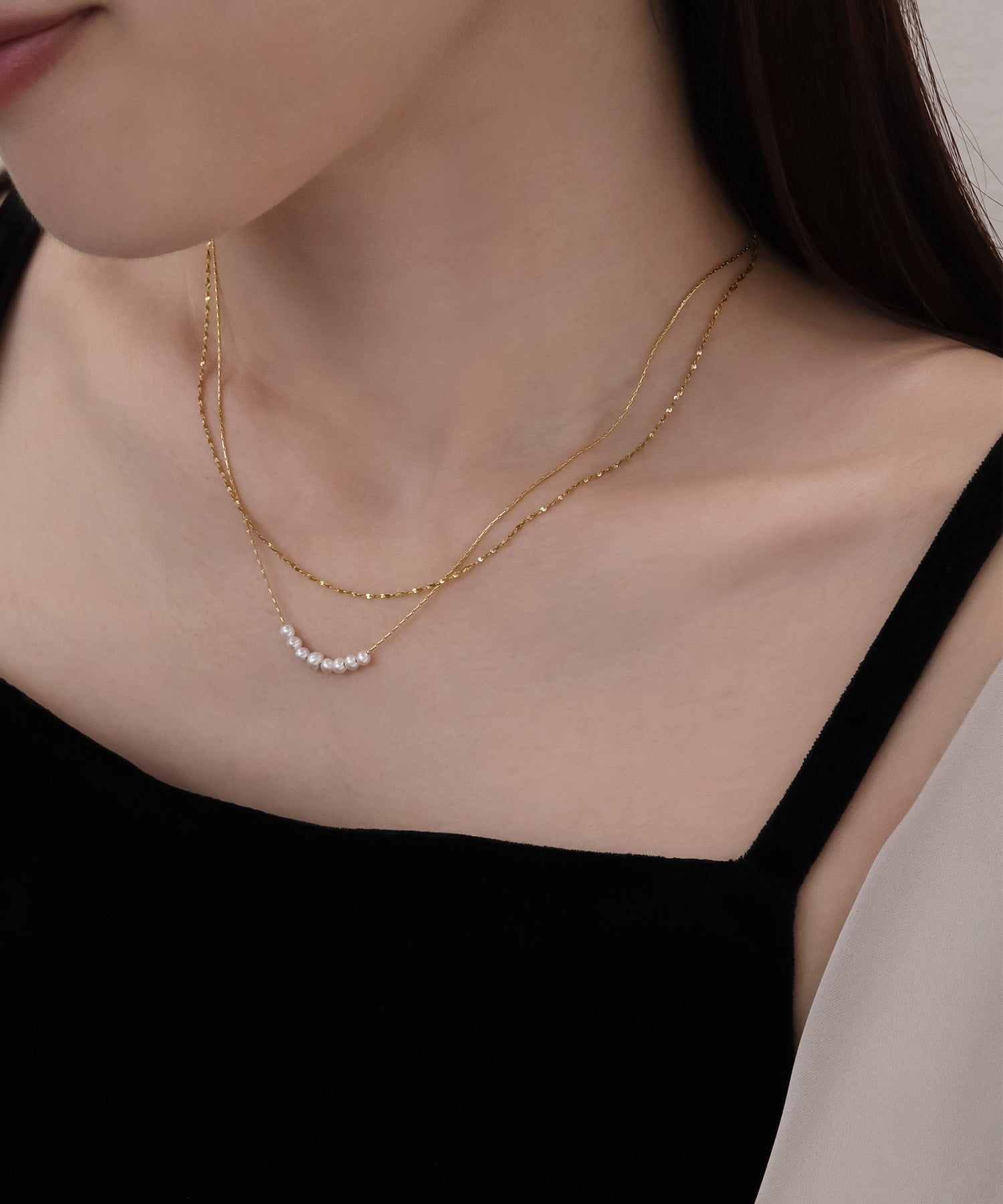 滑らかなスキンチェーンとミニパールが上品な印象のネックレス。