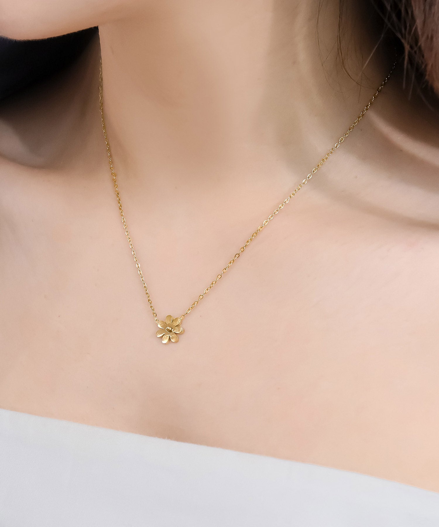 小さなデイジーモチーフが可愛らしいネックレス。