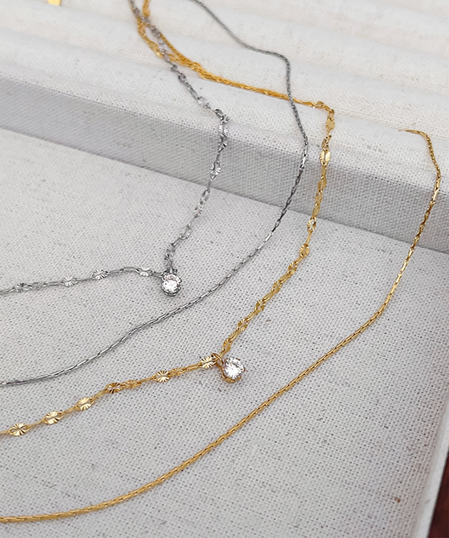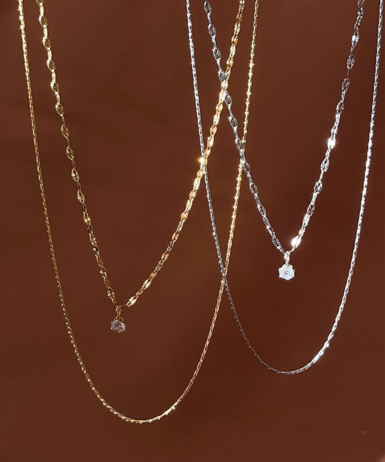 デザイン違いのチェーンに、ジルコニアが輝きます。