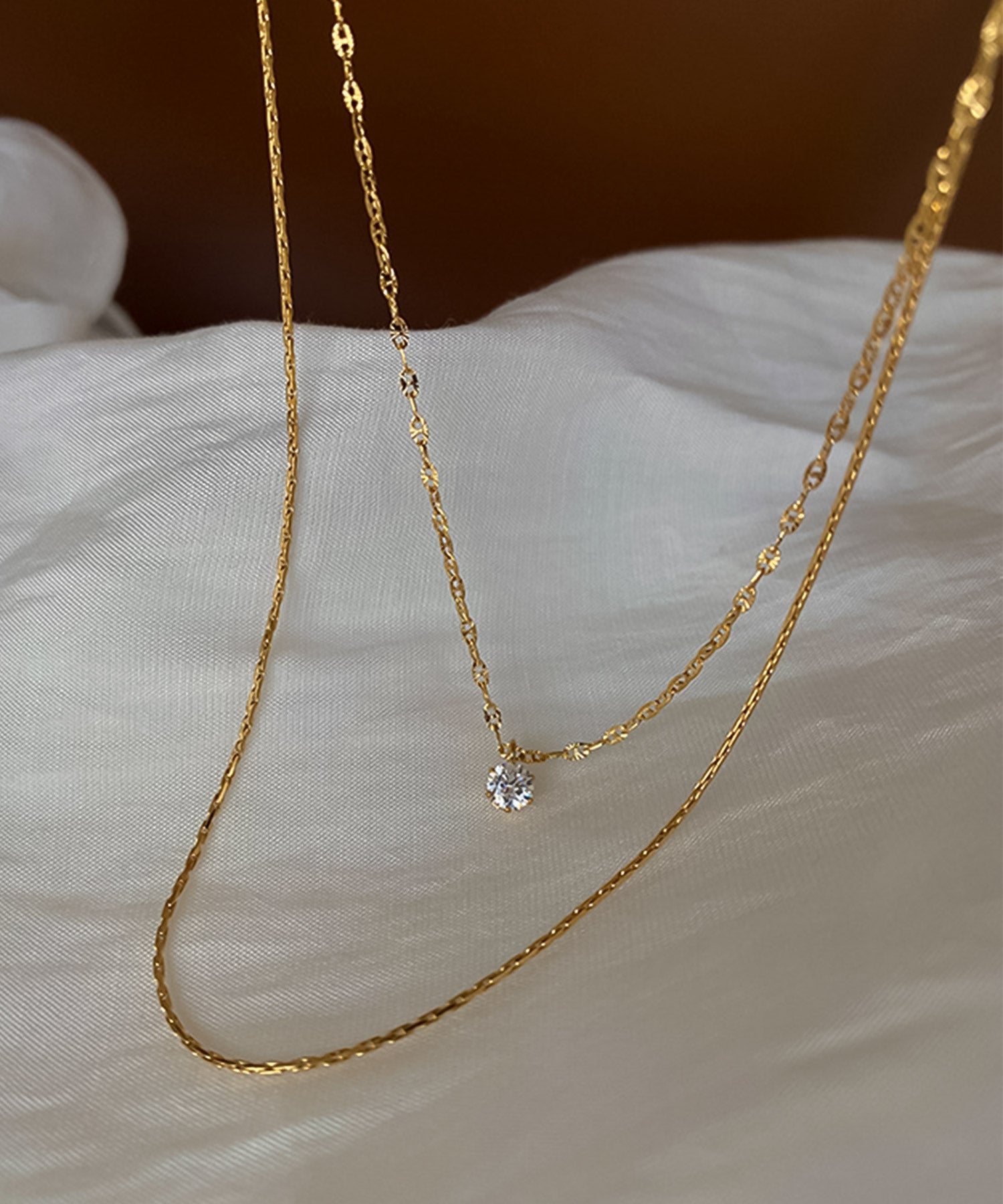 blackdia ocean ジルコニアダブルチェーンネックレス