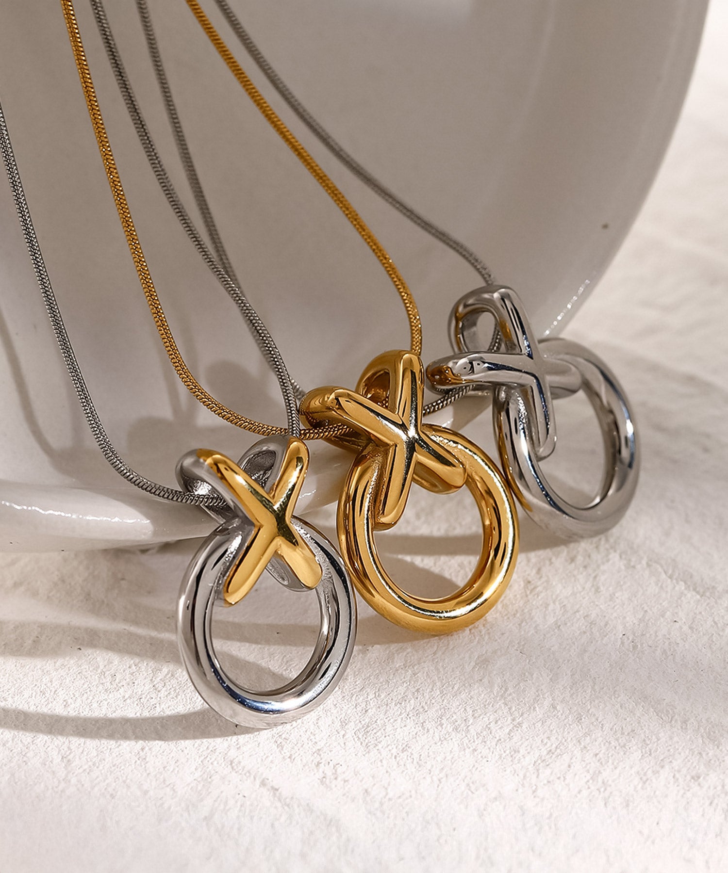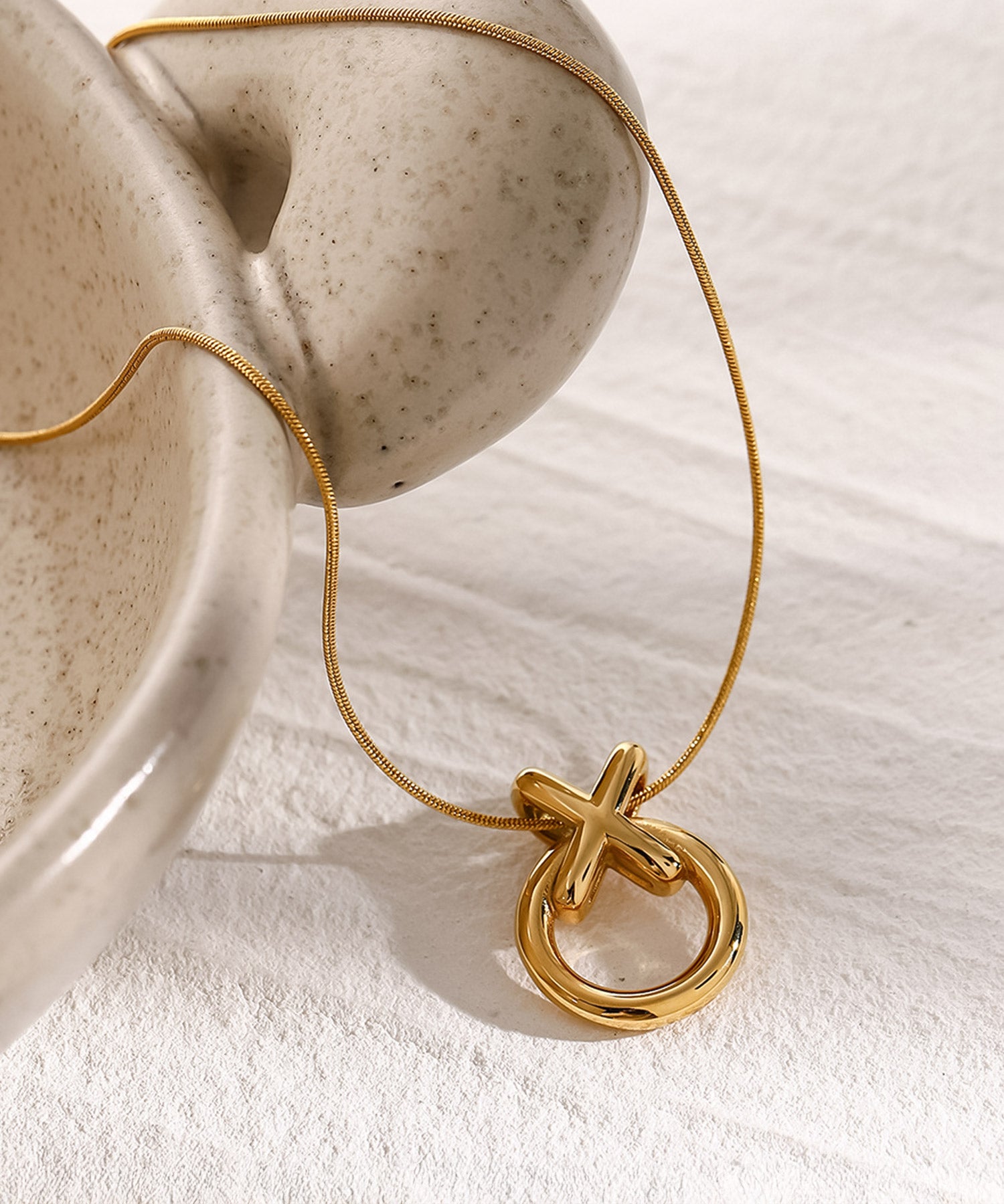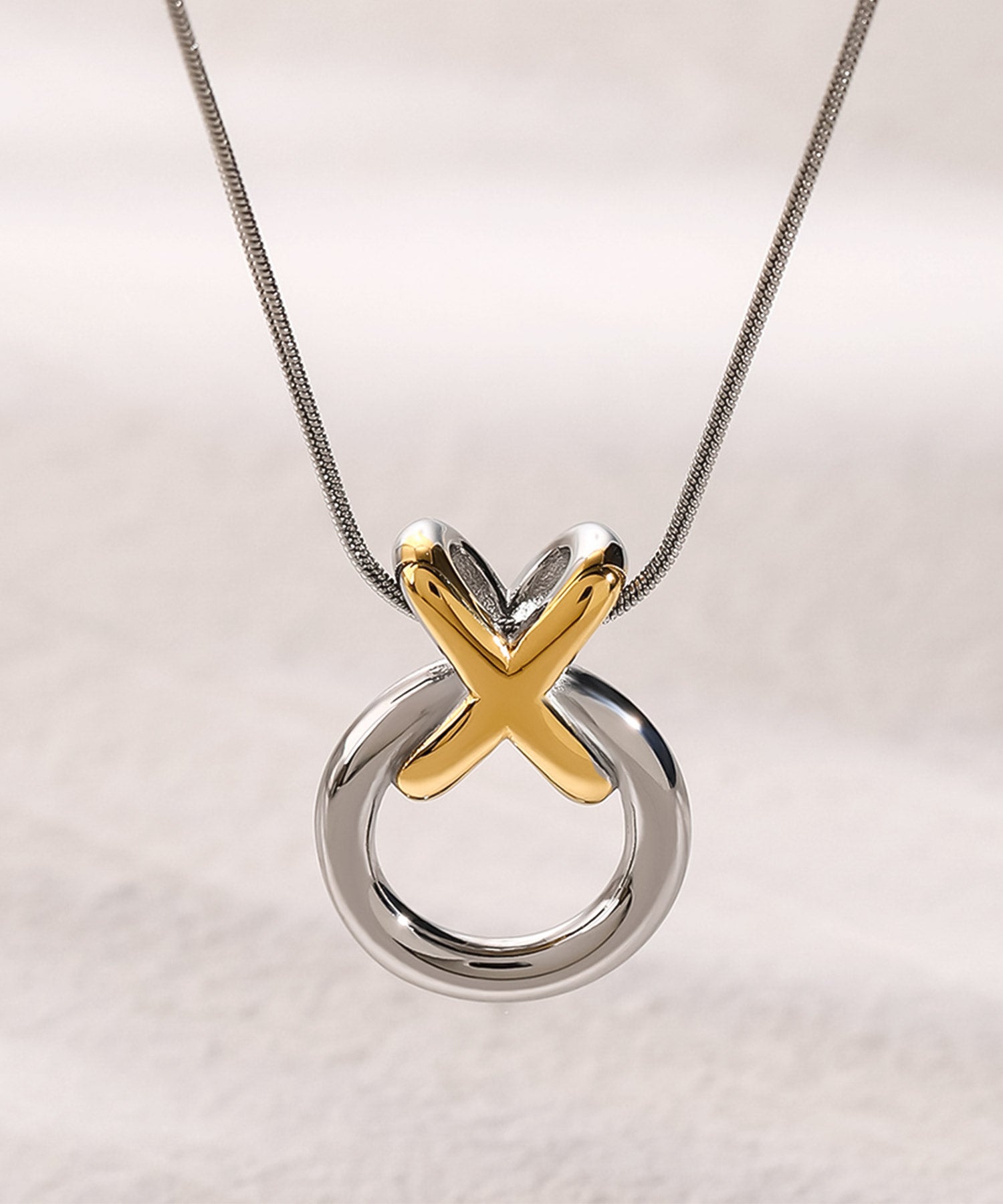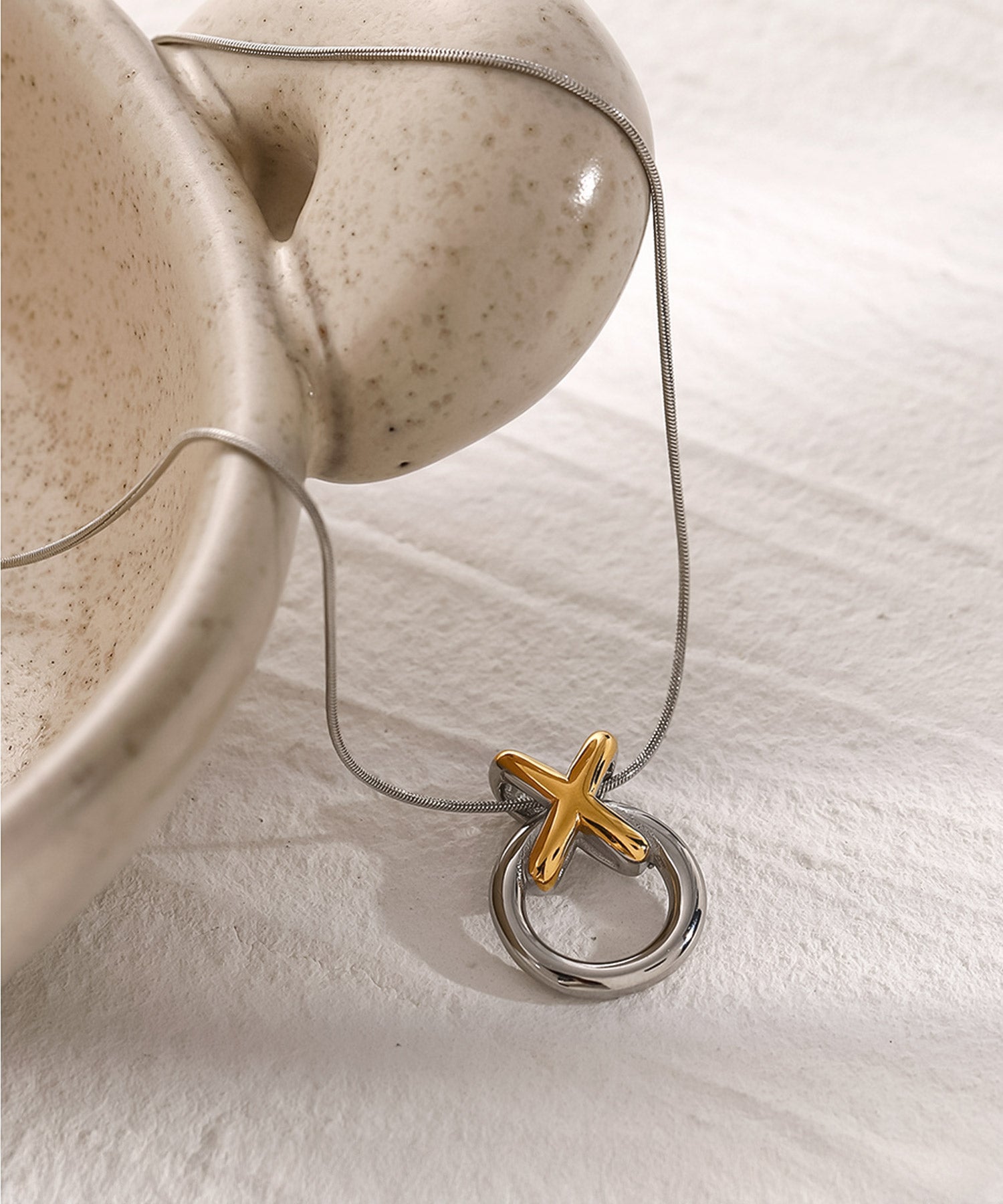クロス×サークルモチーフのネックレス。