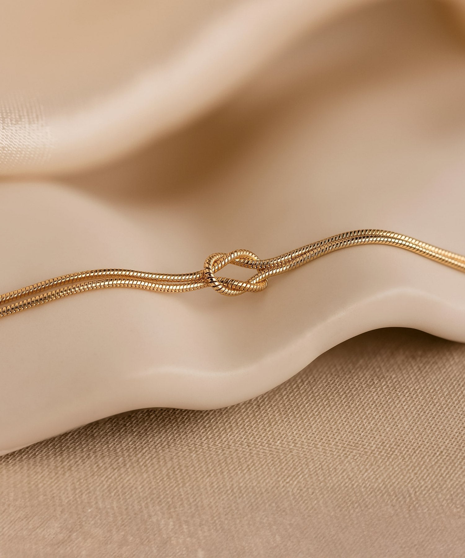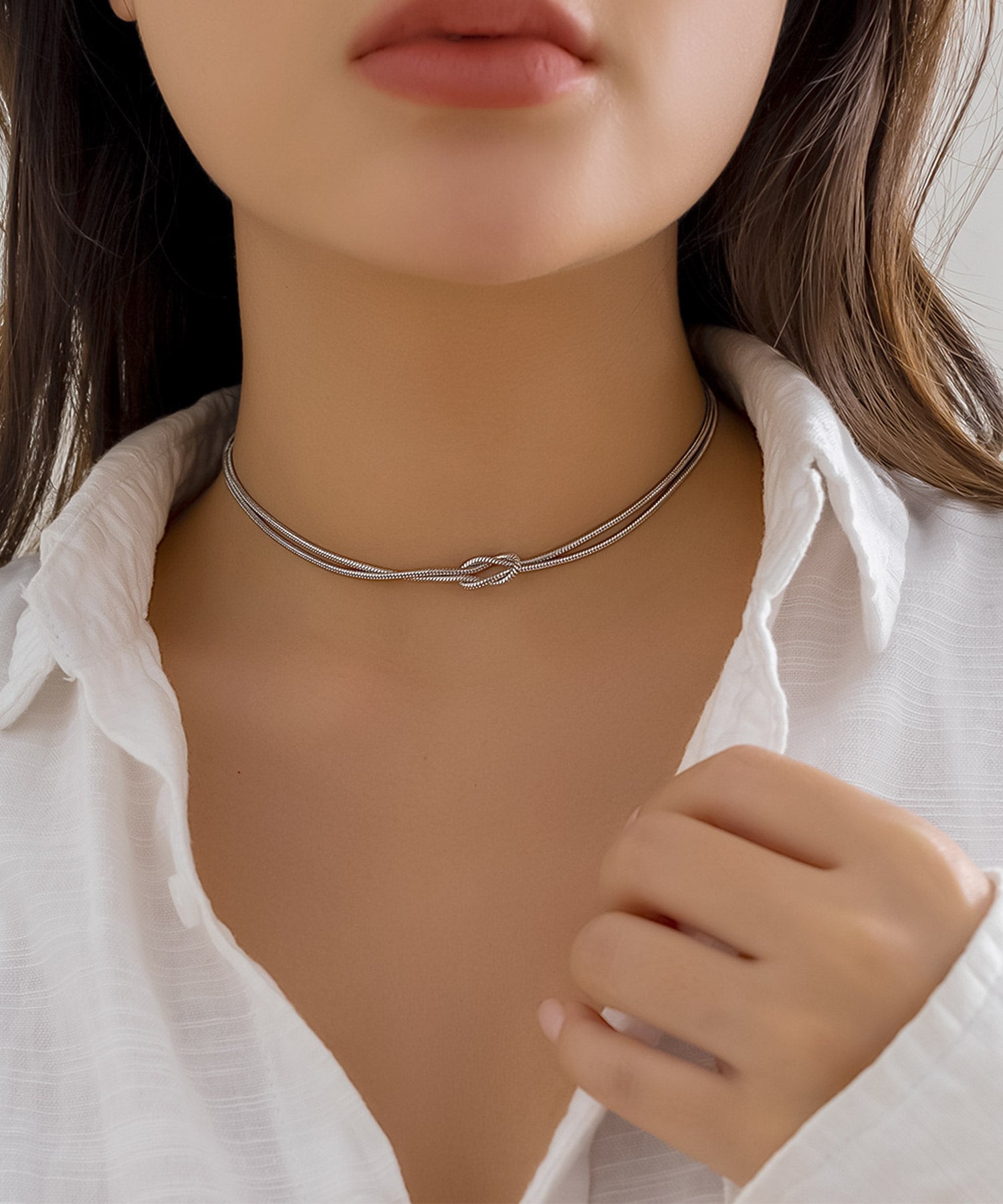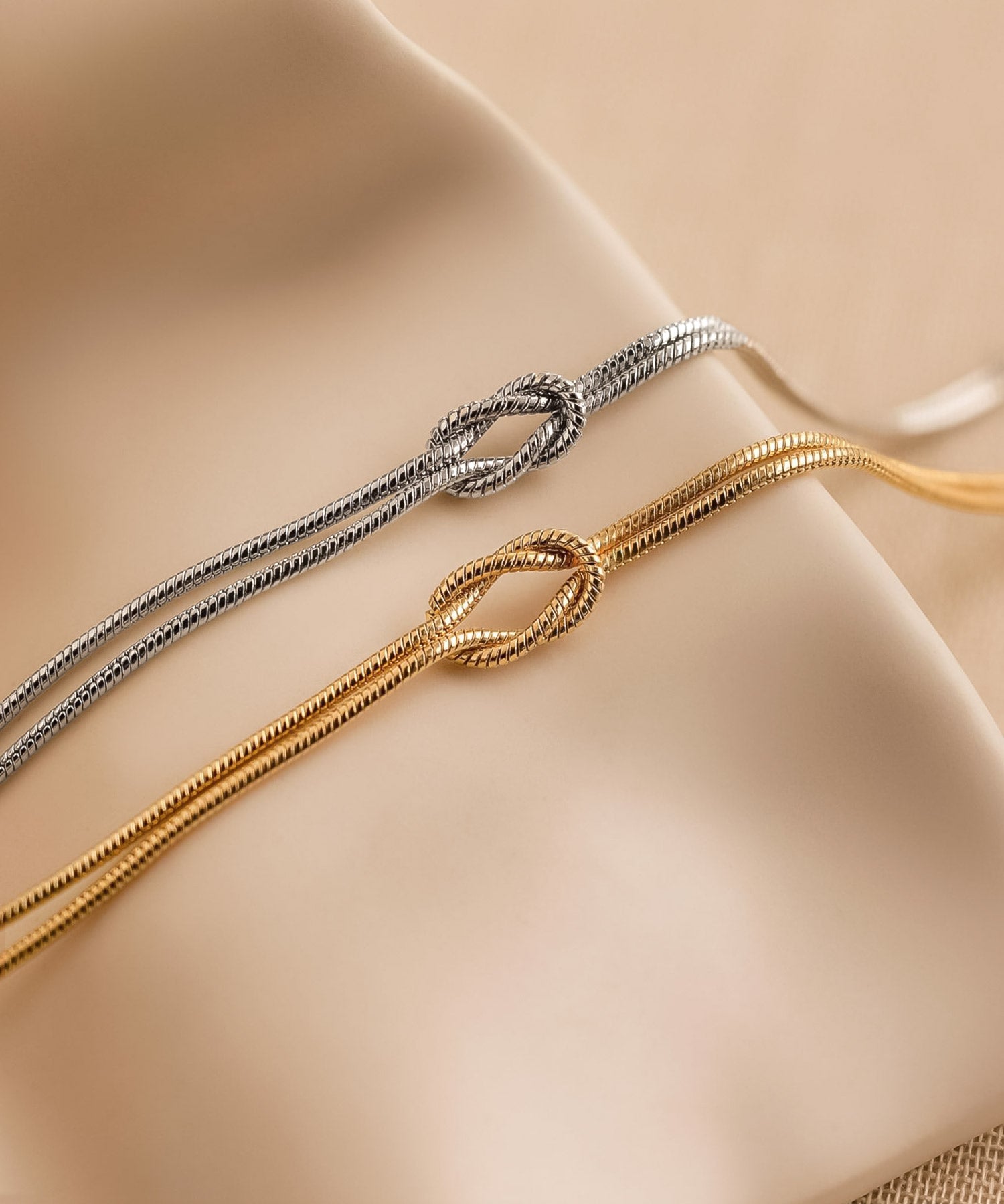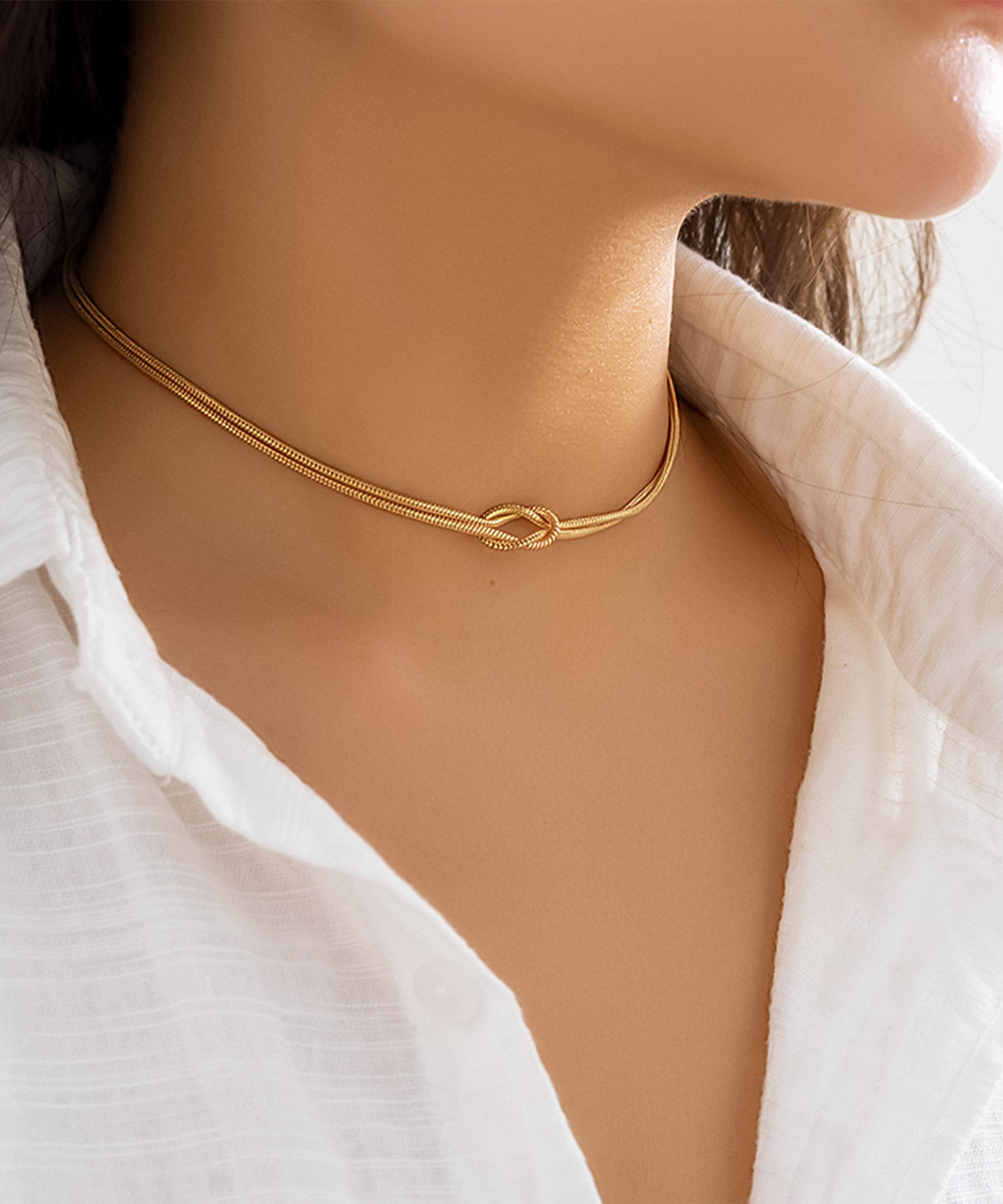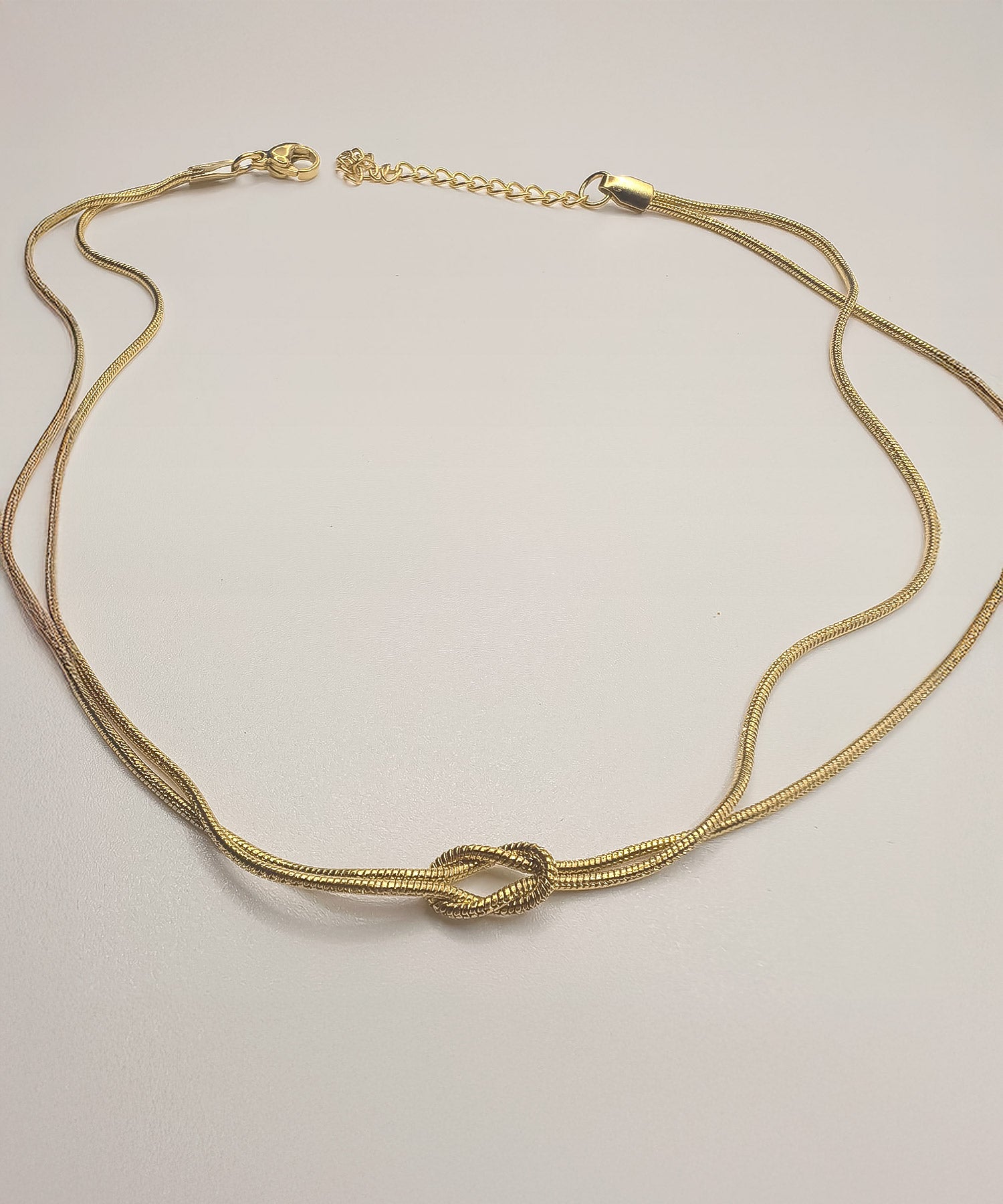 ノットデザインがさりげなくかわいい、スネークチェーンのステンレスネックレス。