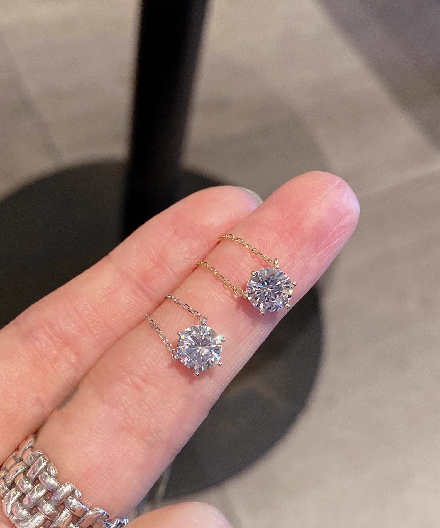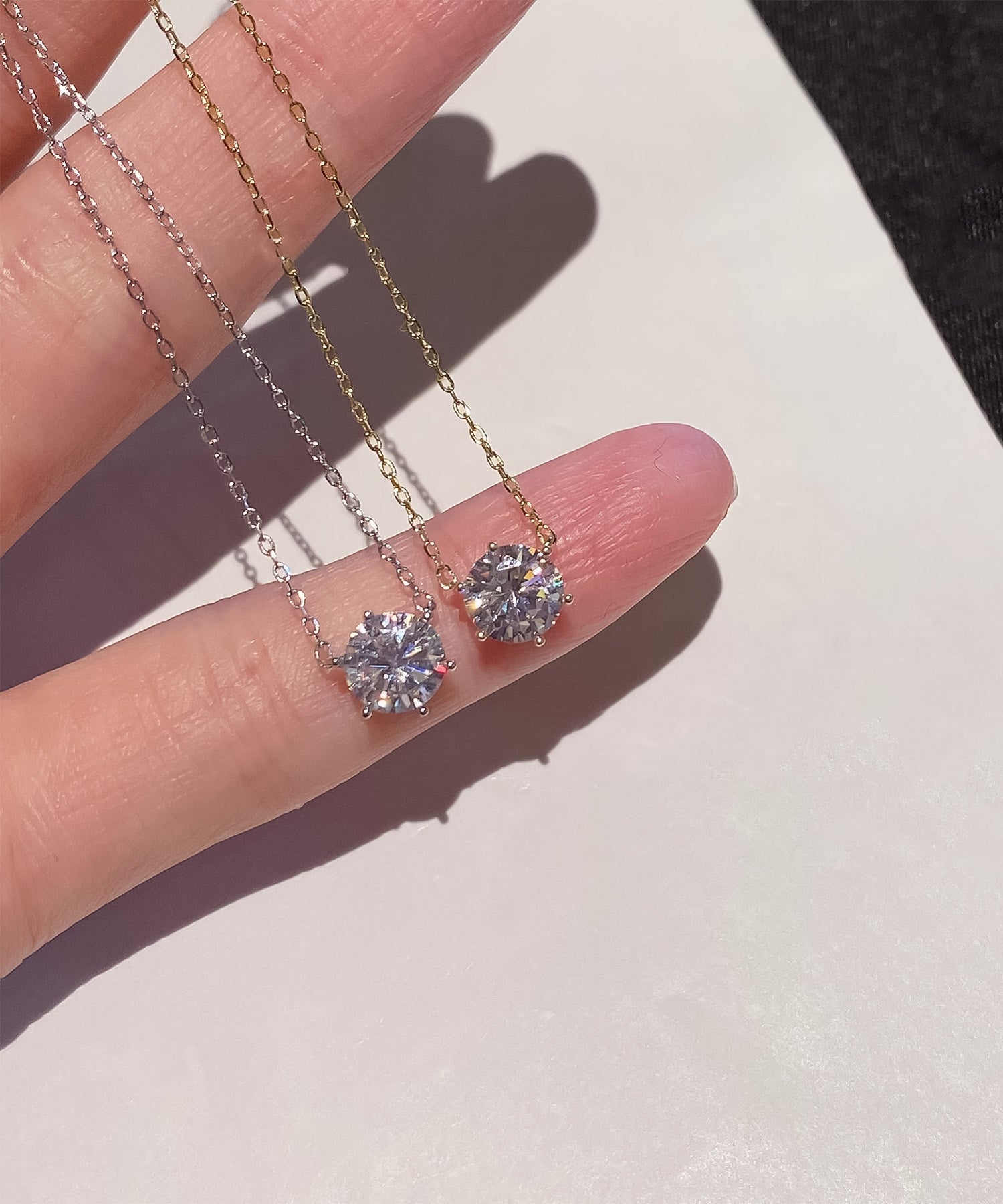 肌に馴染むアズキチェーンとポイントとなるジルコニアが上品な輝きを放ち、デコルテラインを華やかな印象に仕上げてくれます。