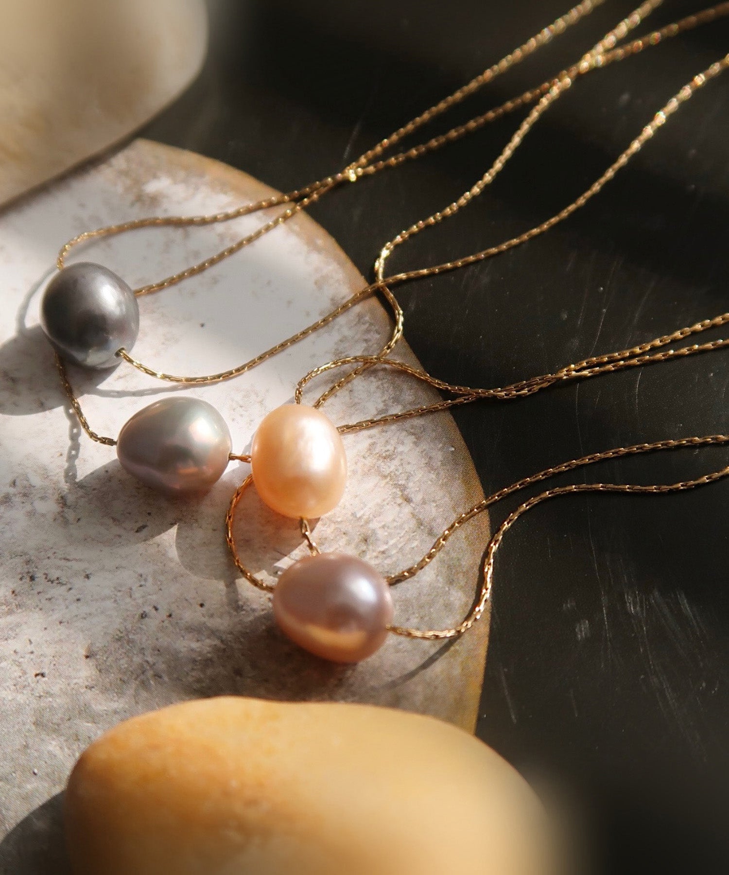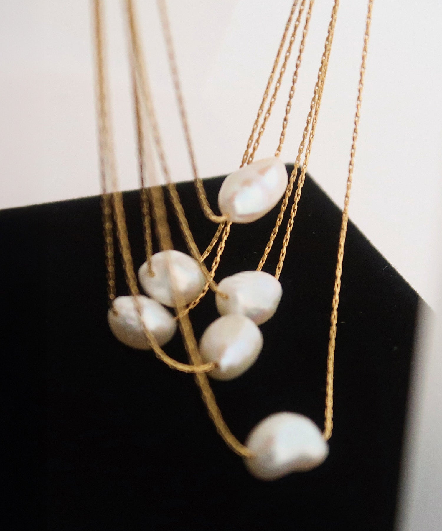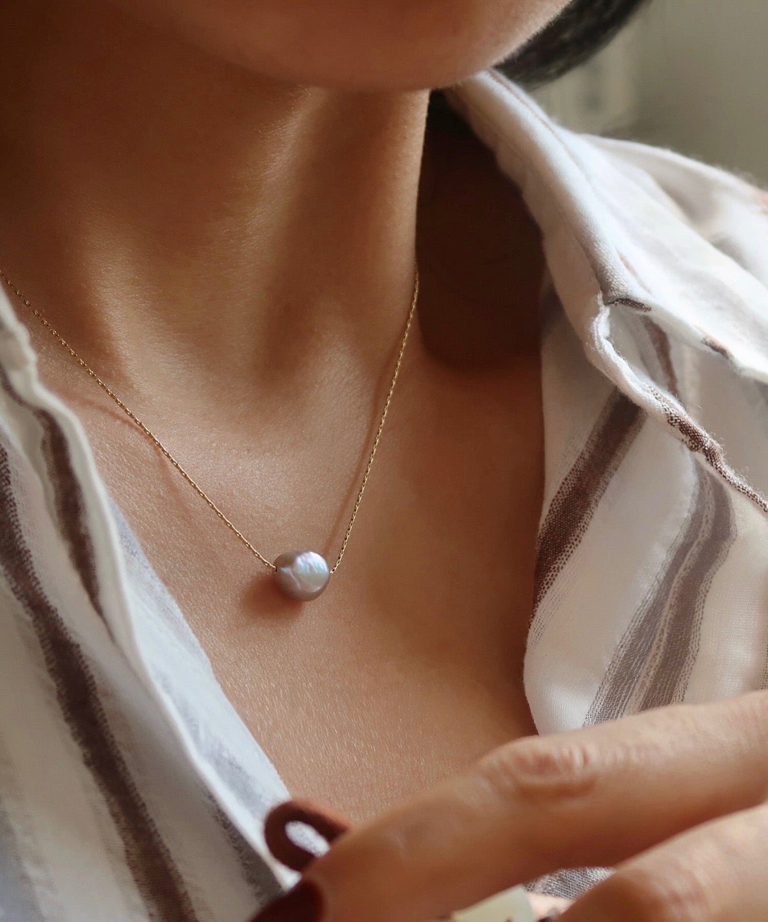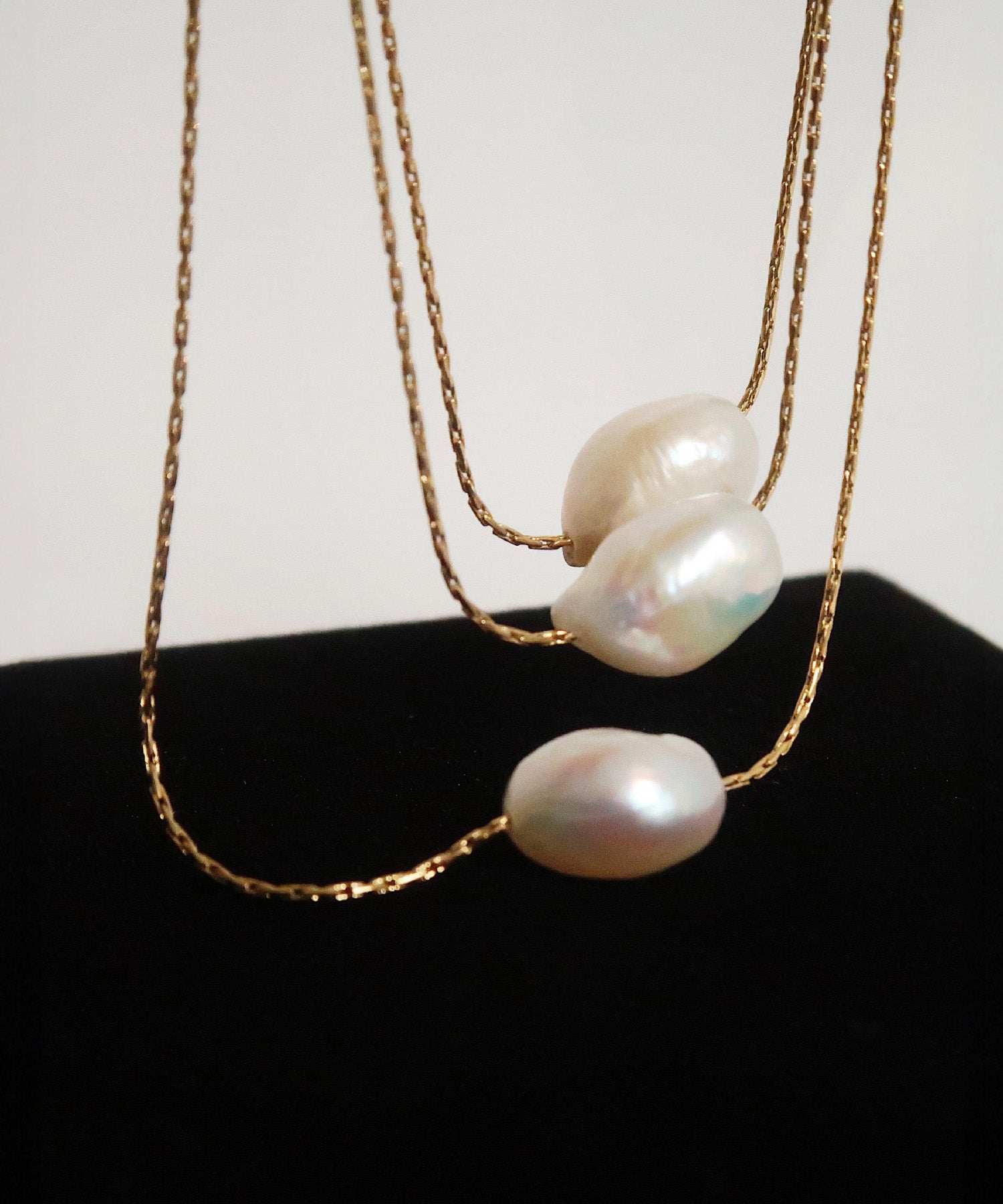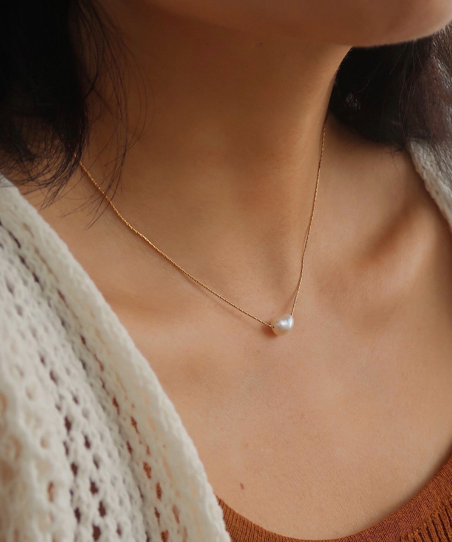 ひとつひとつ表情が違うバロックパールとチェーンの組み合わせが、首元に自然なツヤと立体感を産み出します。