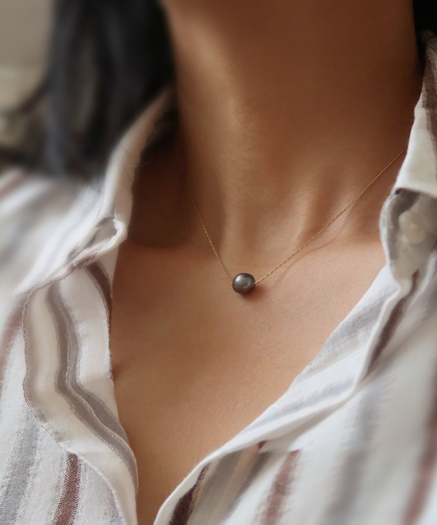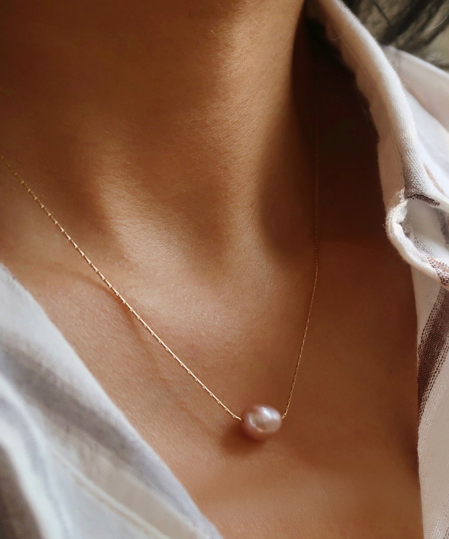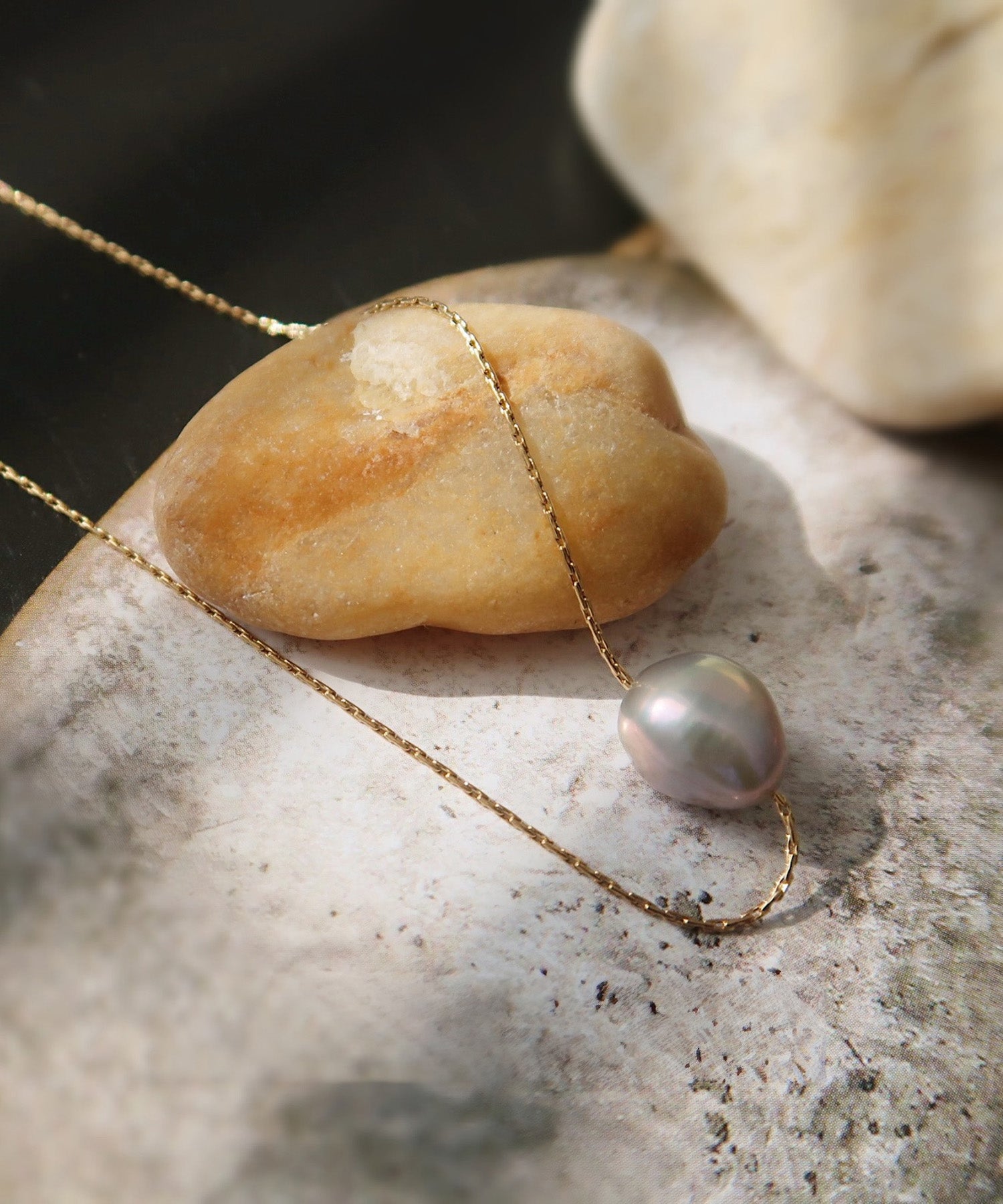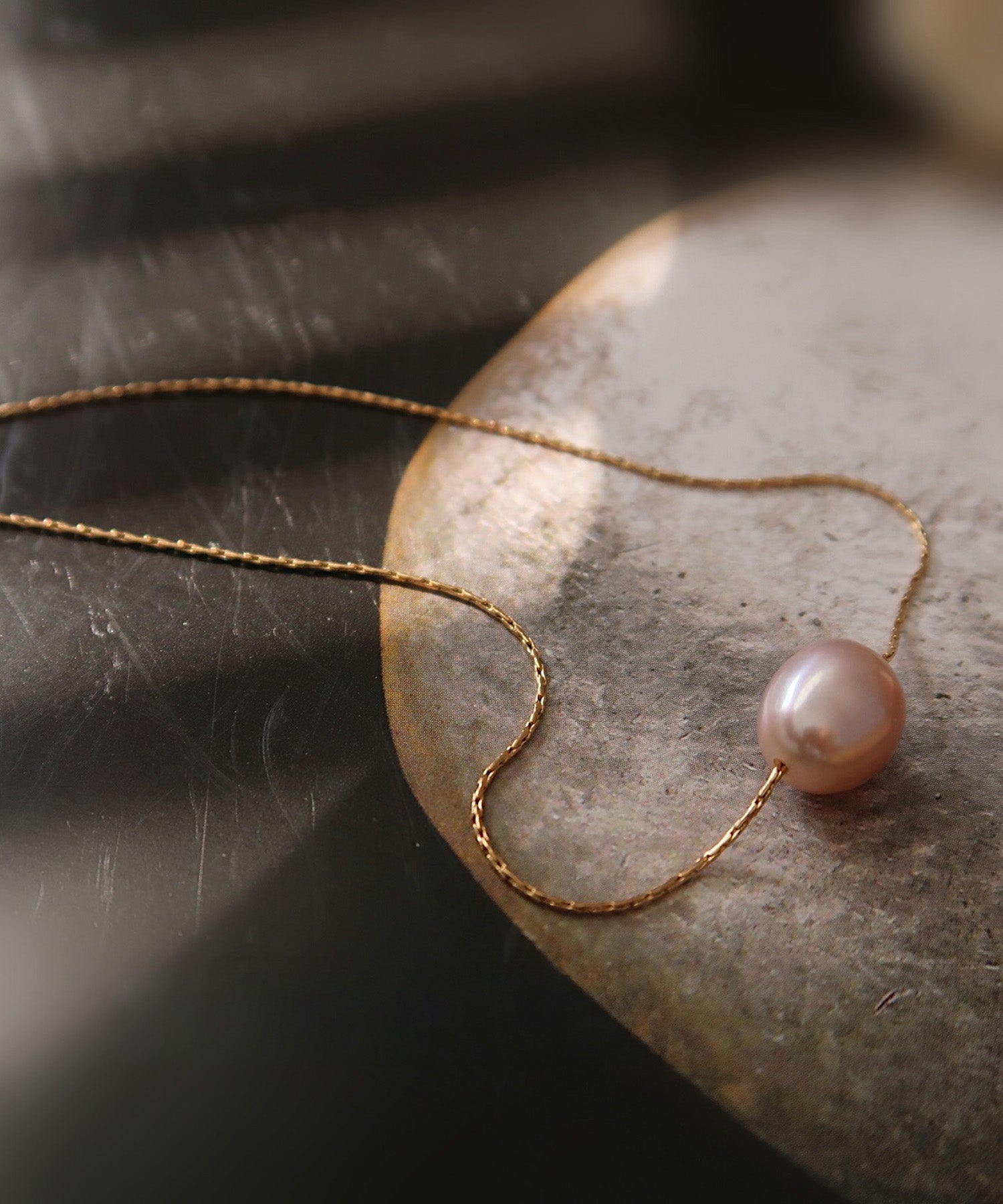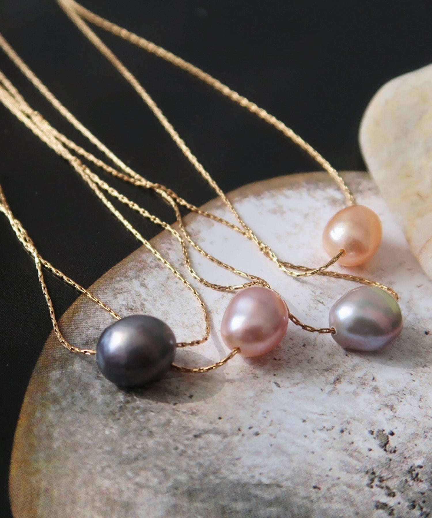 ひとつひとつ表情が違うバロックパールとチェーンの組み合わせが、首元に自然なツヤと立体感を産み出します。