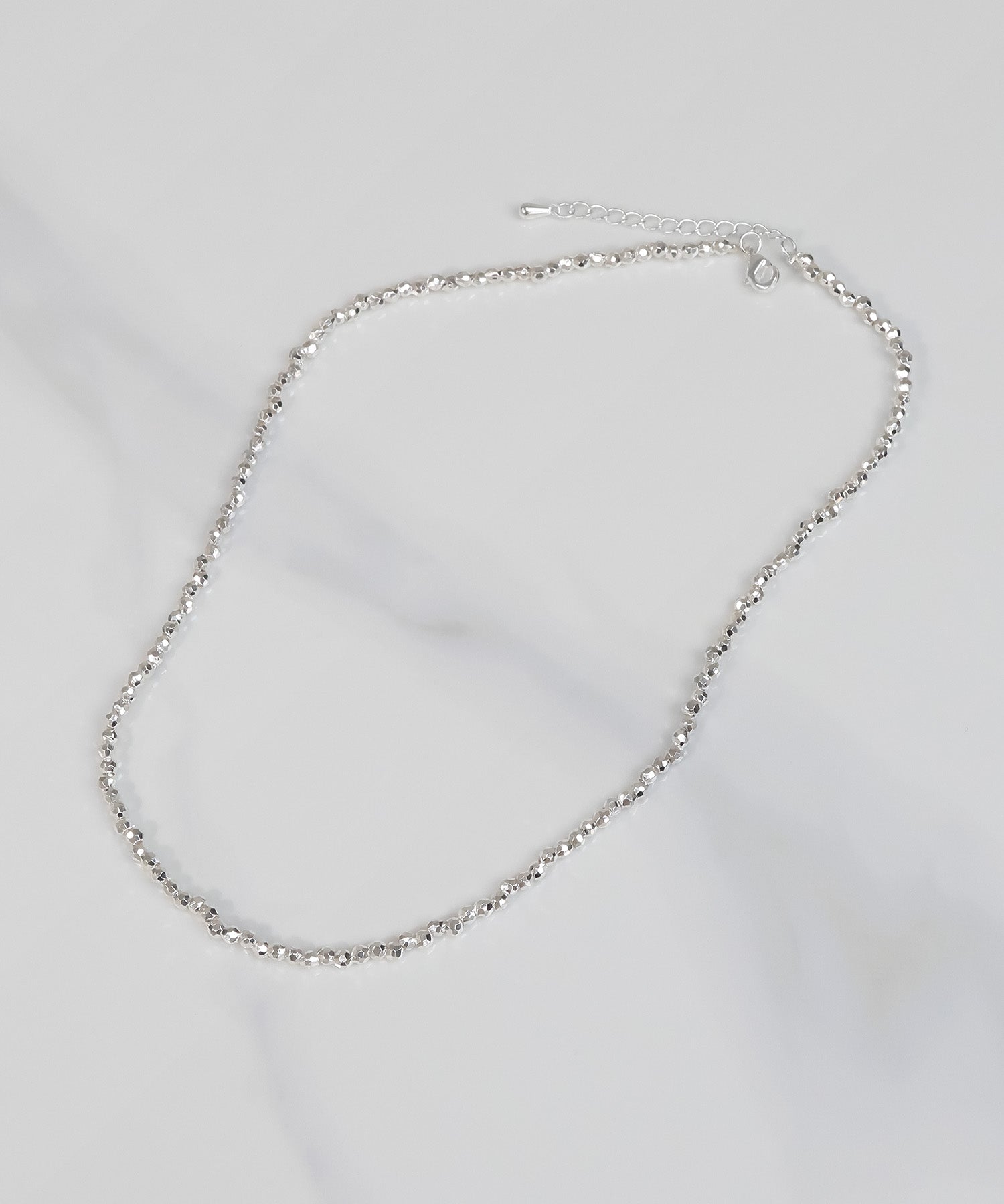 シンプルでいて、洗練された輝きを放つ、多角形ビーズのネックレスです。