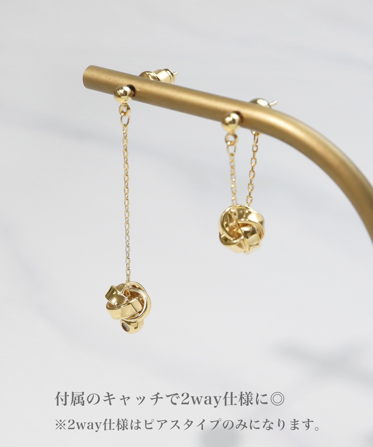 ピアスタイプは付属のキャッチを使用すれば、チェーンを垂らして使える2way仕様◎