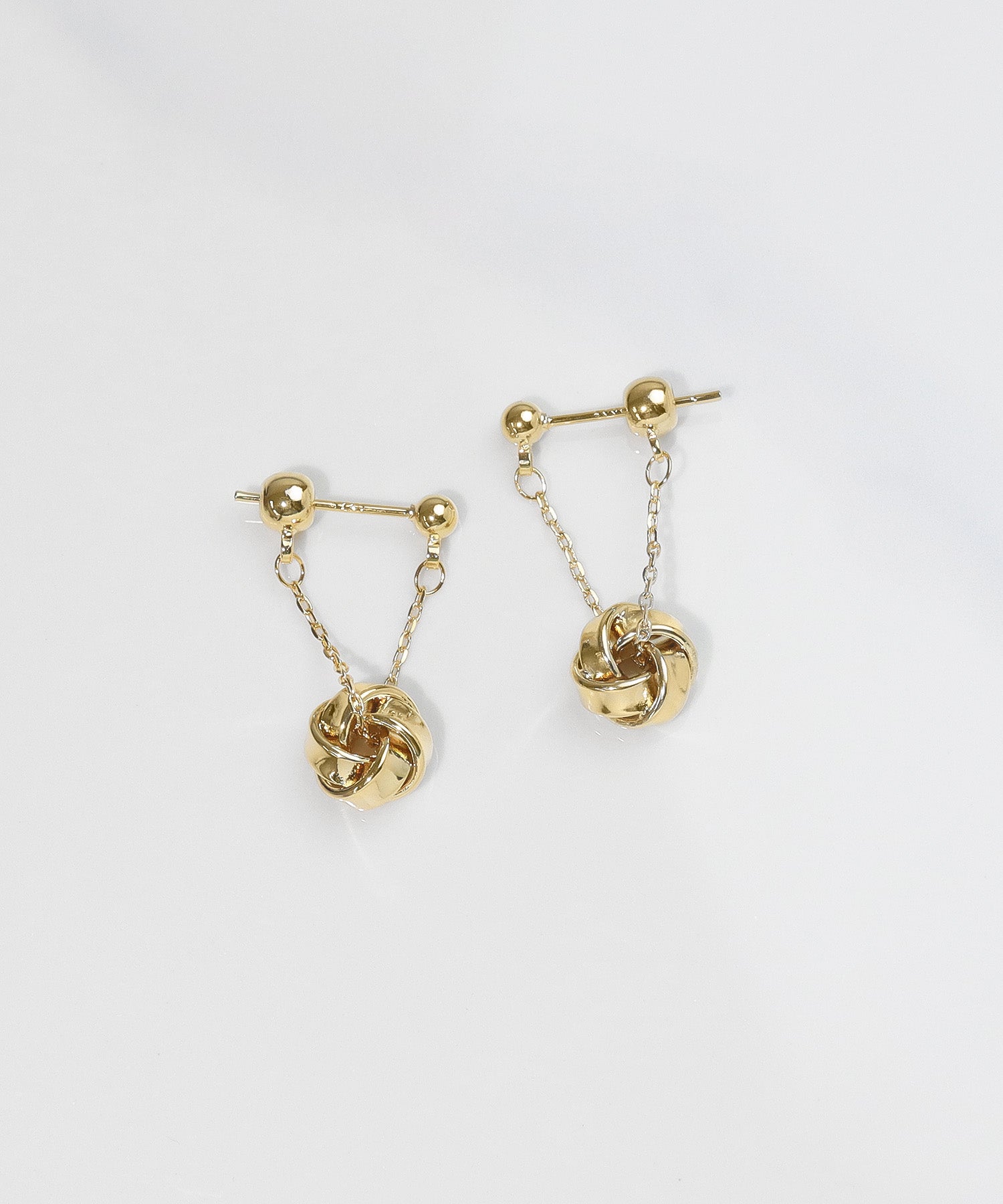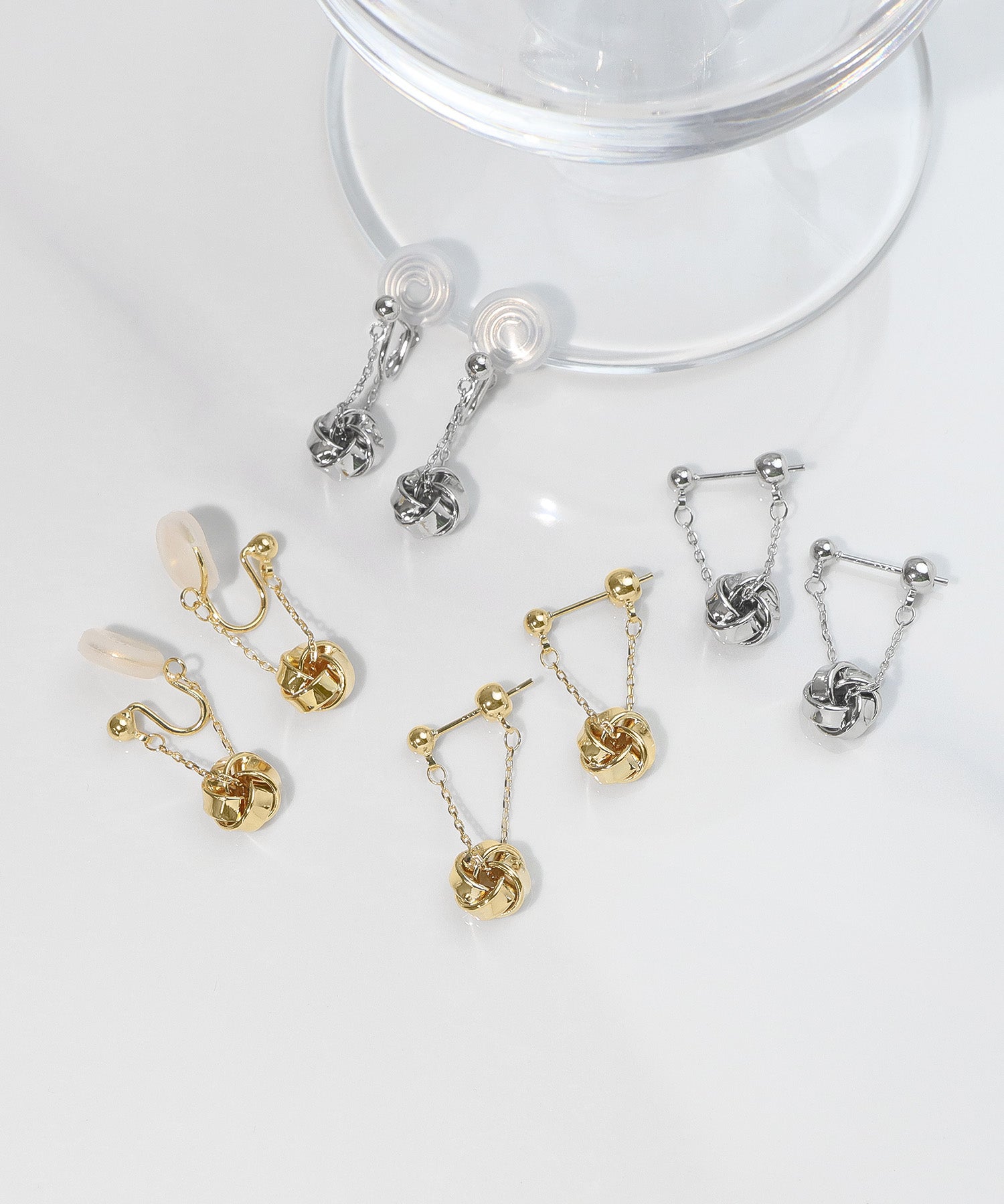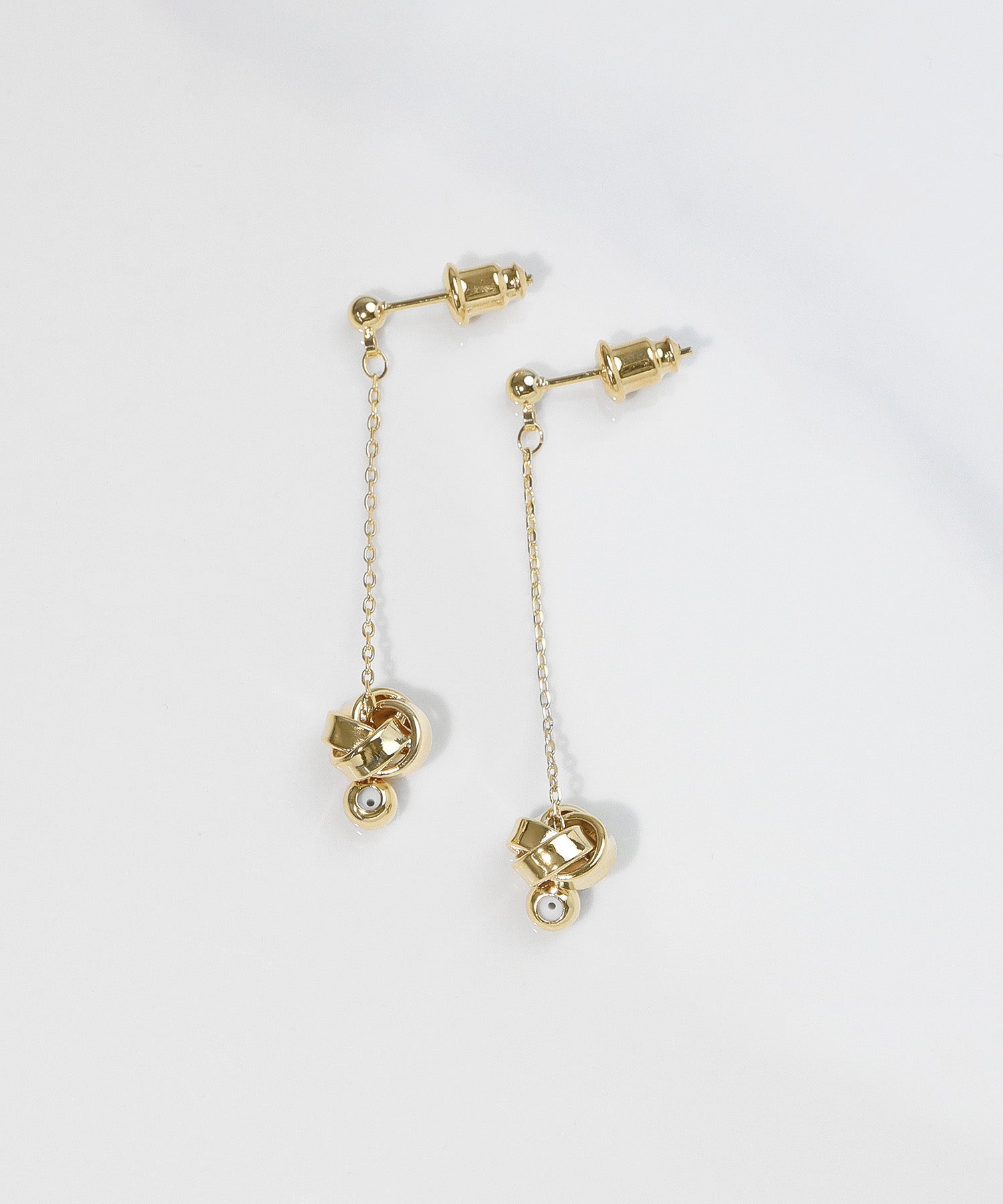 軽やかに揺れるチェーンと個性的なひねりデザインのモチーフが大人な印象のピアス/イヤリング。