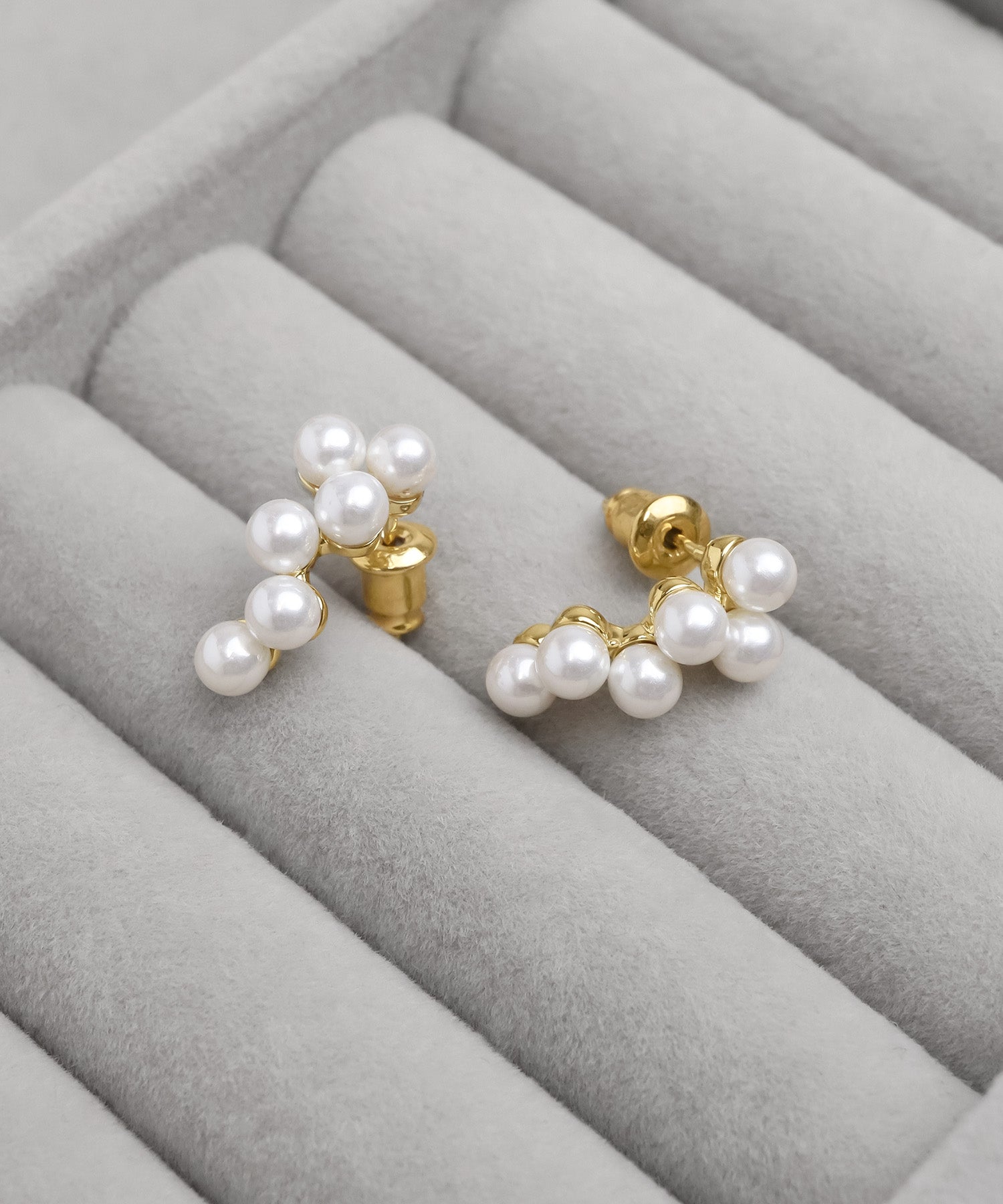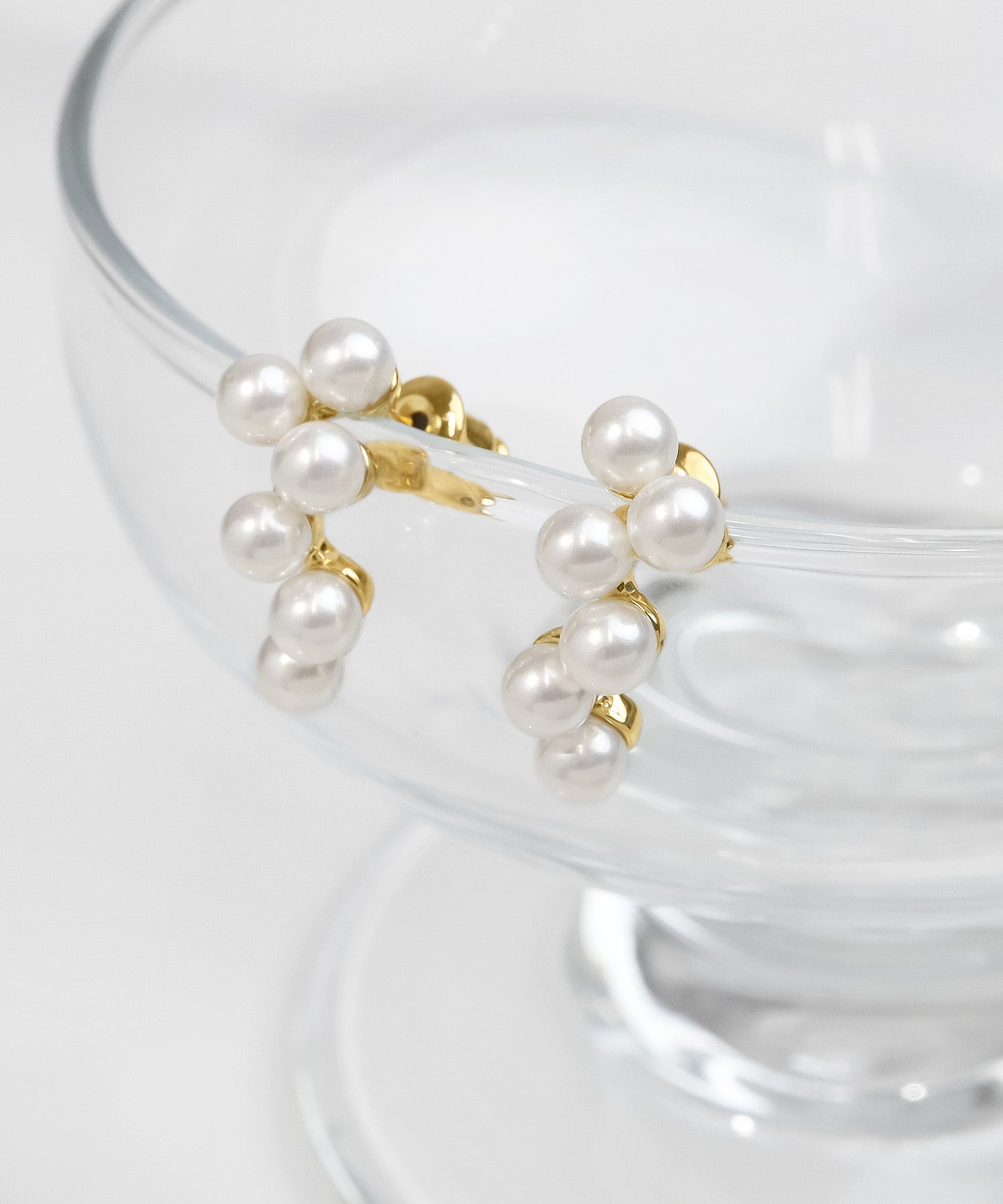 連なるパールの輝きが美しいデザインピアス/イヤリング。