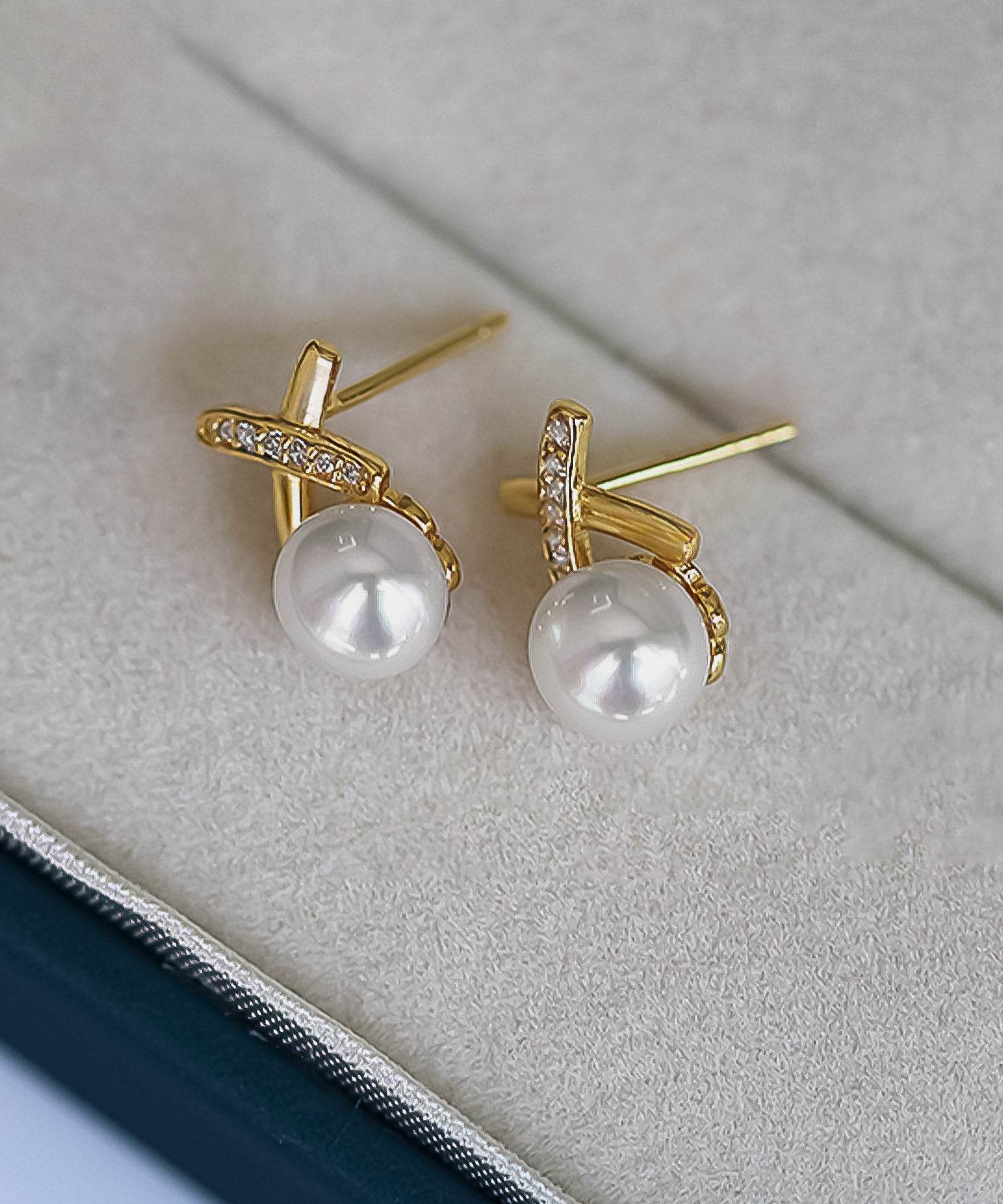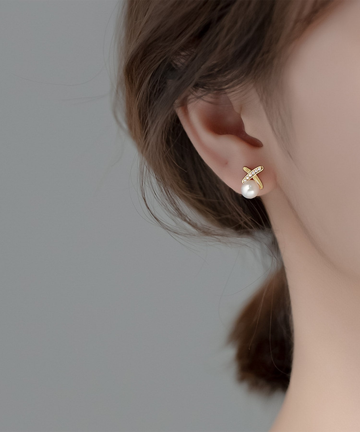 ニュアンス感のあるクロスモチーフにジルコニアラインが美しく輝くパールピアス/イヤリング。