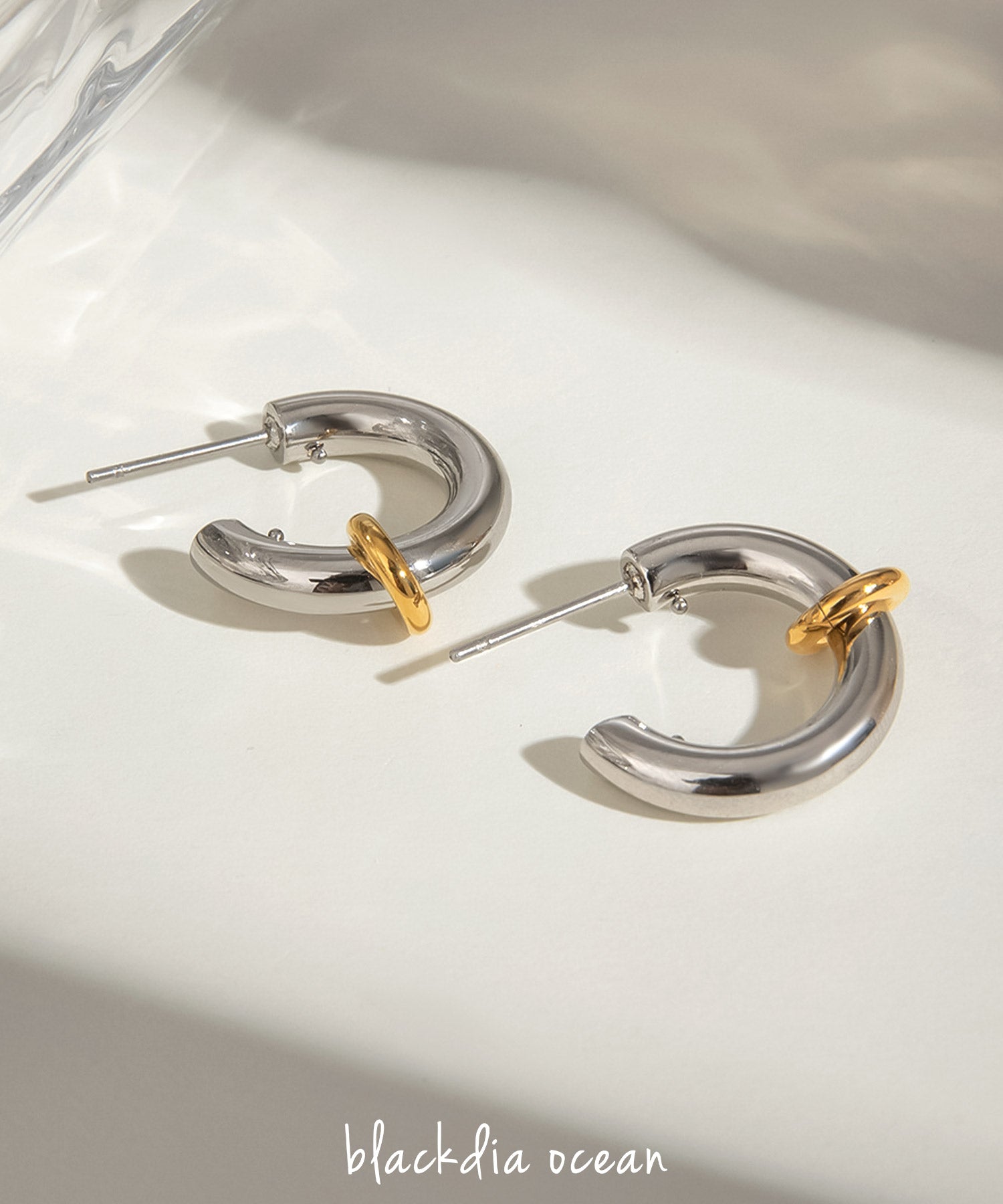【今週末限定価格】blackdia ocean バイカラー ムーブリング ピアス