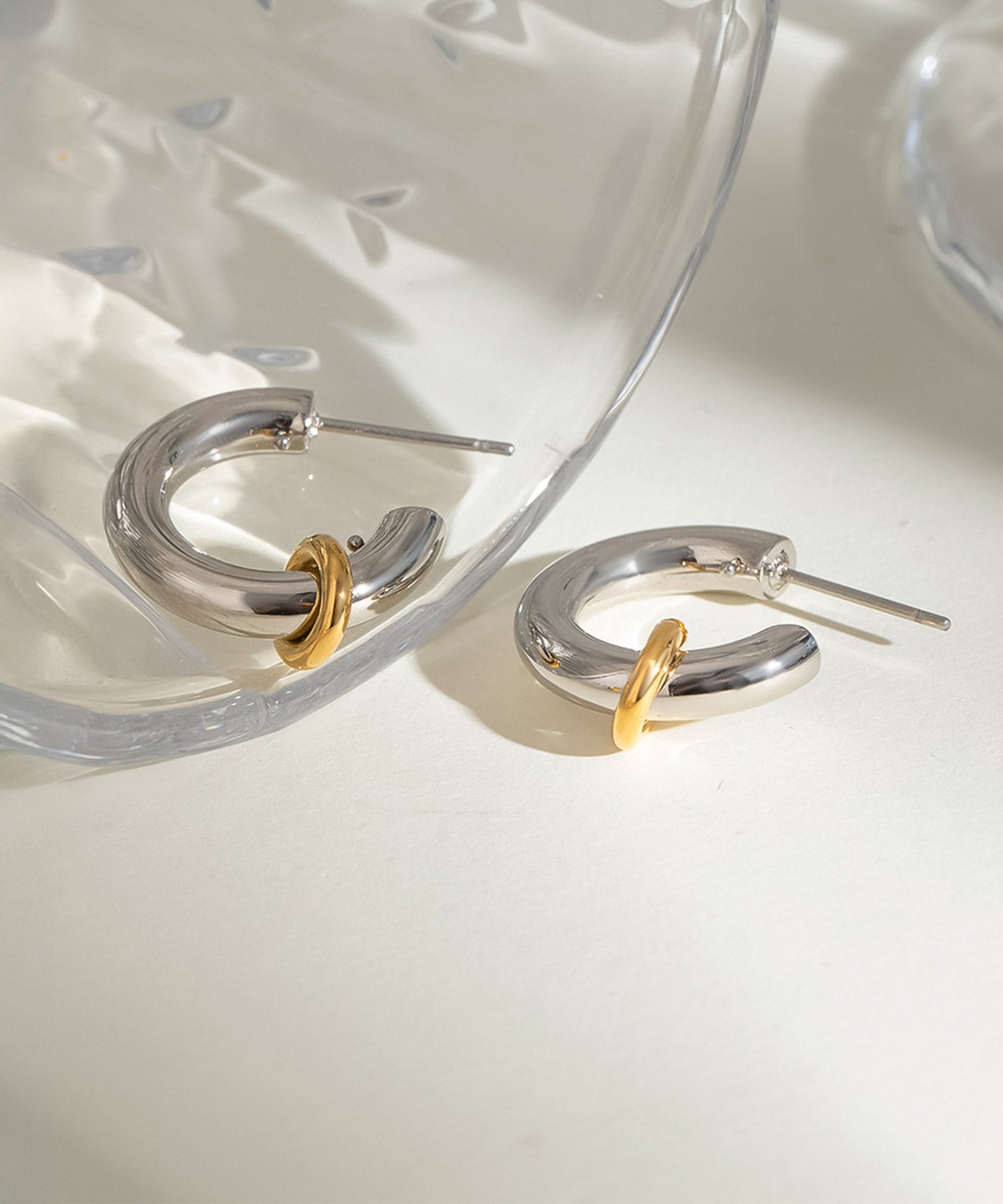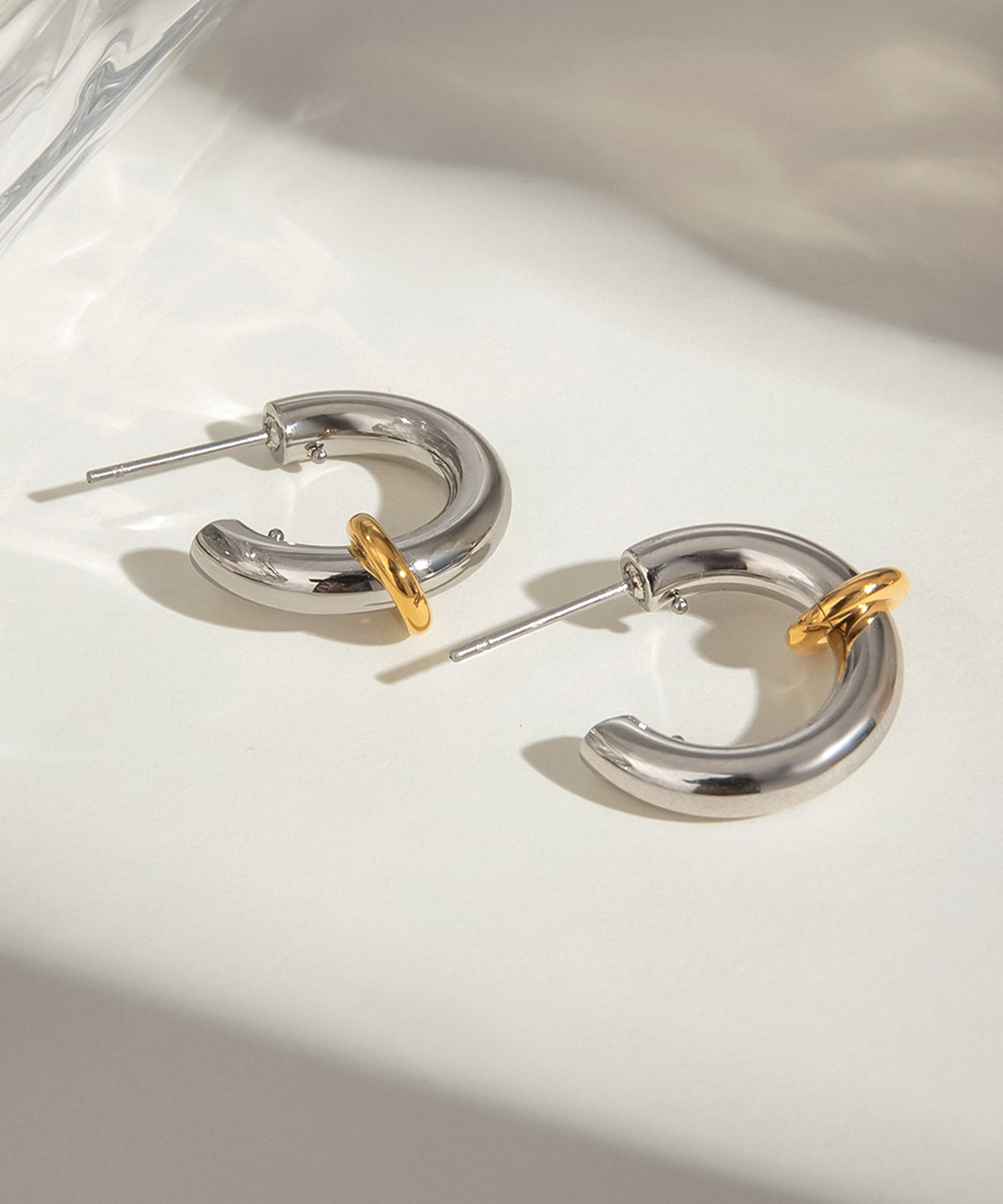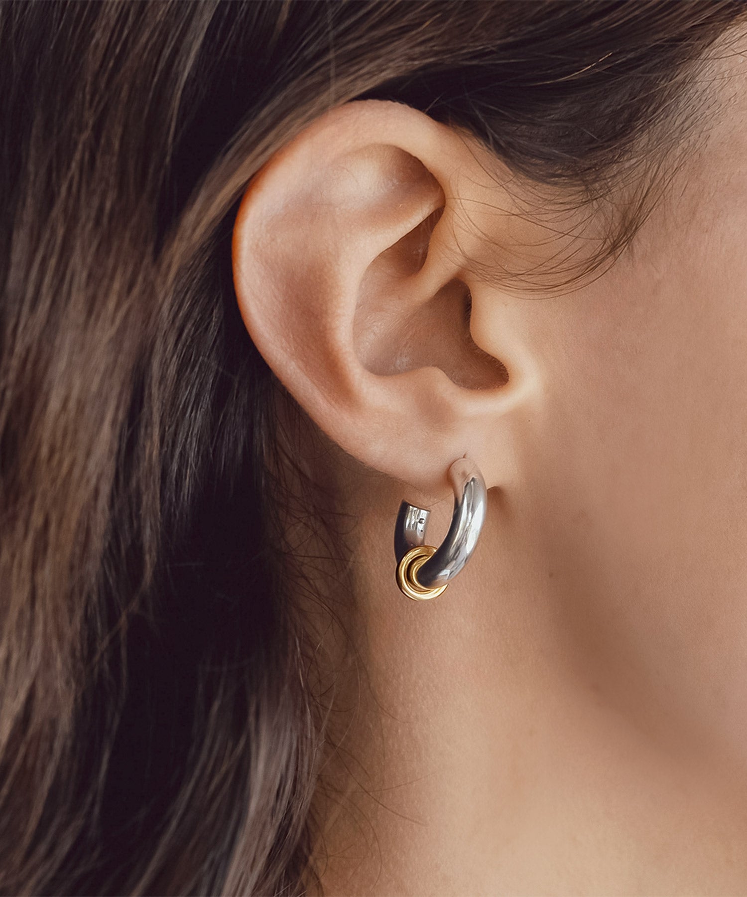 可動式のゴールドリングがアクセントのスタッドピアス。