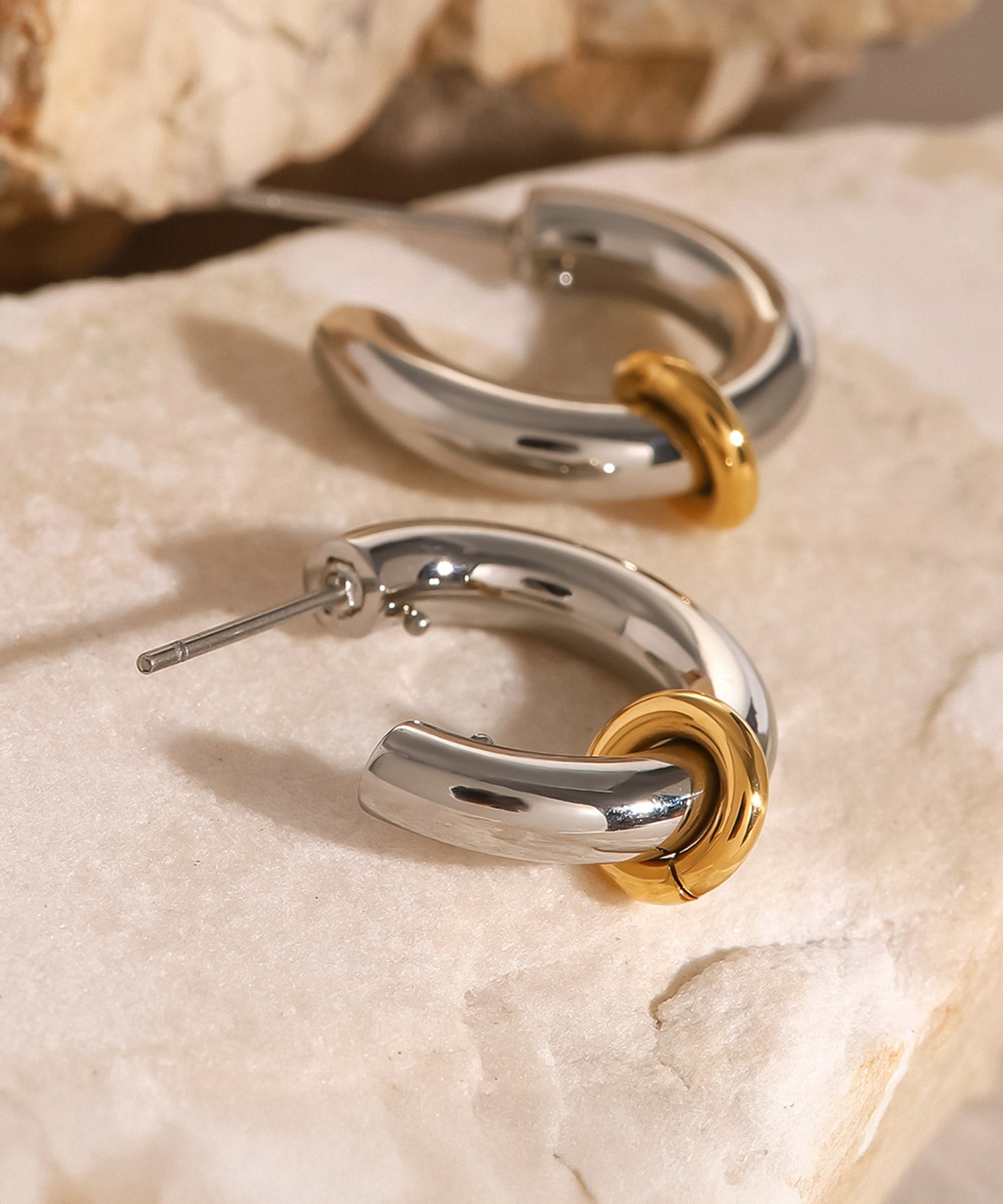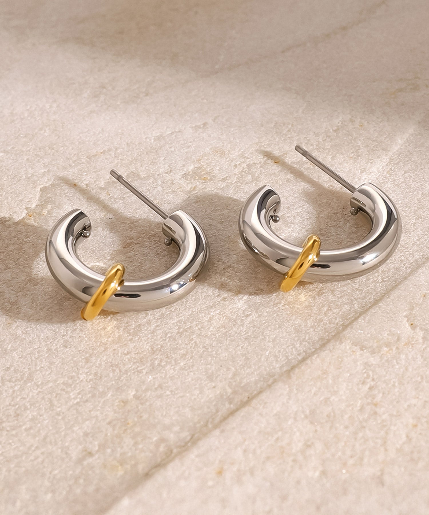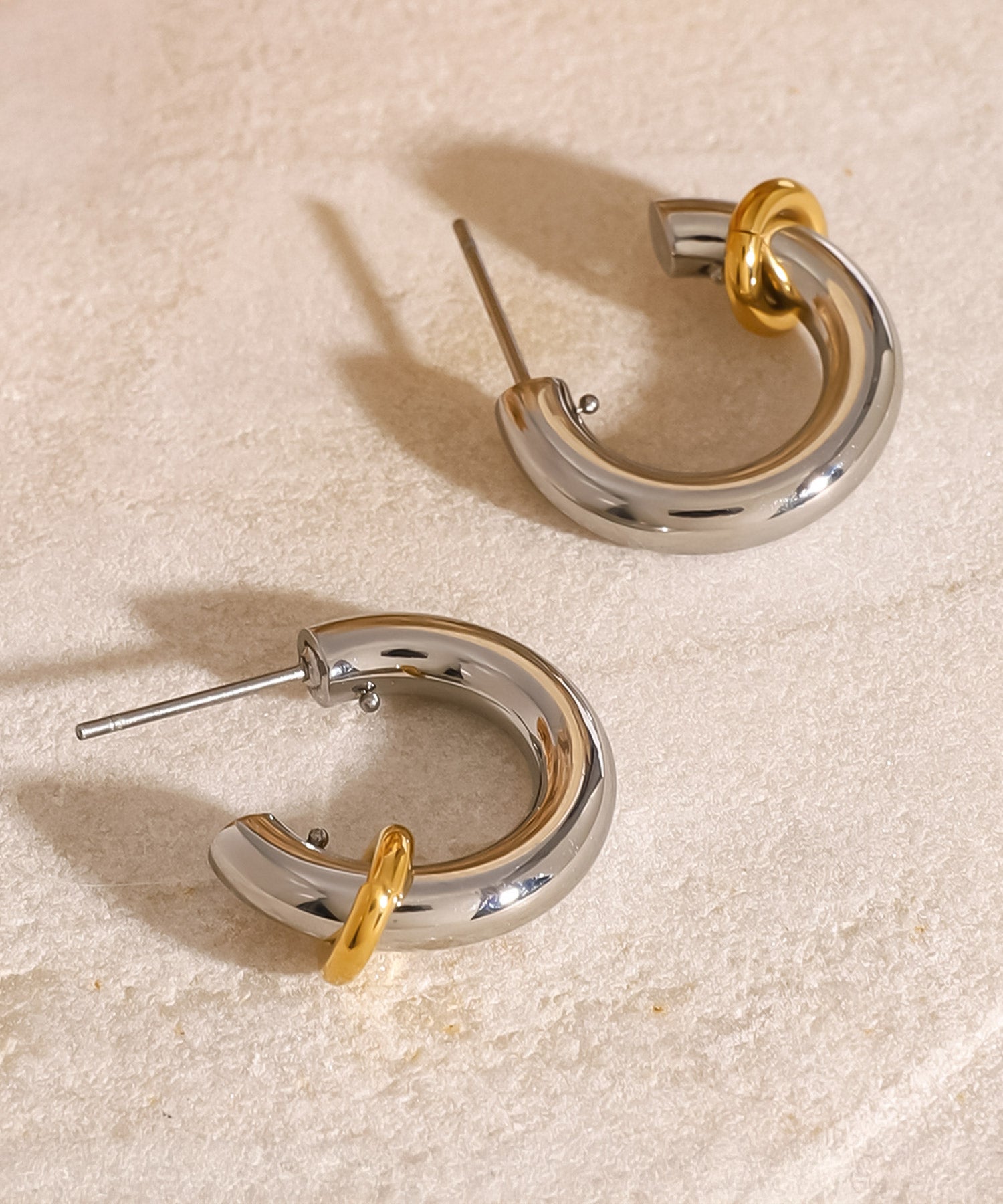 可動式のゴールドリングがアクセントのスタッドピアス。