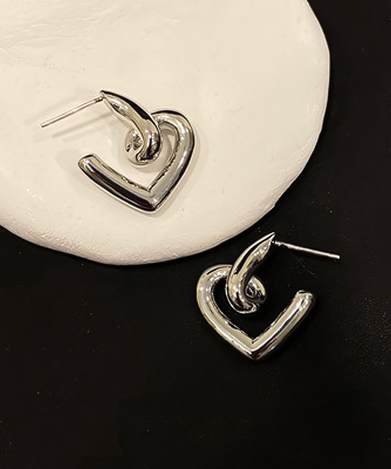 ツイストが加えられた立体的なハートモチーフのピアスです。