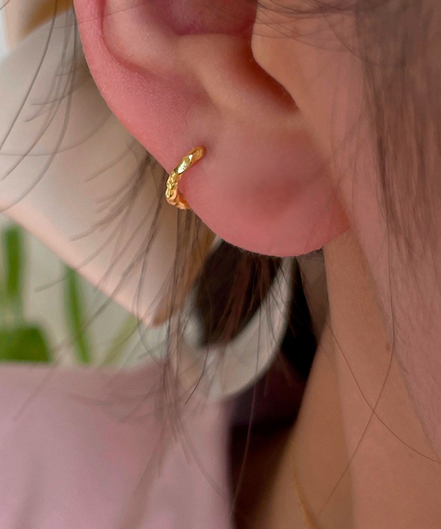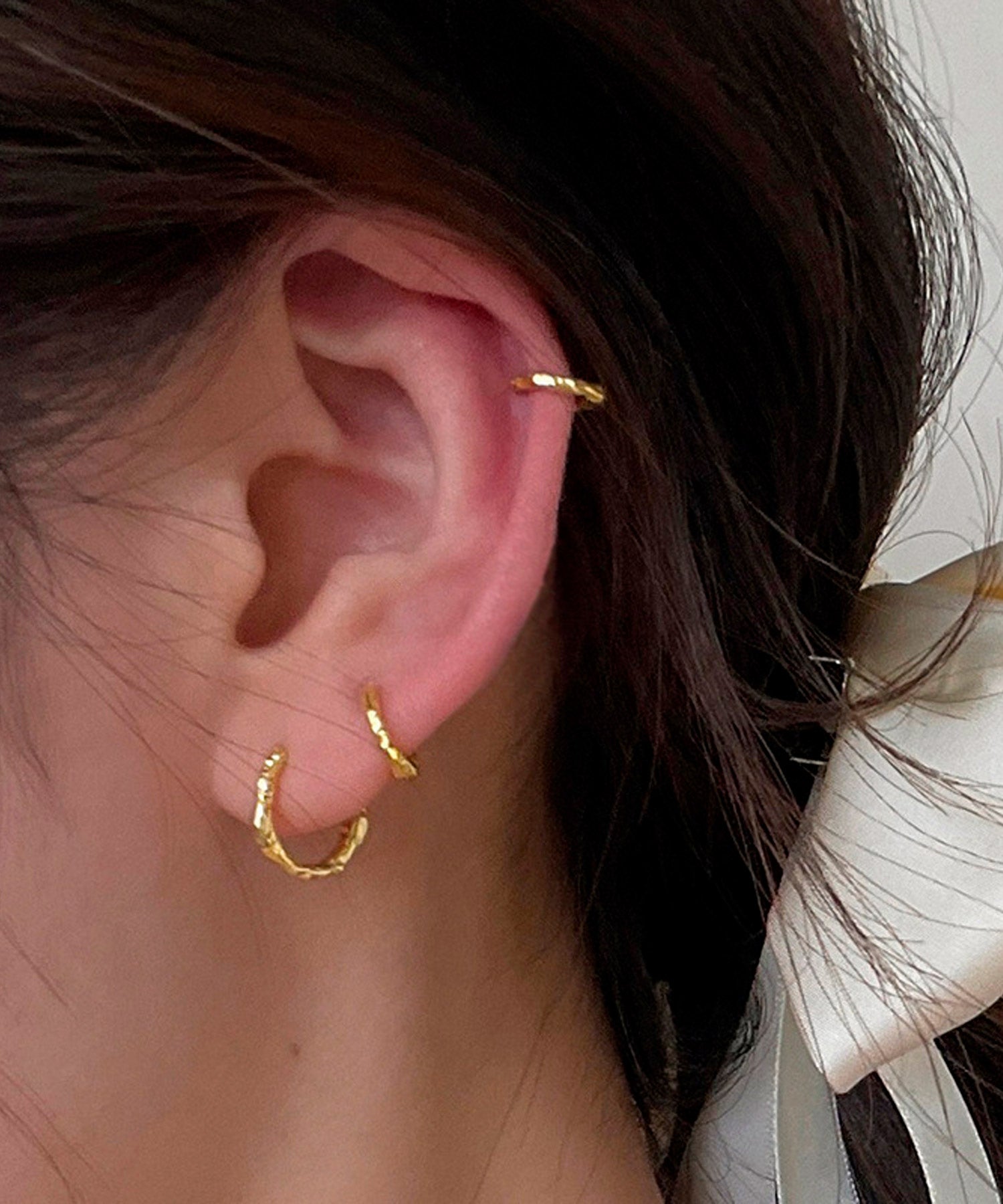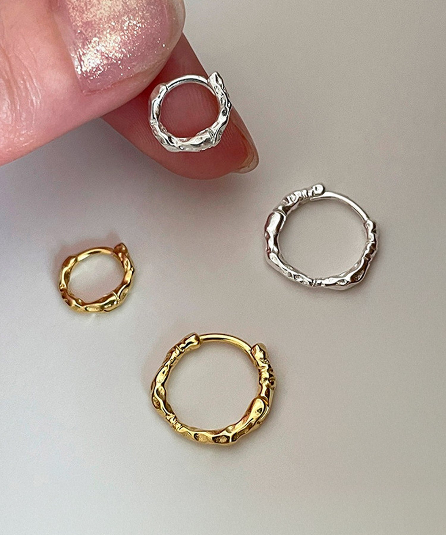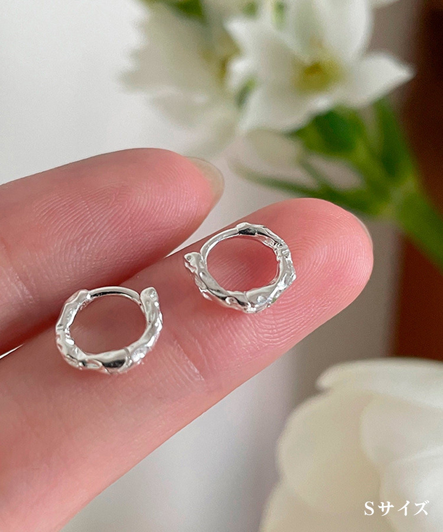 いびつなデコボコデザインが魅力のフープピアス。