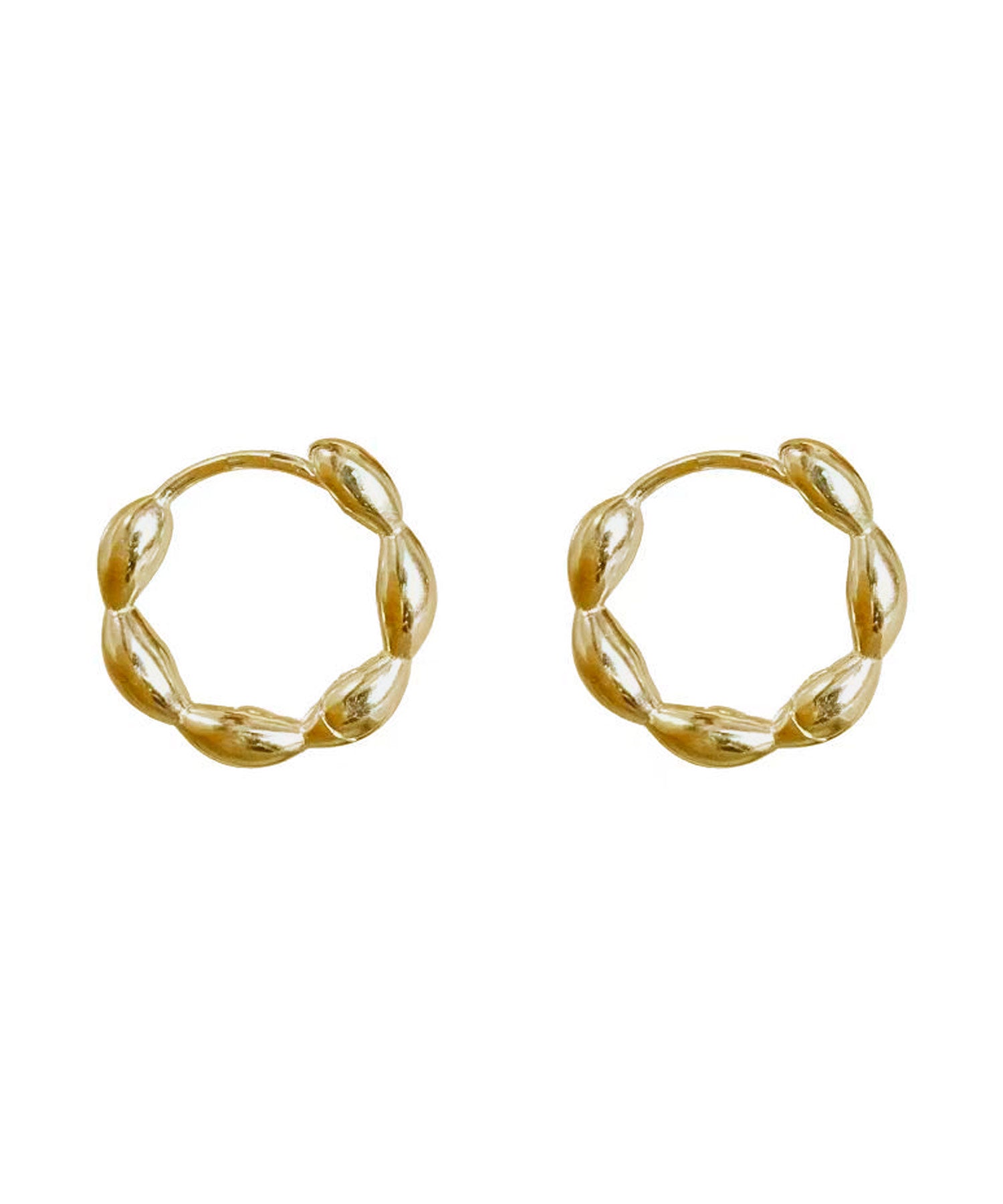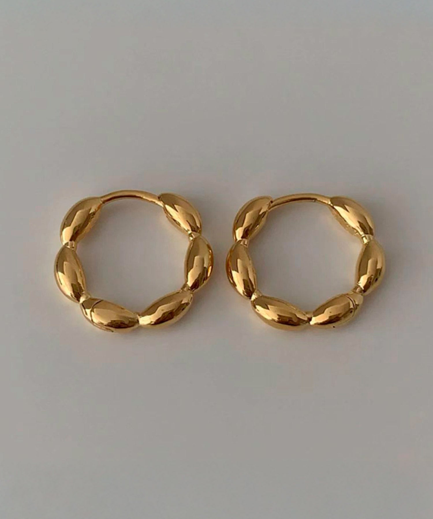 ぷっくりとしたデザインが大人可愛い印象のフープピアスです。