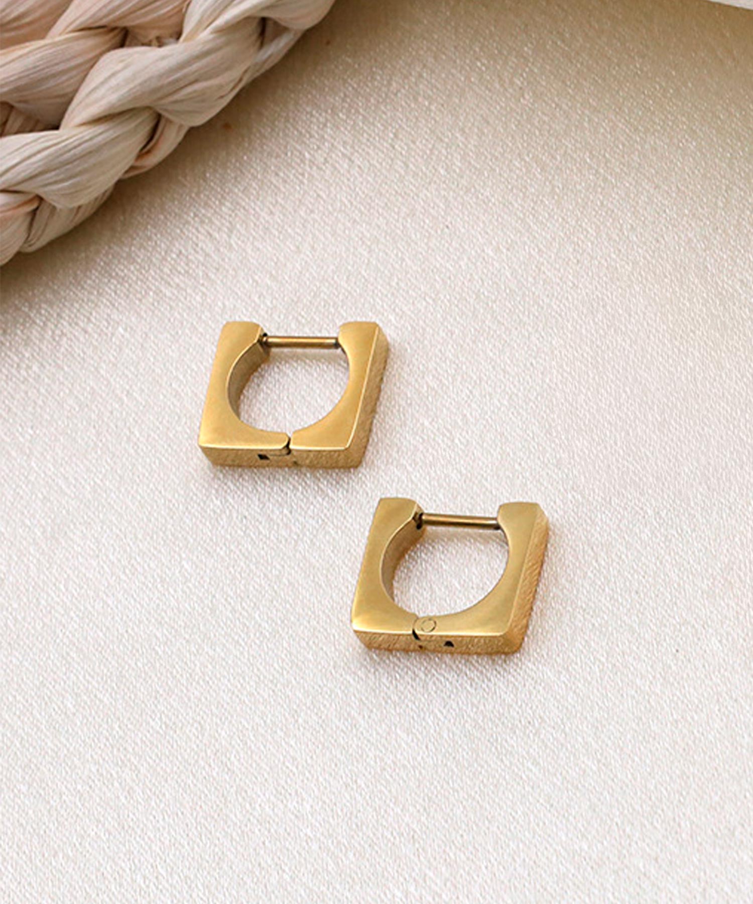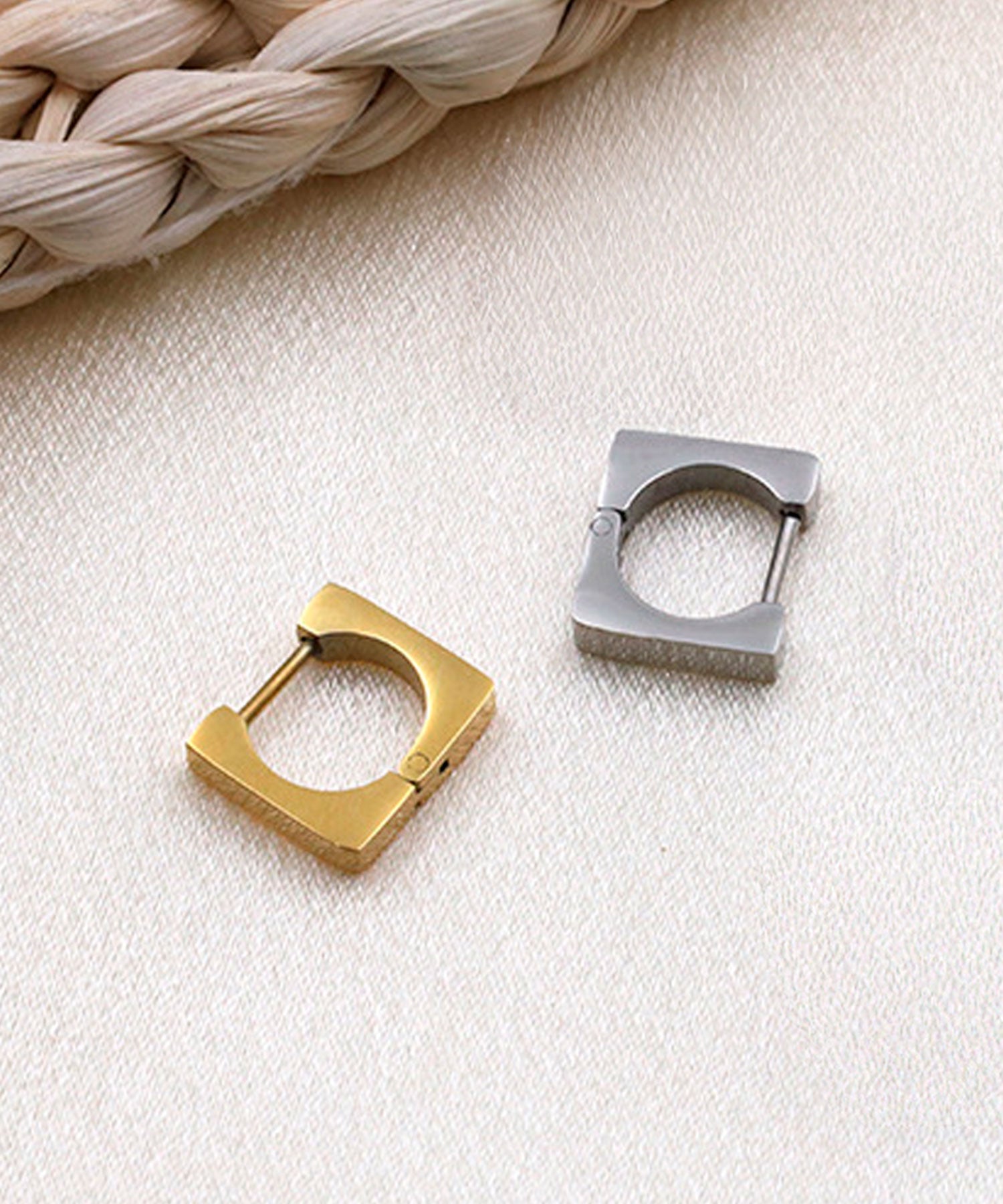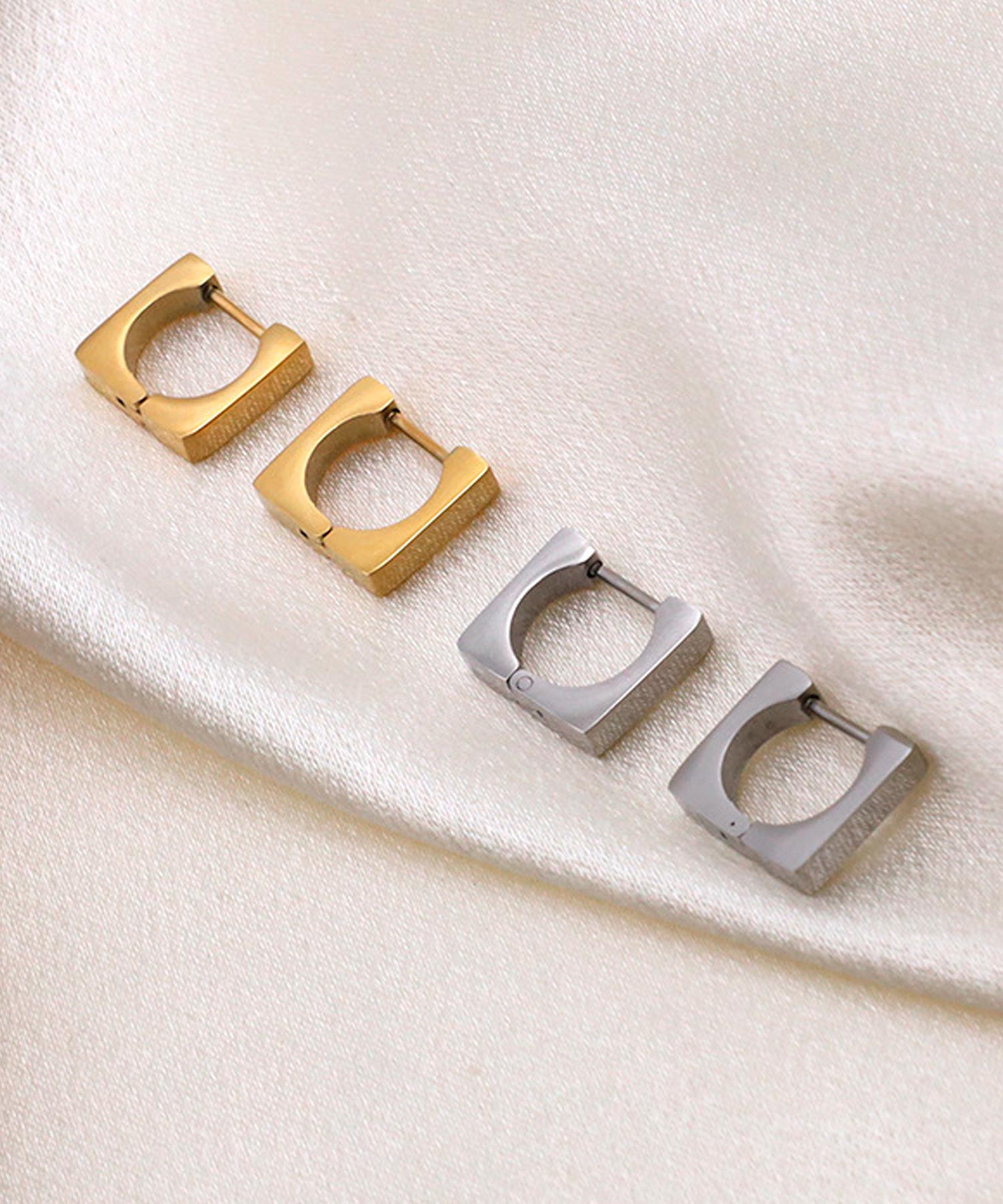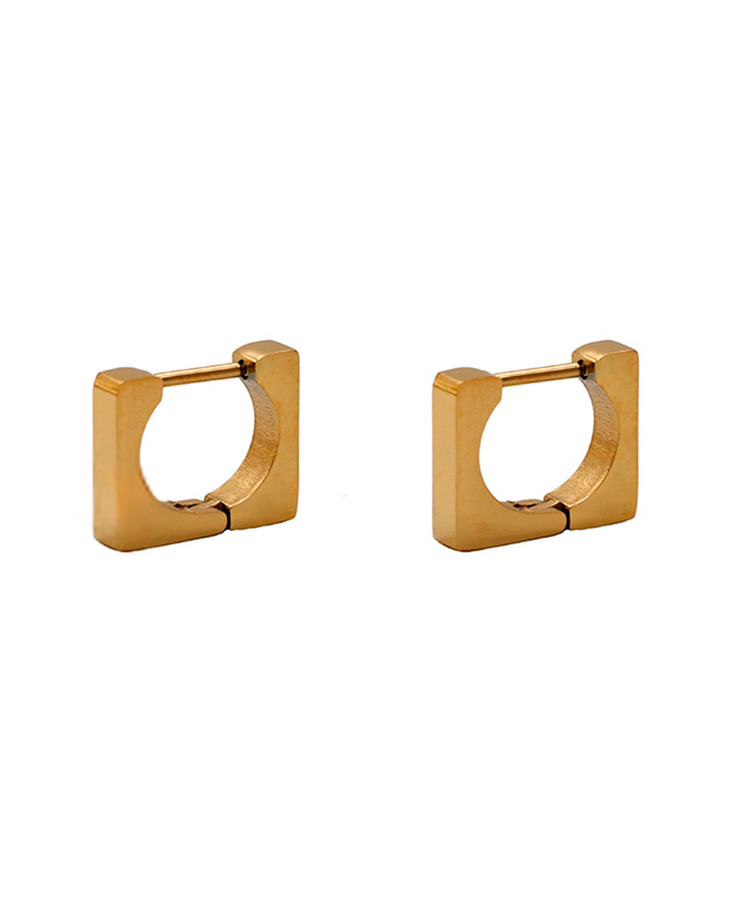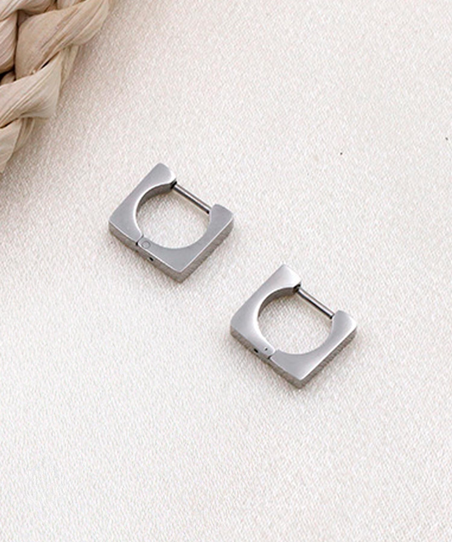 シンプルながらも存在感を放つ、洗練されたスクエアデザインのフープピアスです。