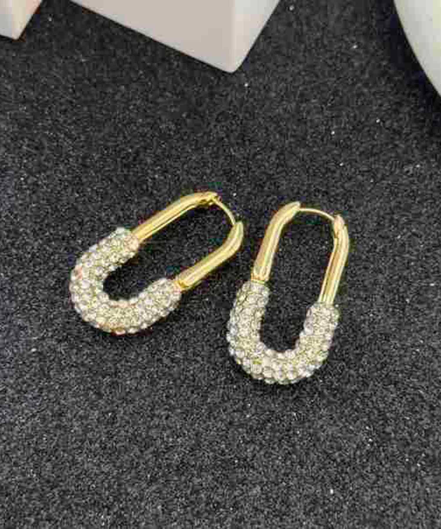 パヴェセッティングされたストーンがキラキラと輝き、耳元に華やかさをプラスします。