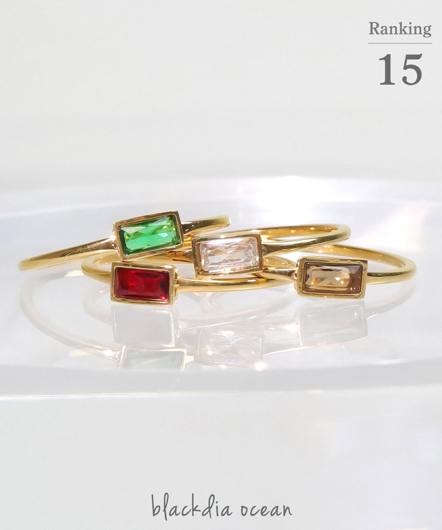 雫の様に澄んだ美しさが煌めくストーンリング。華奢なナローリングが石の魅力を引き立て、上品な雰囲気をプラスします。