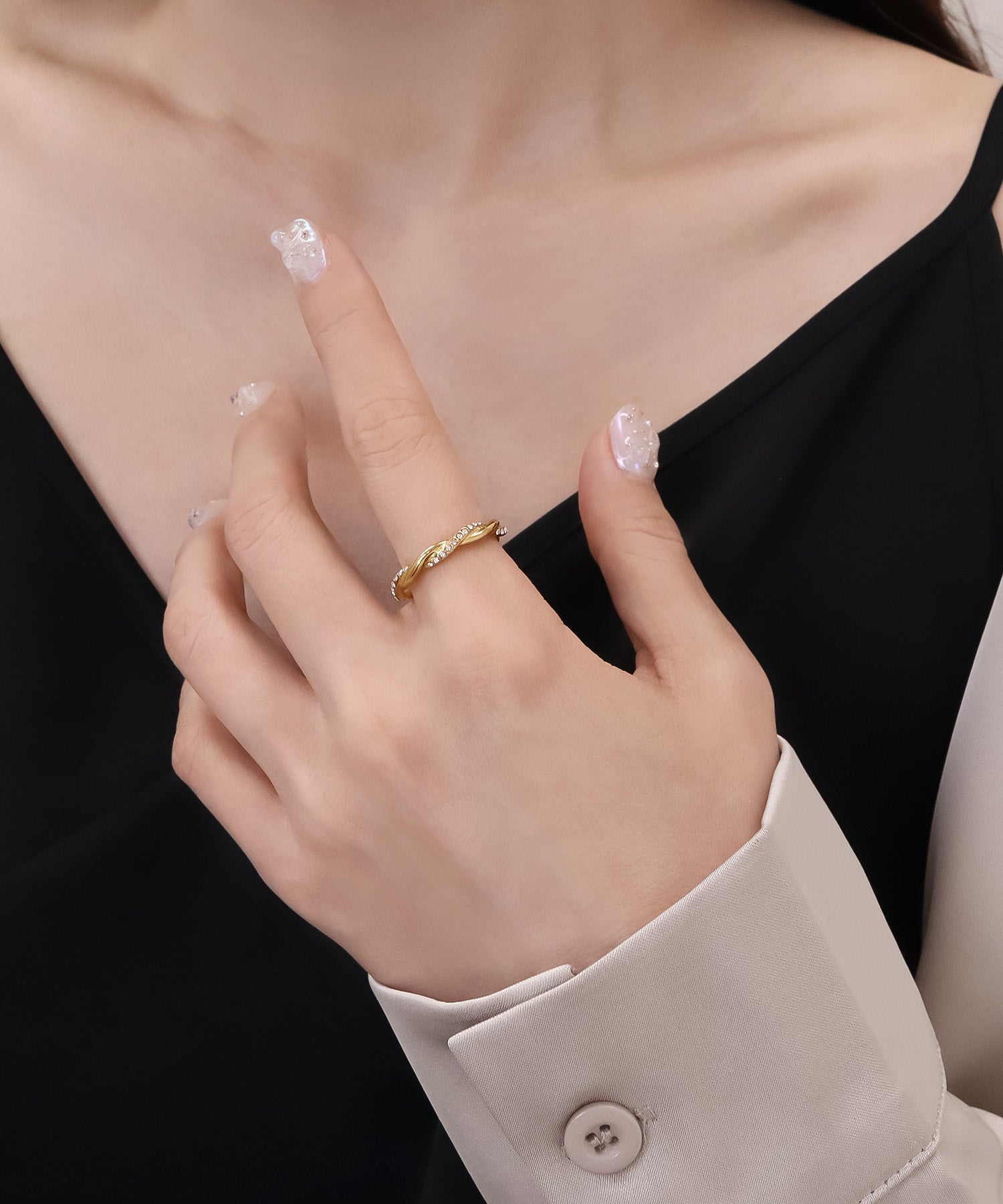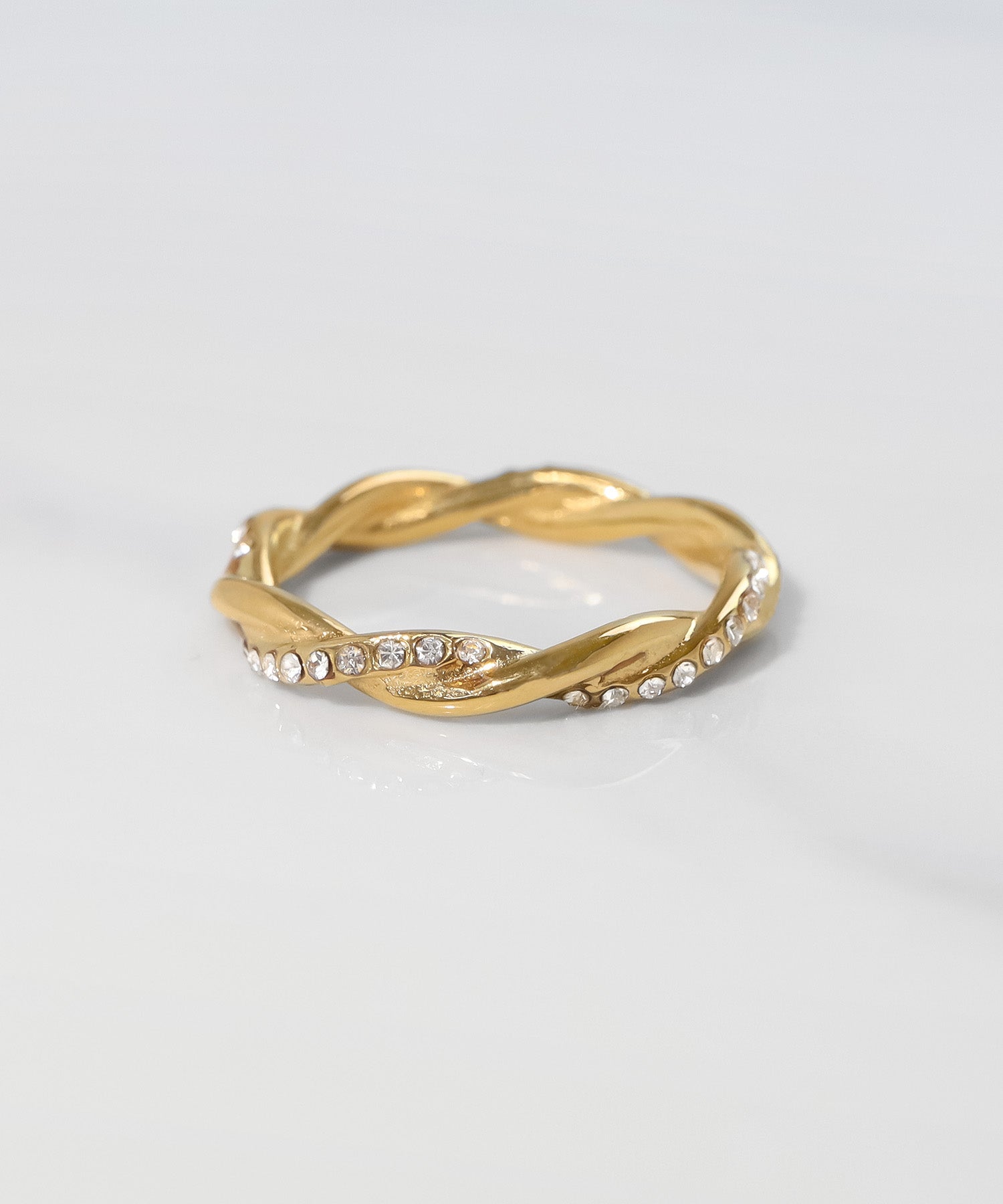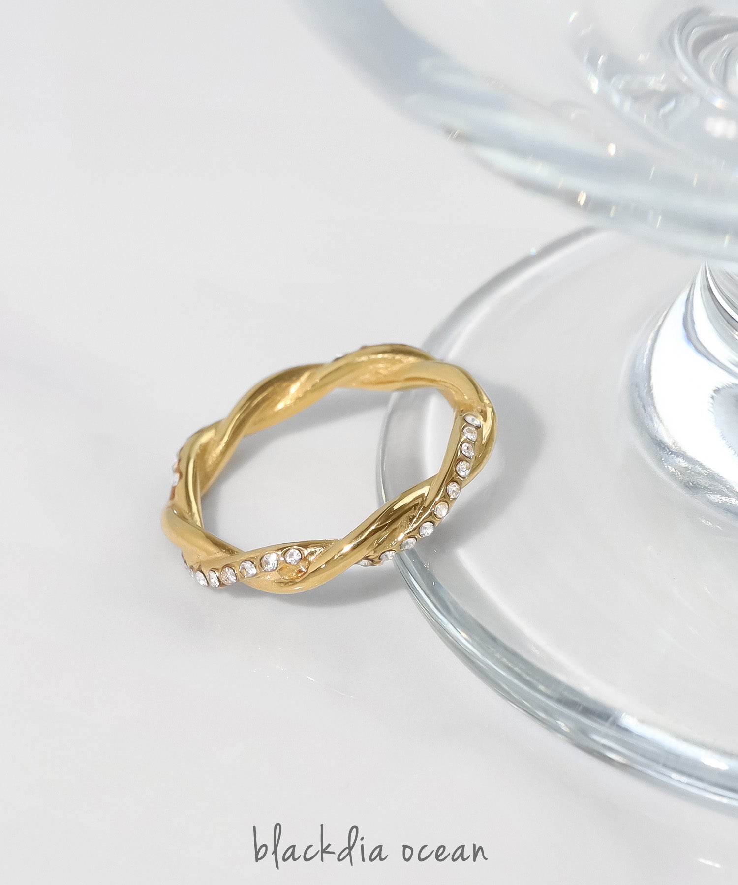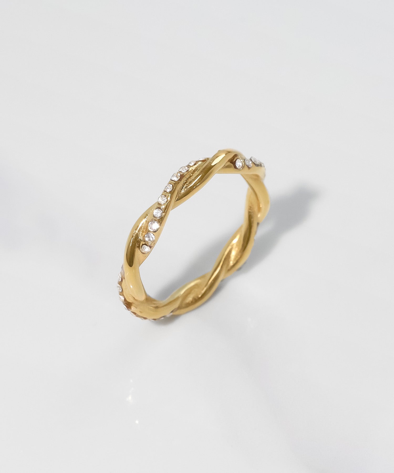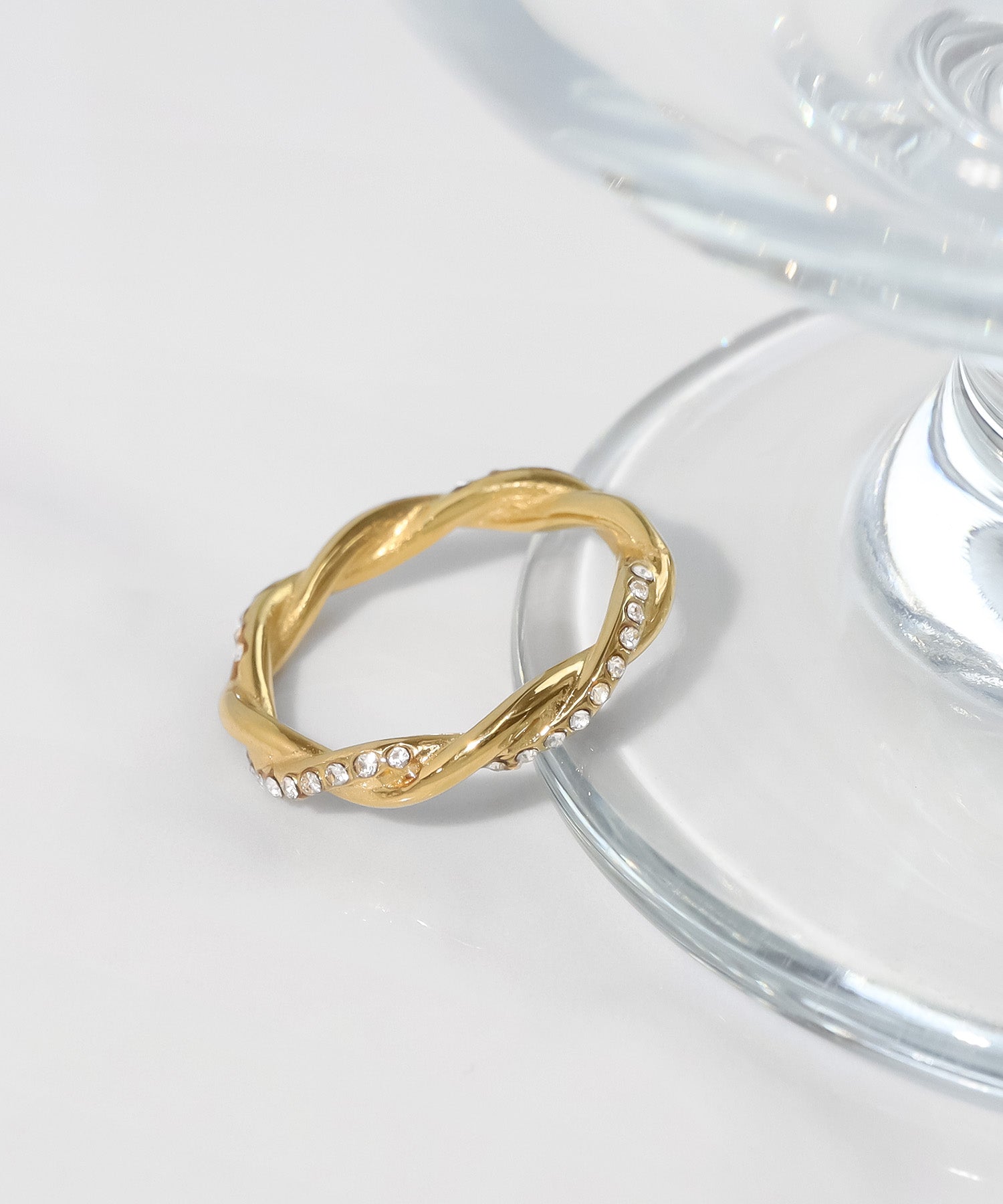 ツイストデザインにジルコニアをあしらったデザインリング。