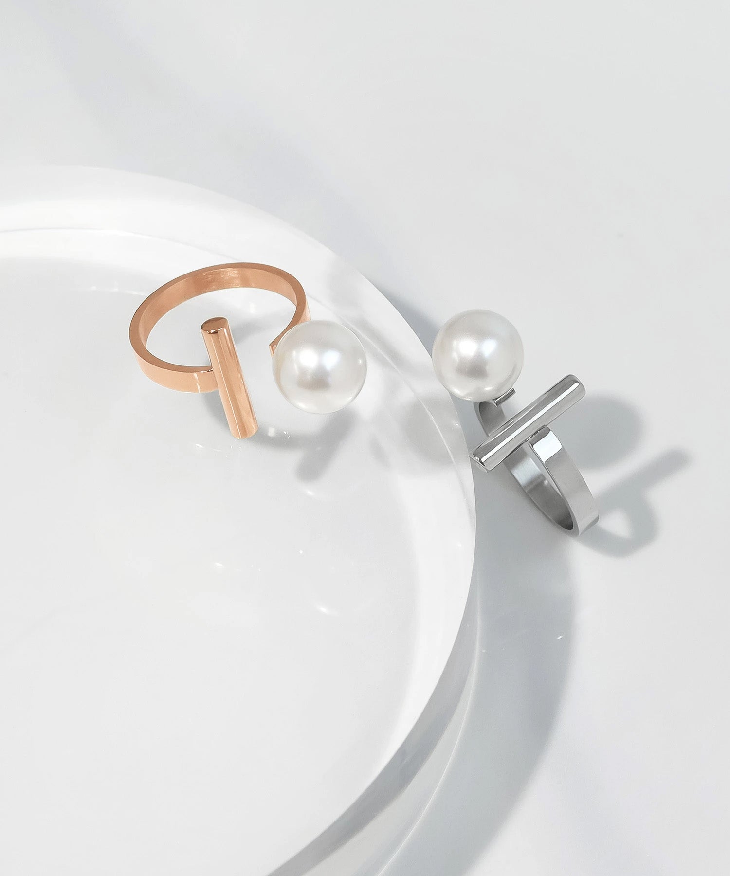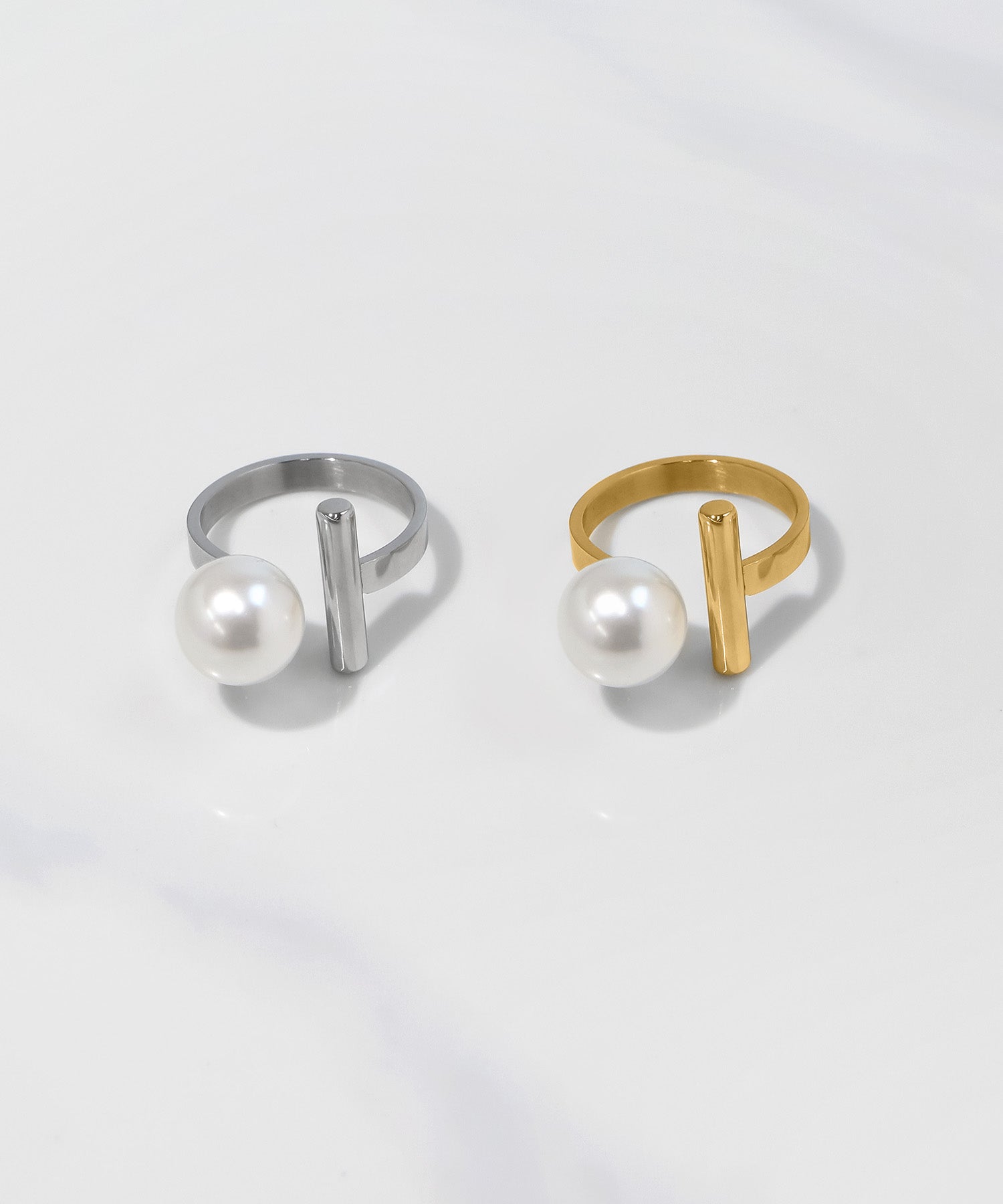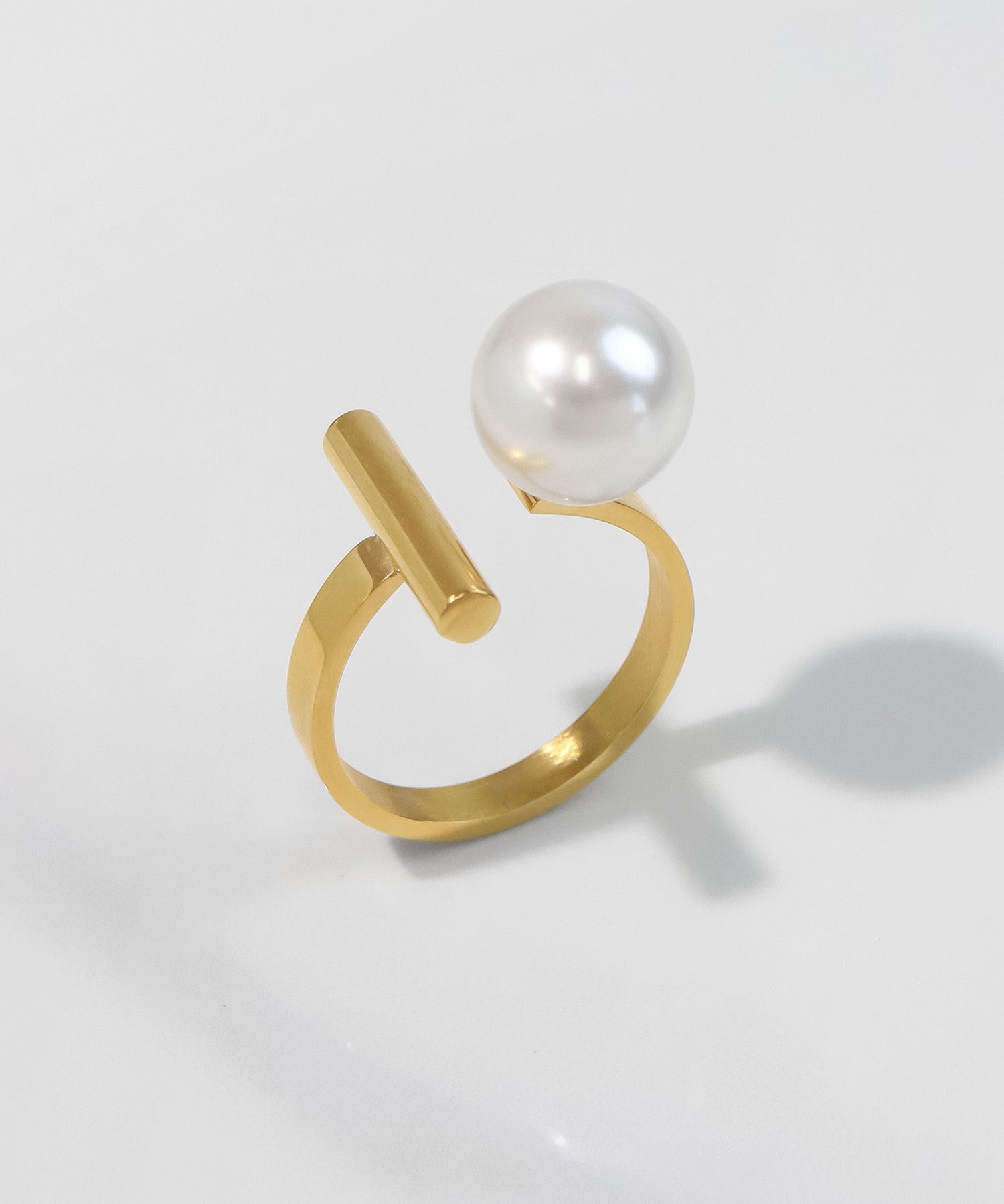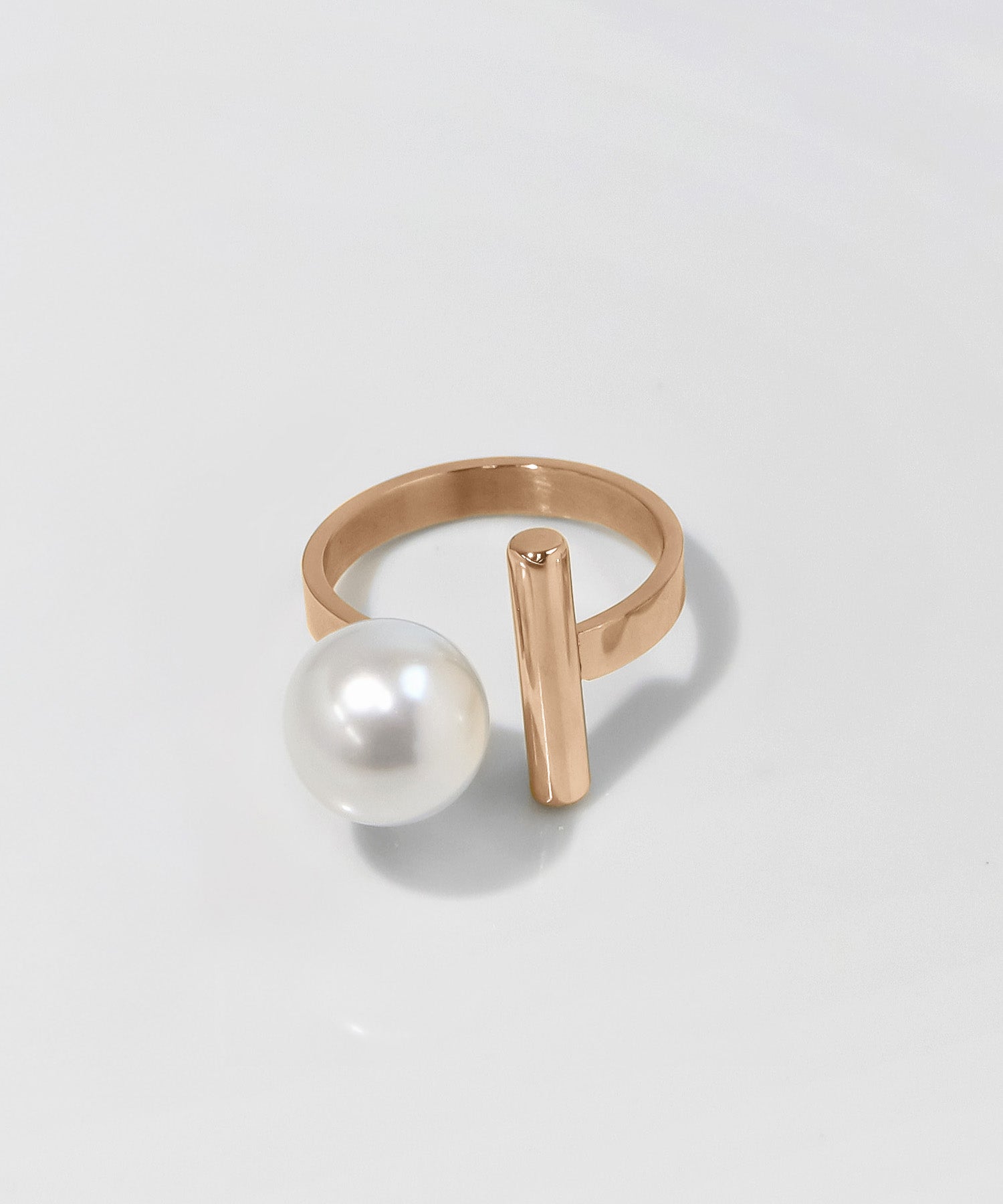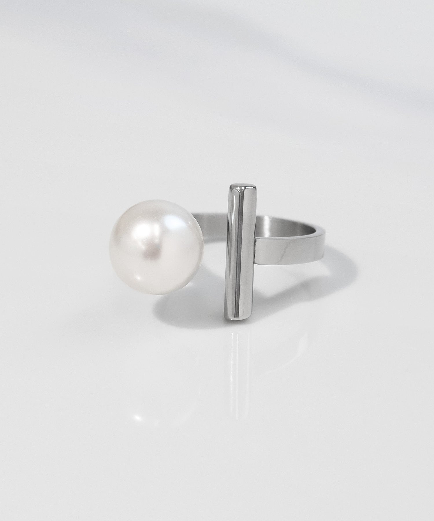 一粒のパールにシンプルなメタルバーを組み合わせたフリーサイズリング。