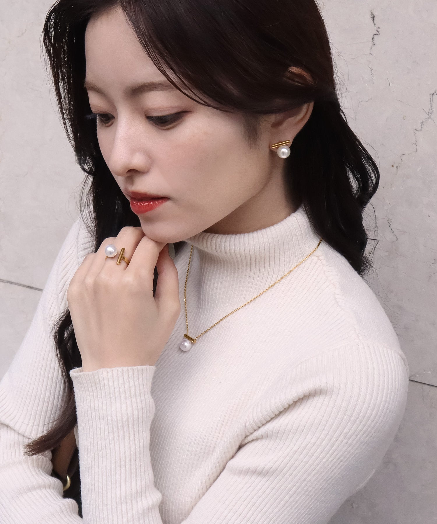 同デザインのピアス/イヤリング、ネックレスとコーディネートでつけるのもオススメ。