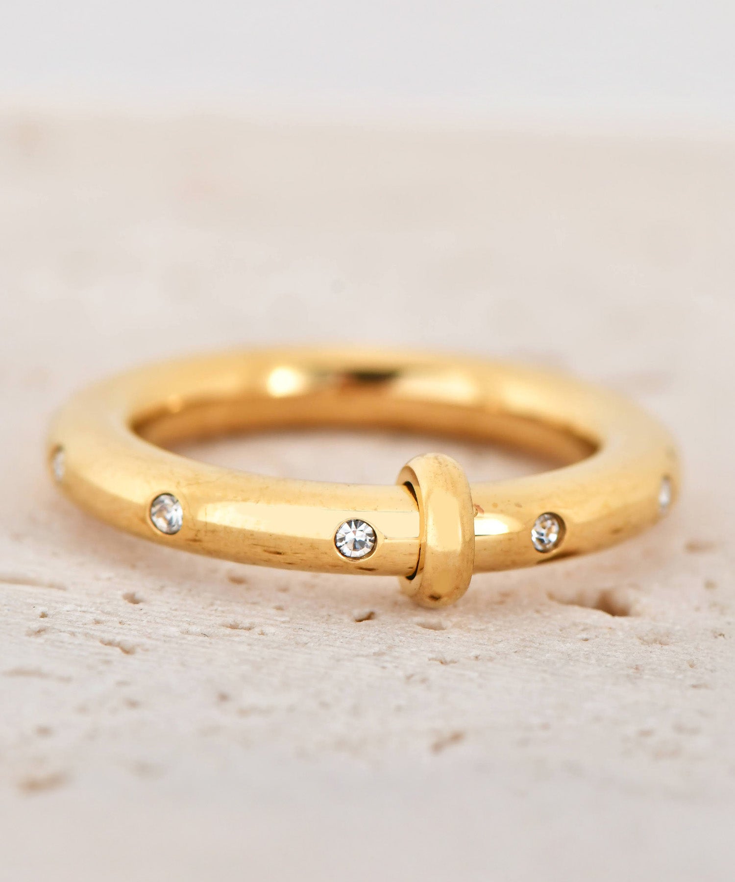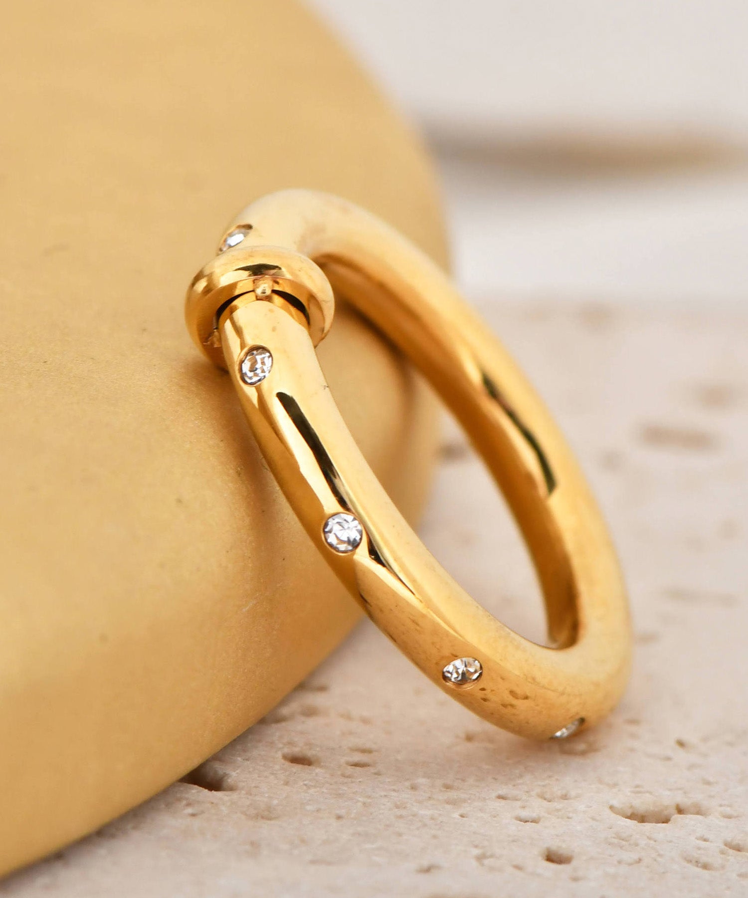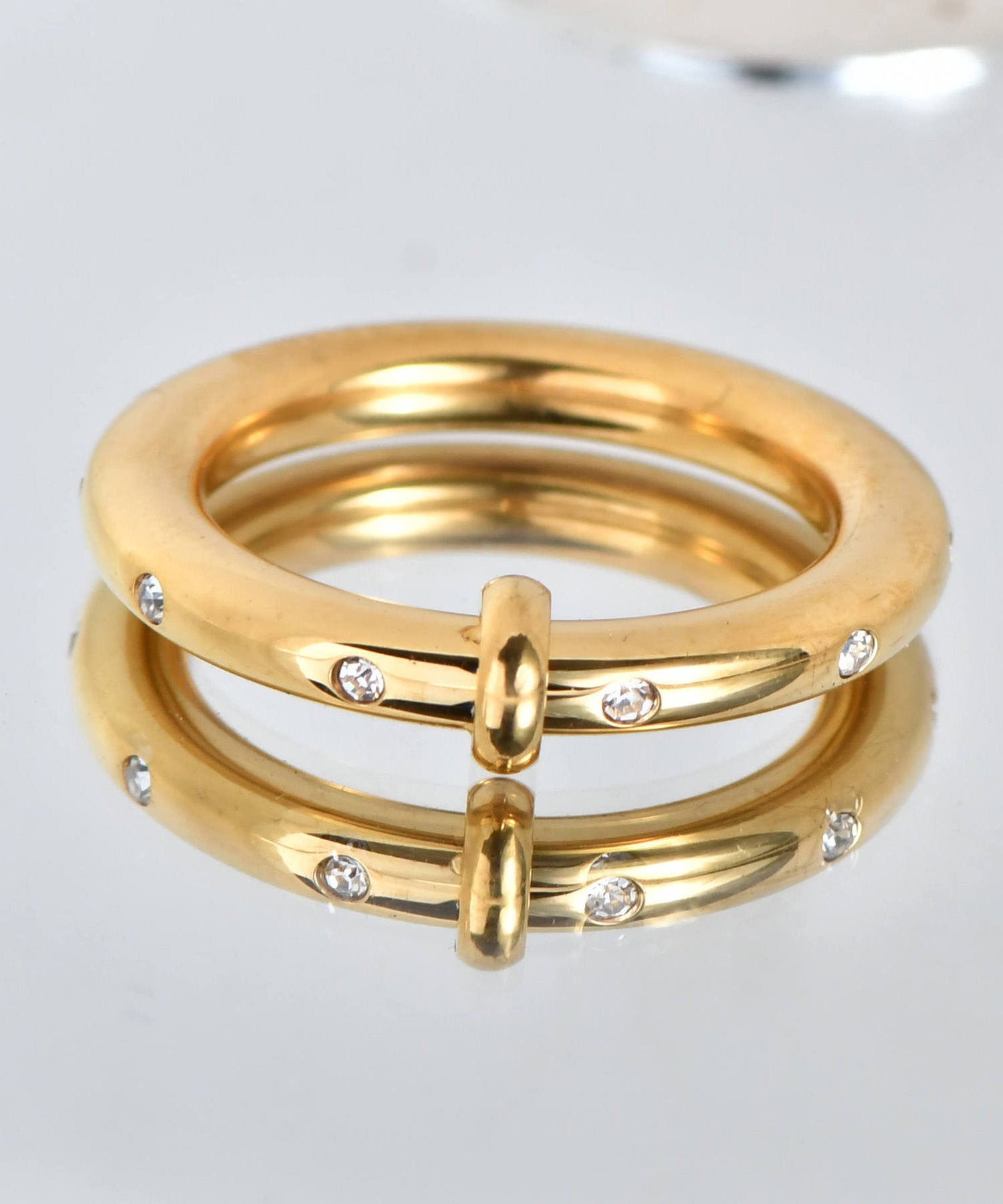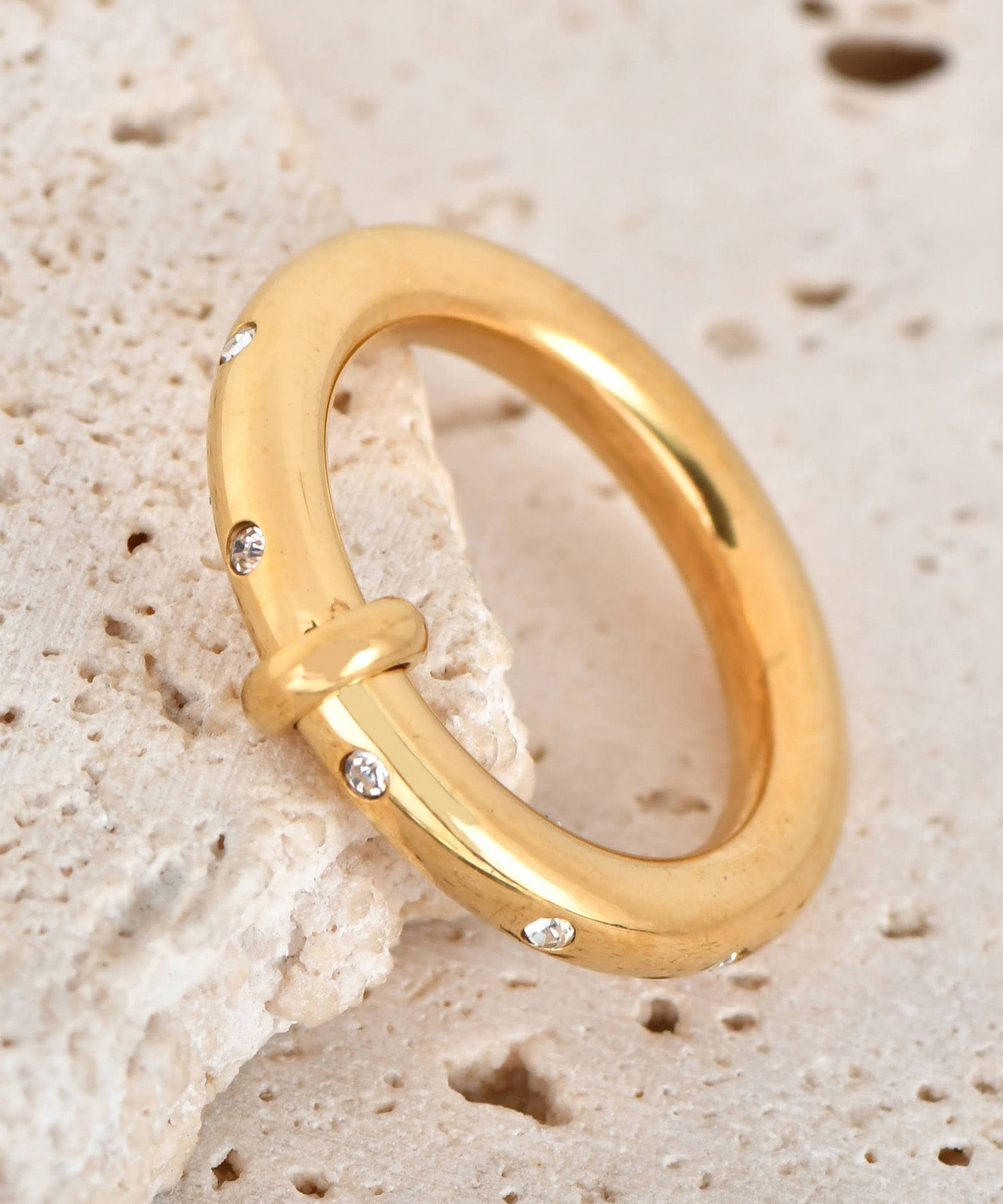 厚みのあるバンドに中央の結びが特徴的なアクセントになっているサークルリング。