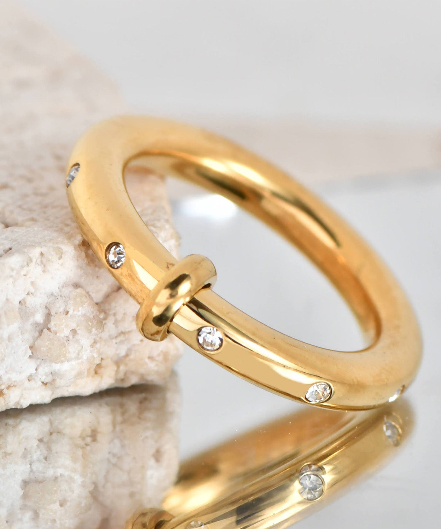 控えめに散りばめられた輝くストーンが、洗練された華やかさを演出します。