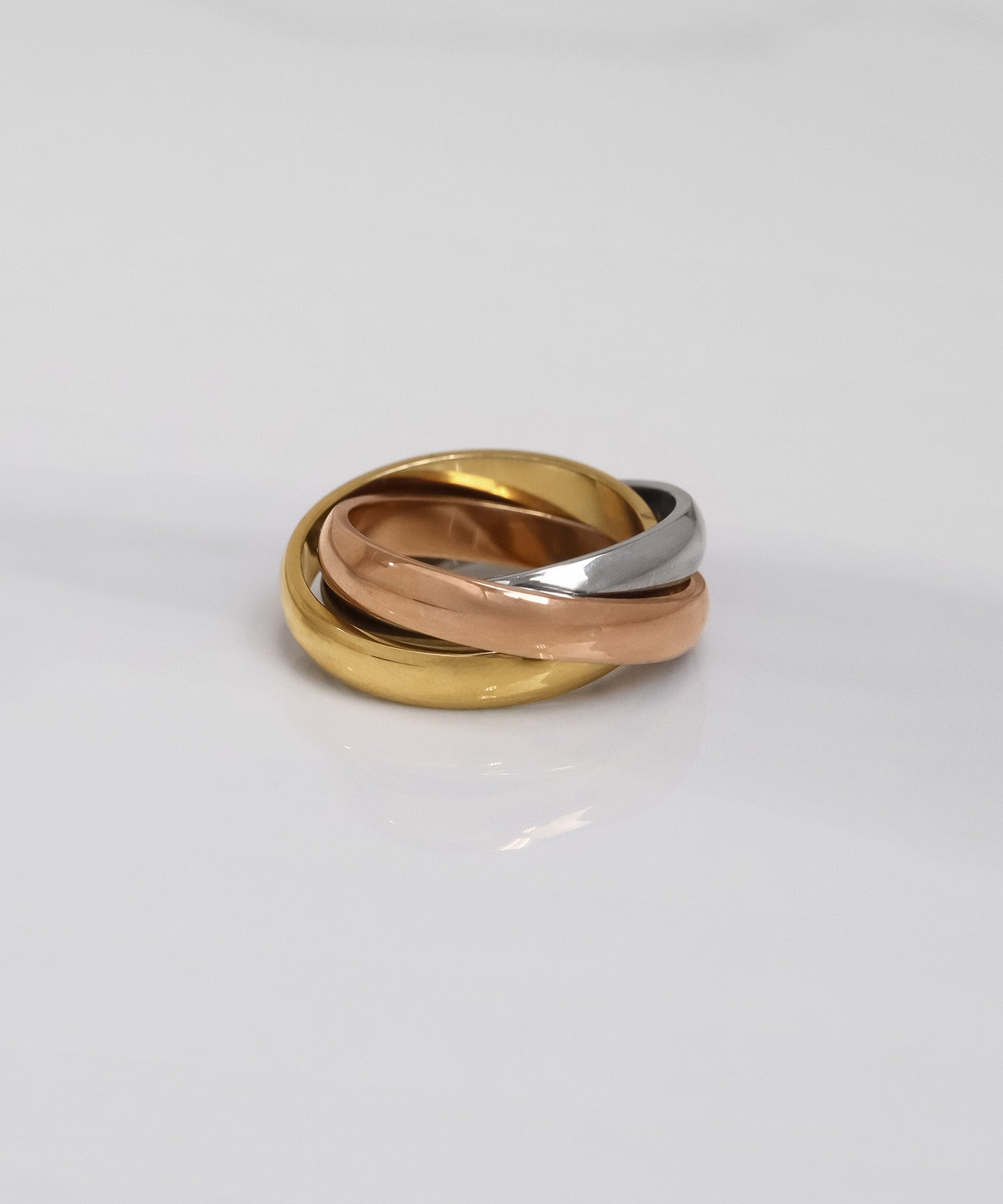 3本のリングが絡み合うようにデザインされたタイムレスでスタイリッシュなデザインです。