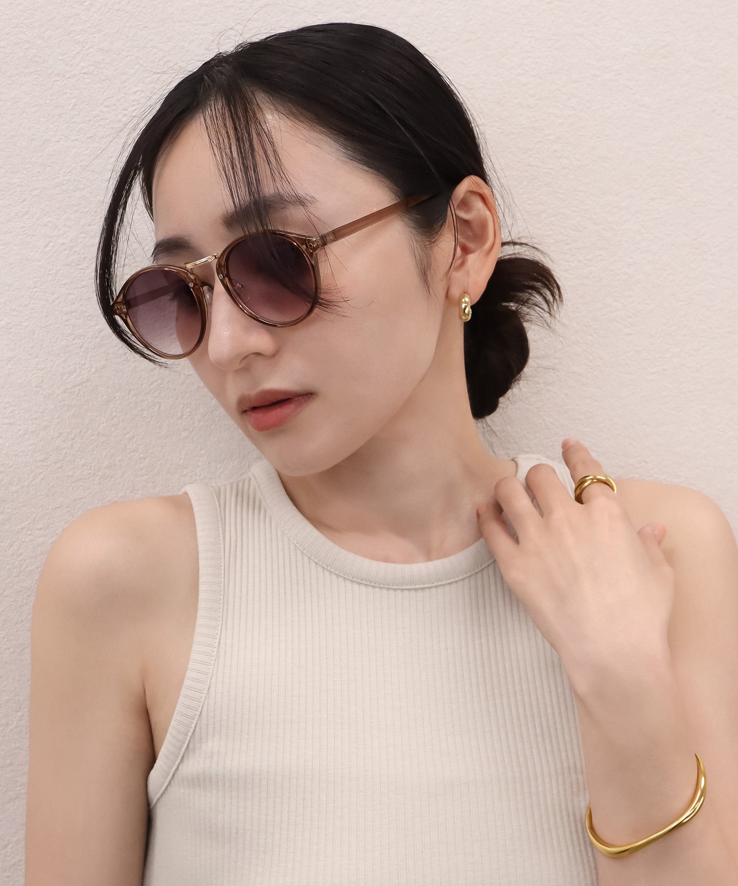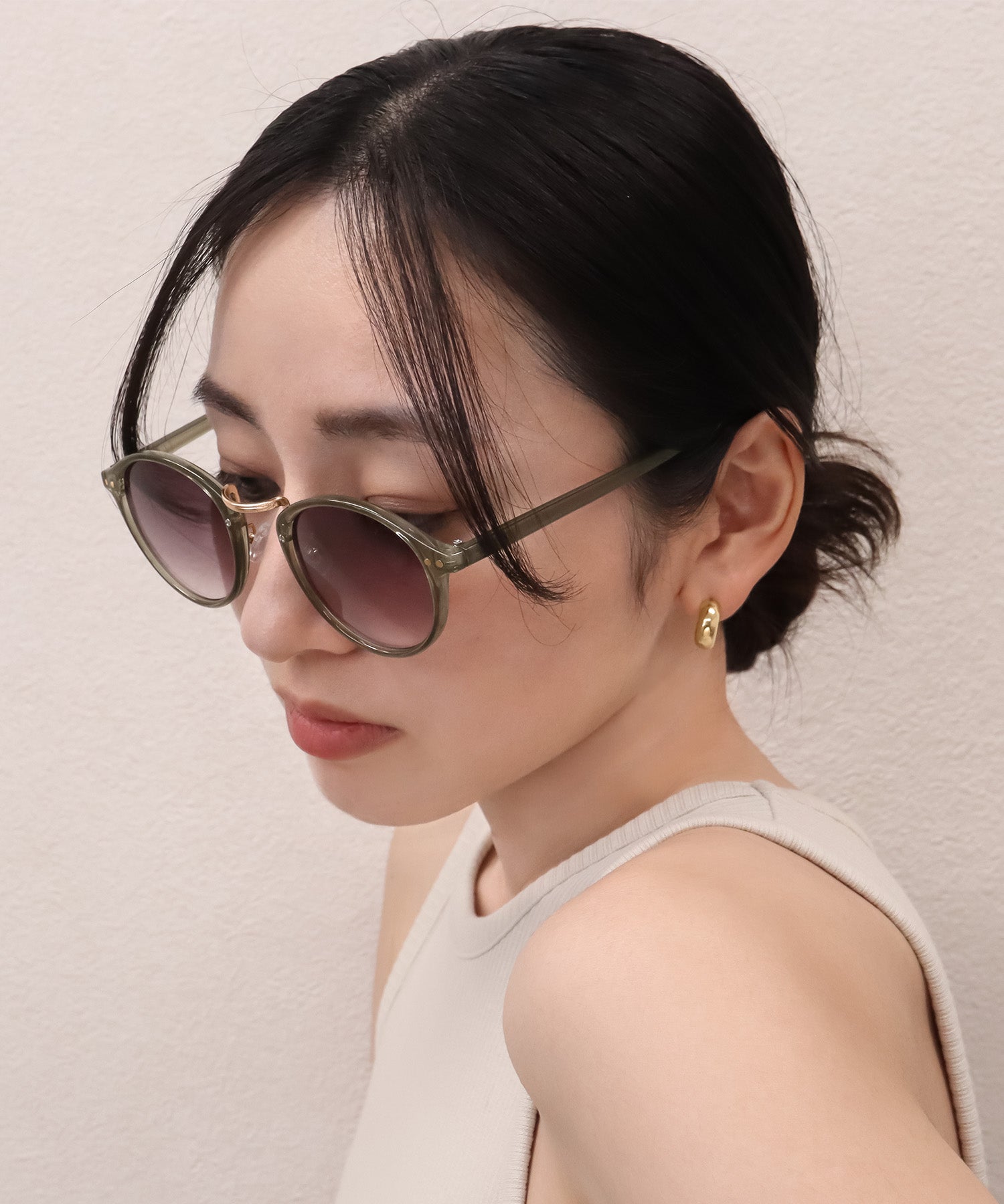 程よく丸みのあるフォルムは、掛ける人を選ばず、いつものコーディネートにプラスするだけでハイセンスな印象を与えます。